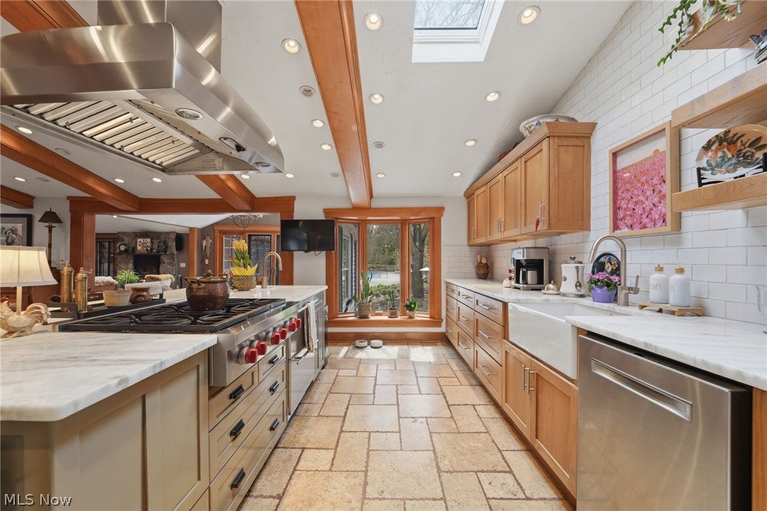 An extraordinary, one-of-a-kind estate where timeless character meets elevated luxury living. The beautifully remodeled century home, thoughtfully expanded, offers 5 bdrms and 4 full baths, blending historic charm with modern sophistication. A grand entry sets the tone, opening to a beamed dining room with a floor-to-ceiling stone fireplace.