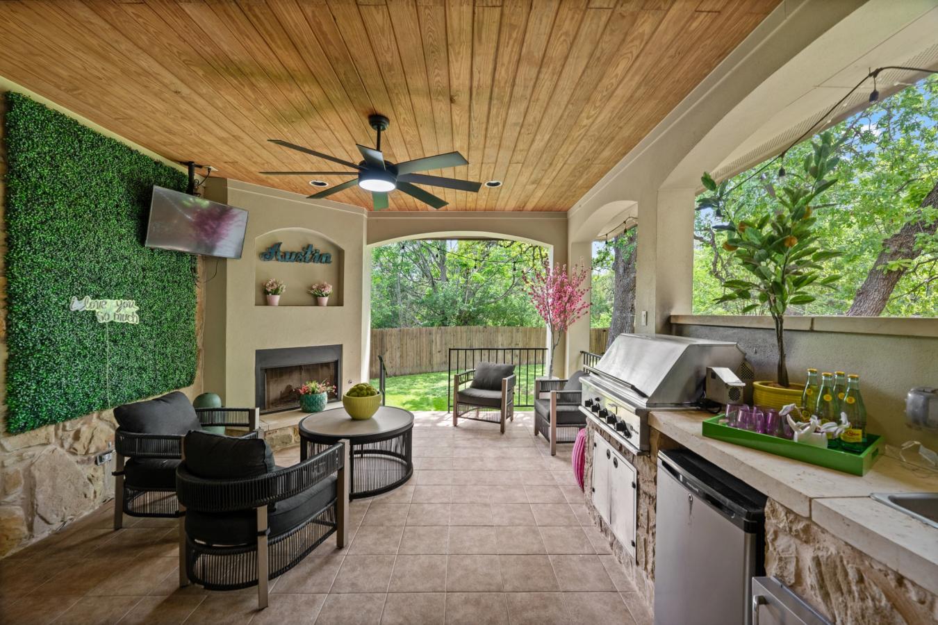 Circle C Home on a Cul-de-Sac! Located on a quiet cul-de-sac in one of Circle Cs most desirable sections, this beautifully updated home offers the perfect mix of comfort, style, and everyday functionality. With 4 bedrooms plus a dedicated office/gym that can easily convert into a 5th bedroom, the layout is ideal for flexible living. The bright, open floor plan features hardwood floors, crown molding, and spacious living areas that feel both inviting and practical. The renovated kitchen (2017) is a true highlight, featuring quartz countertops, stainless steel appliances, plenty of storage, and a custom wine bar-perfect for entertaining or unwinding at the end of the day. The primary suite is filled with natural light and offers a well-appointed bath with dual vanities, a soaking tub, a walk-in shower, and a generous walk-in closet. An oversized 2.5-car garage with overhead storage adds exceptional functionality and everyday convenience to this home. Step outside to a private backyard designed for both relaxation and entertaining, complete with a covered patio, outdoor kitchen and fireplace, and a large grassy area. Major updates include a tankless water heater, upstairs HVAC replaced in 2021, and a full interior and exterior repaint in 2021, giving buyers added peace of mind. All of this in a prime location-just 15 minutes to downtown Austin, 20 minutes to the airport, and 5 minutes to HEB, shopping, and dining. A well-maintained, move-in-ready home in one of Austins most sought-after neighborhoods-dont miss it!
