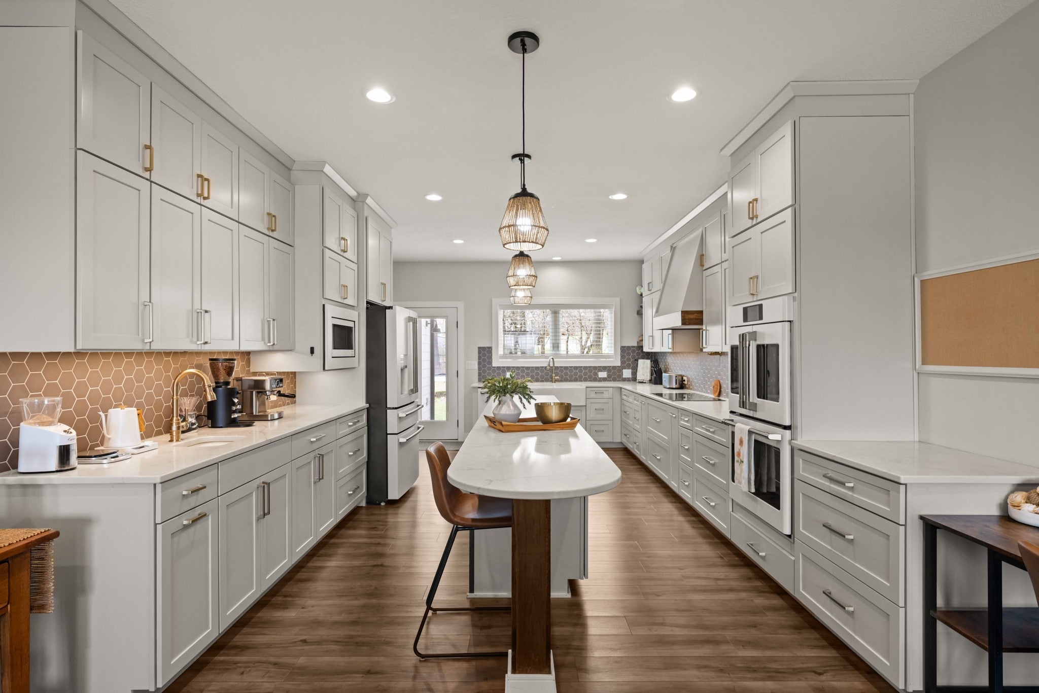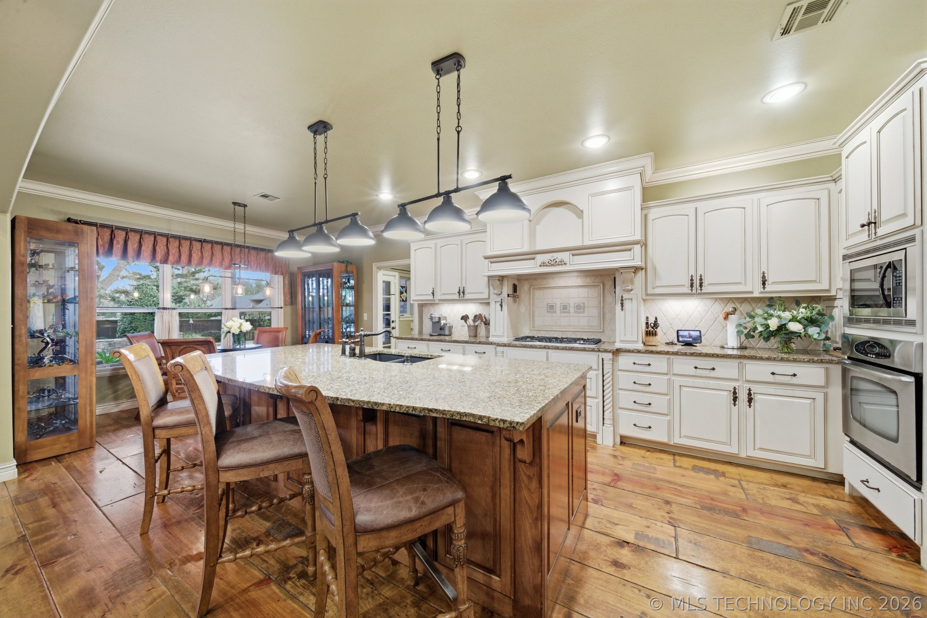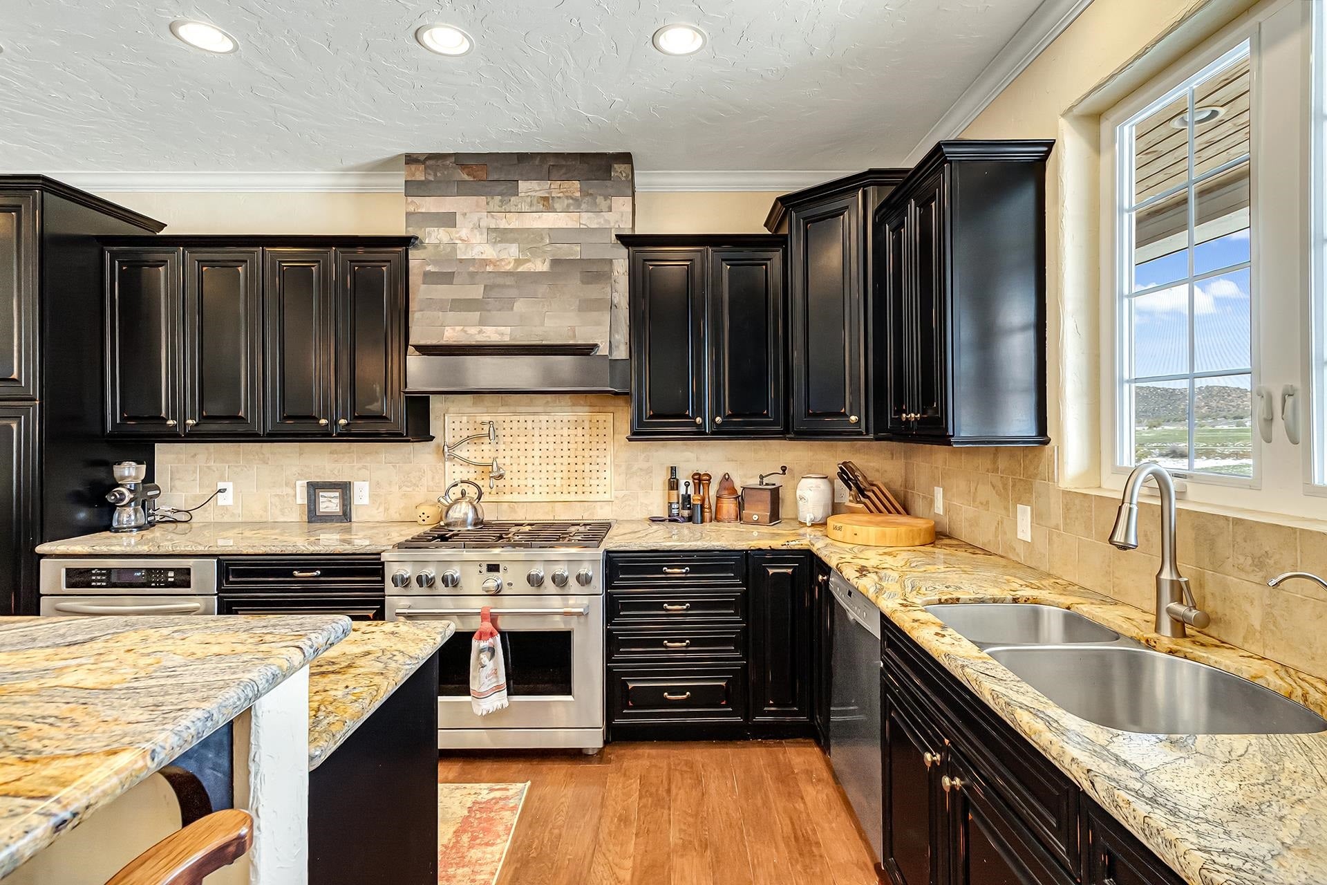 Set on a beautifully irrigated 1-acre lot, this custom 1.5-story walkout offers nearly 6,000 SF designed for flexible living. The main level features a grand entry that flows into a spacious dining area and dream kitchen with a long island, farmhouse sink, prep sink, dual ovens, pot filler, and abundant cabinetry.