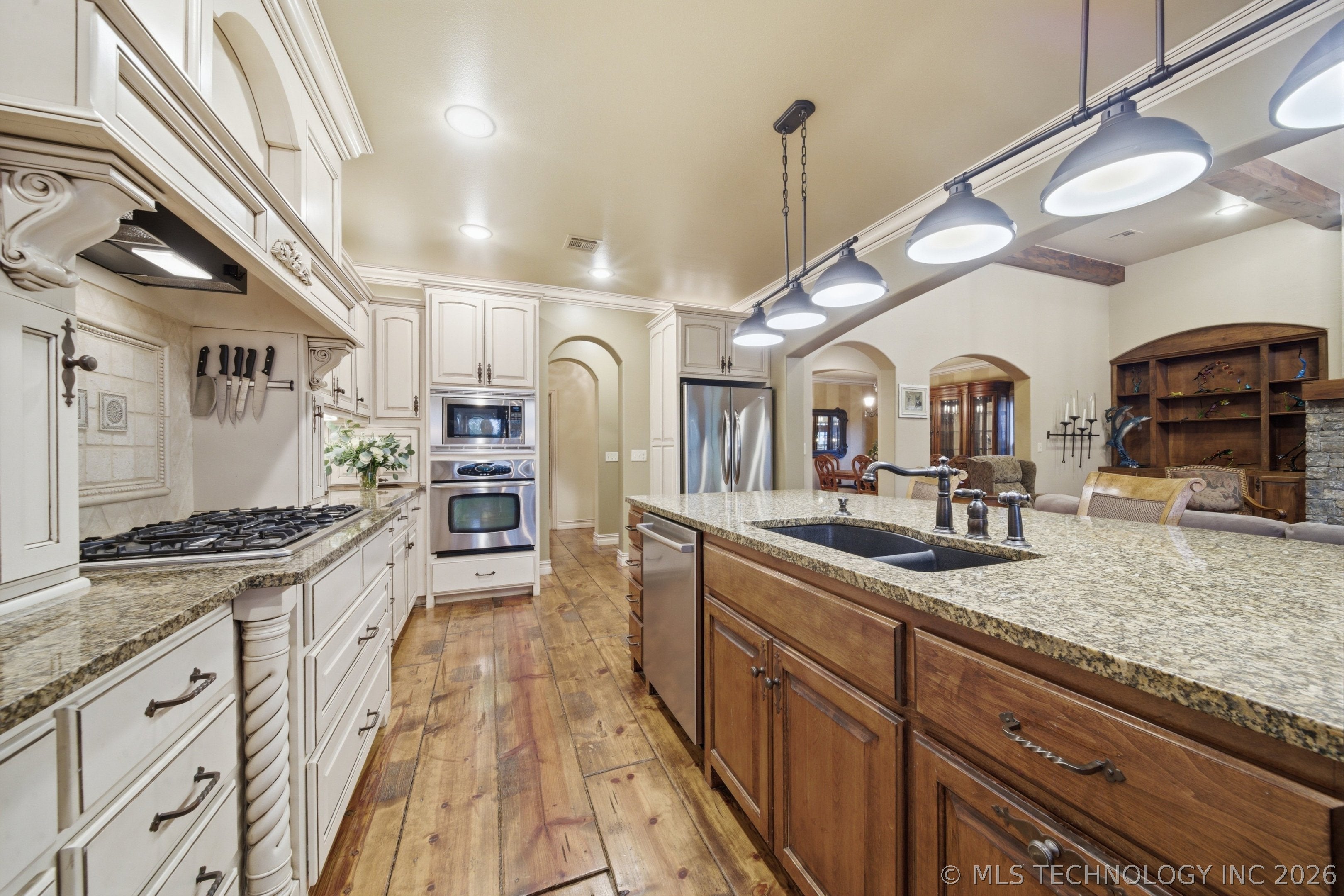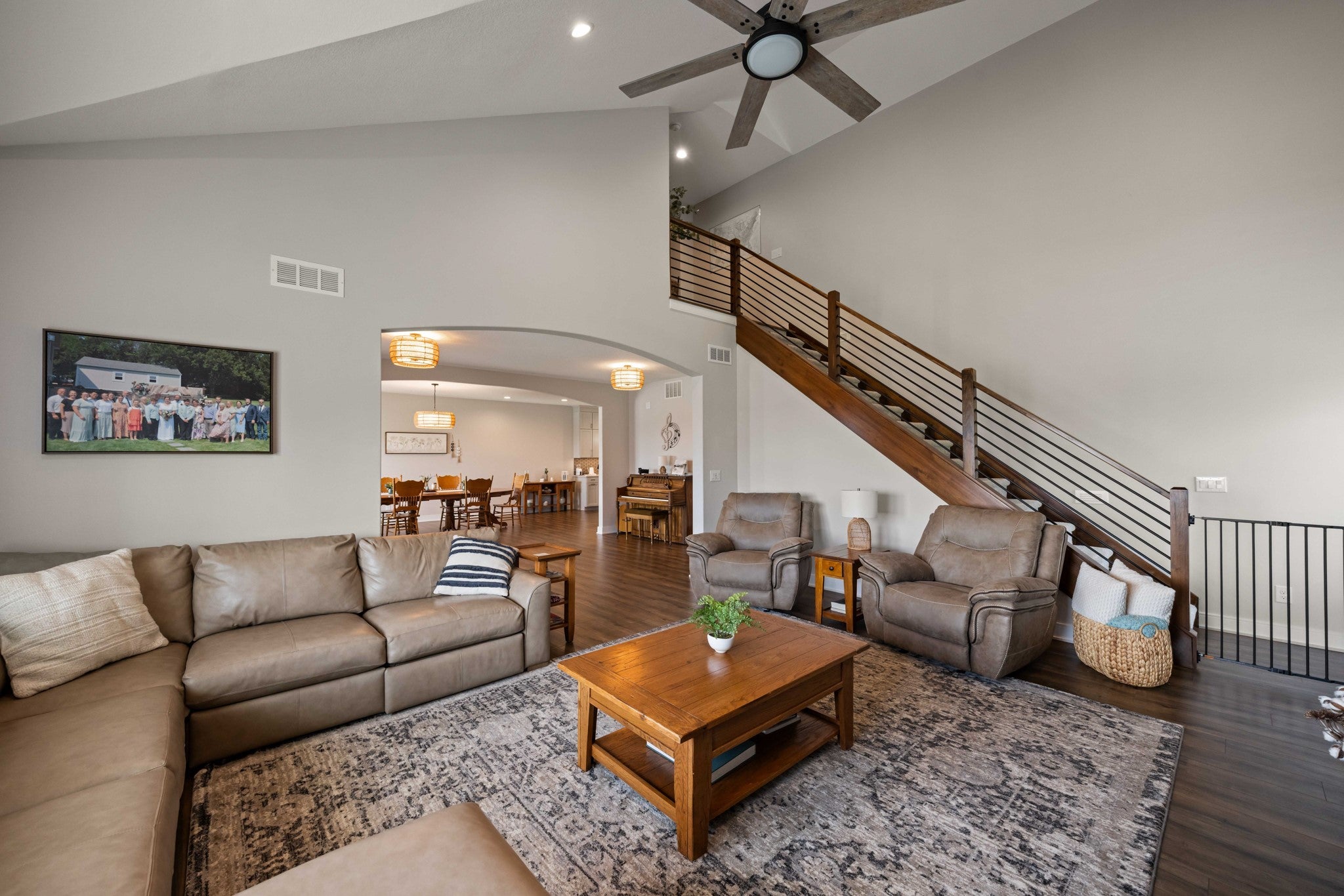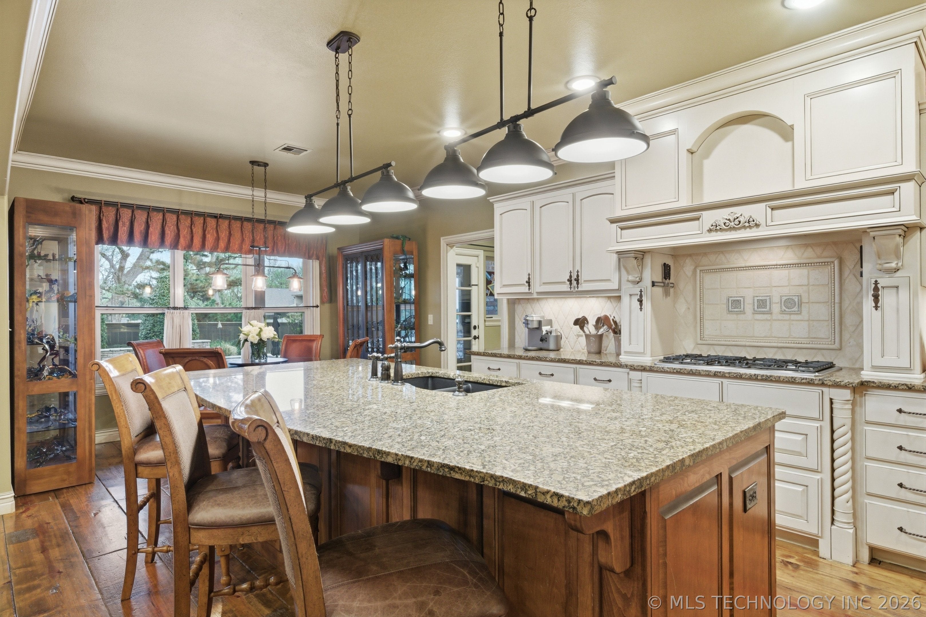 Set on a beautifully irrigated 1-acre lot, this custom 1.5-story walkout offers nearly 6,000 SF designed for flexible living. The main level features a grand entry that flows into a spacious dining area and dream kitchen with a long island, farmhouse sink, prep sink, dual ovens, pot filler, and abundant cabinetry.