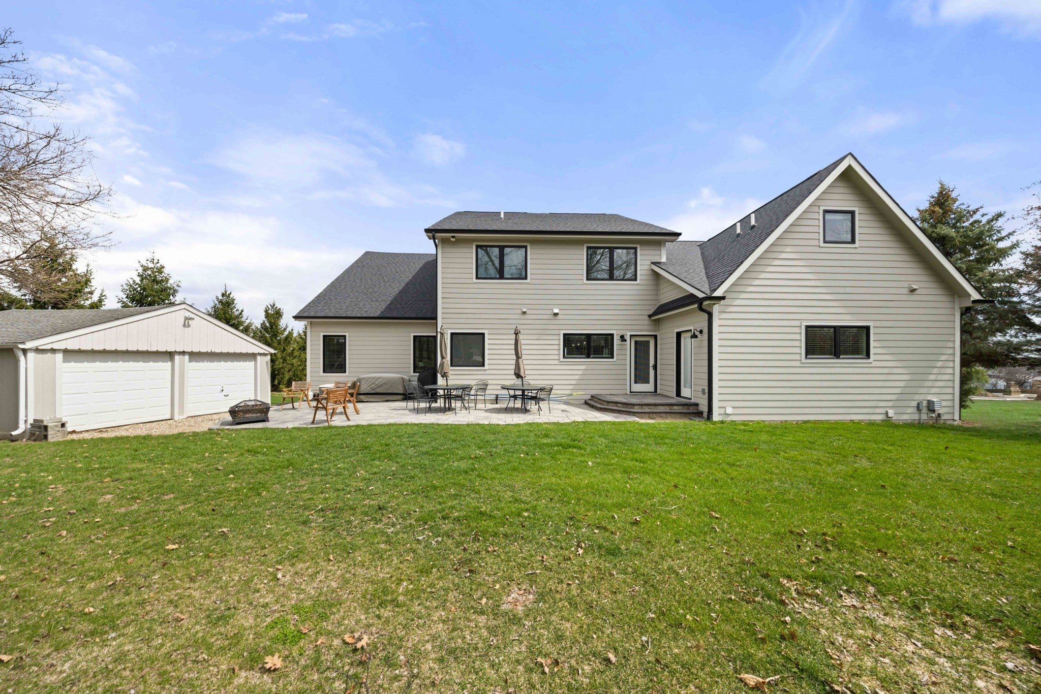 Set on a beautifully irrigated 1-acre lot, this custom 1.5-story walkout offers nearly 6,000 SF designed for flexible living. The main level features a grand entry that flows into a spacious dining area and dream kitchen with a long island, farmhouse sink, prep sink, dual ovens, pot filler, and abundant cabinetry. A mudroom with lockers, large laundry room, and half bath add convenience, while the main-level primary suite includes a soaking tub, tile shower, and custom walk-in closet. Step outside to the stone patio for relaxing or entertaining. The finished walkout lower level offers a private suite with full kitchen, living area, bedroom, and separate garage entrance or access from the main living room, ideal for multi-generational living or guests. Upstairs includes a second primary suite, two additional bedrooms, hall bath, and large flex room roughed-in for a future bath. Laundry on all 3 levels, 2 HVAC systems, tankless water heater, storage shed, and no HOA.All information obtained from seller and public record.