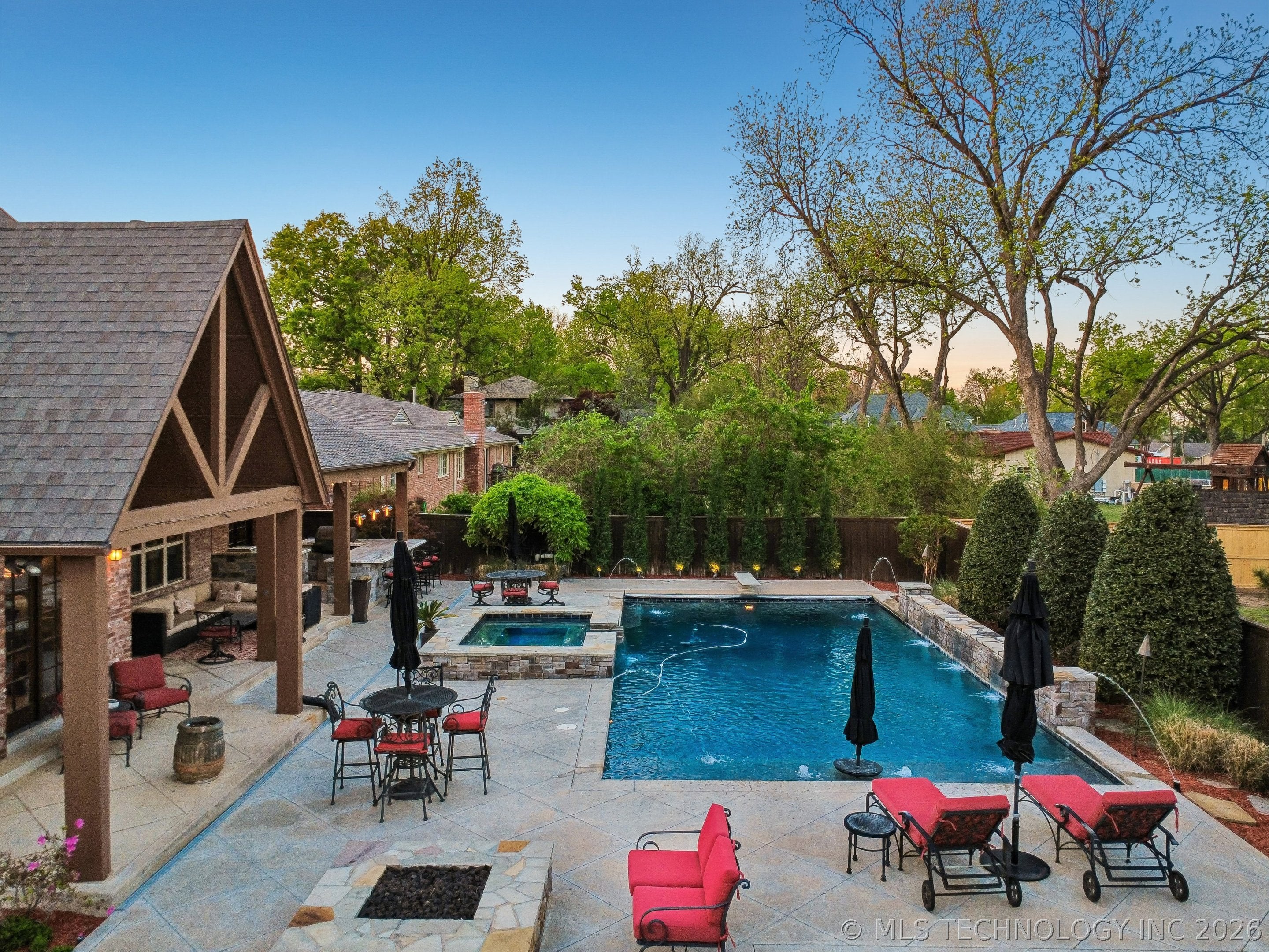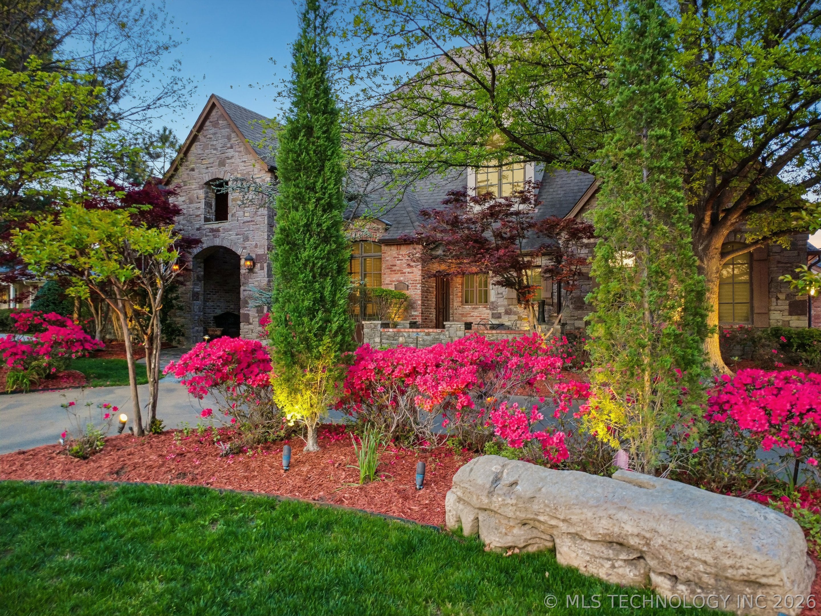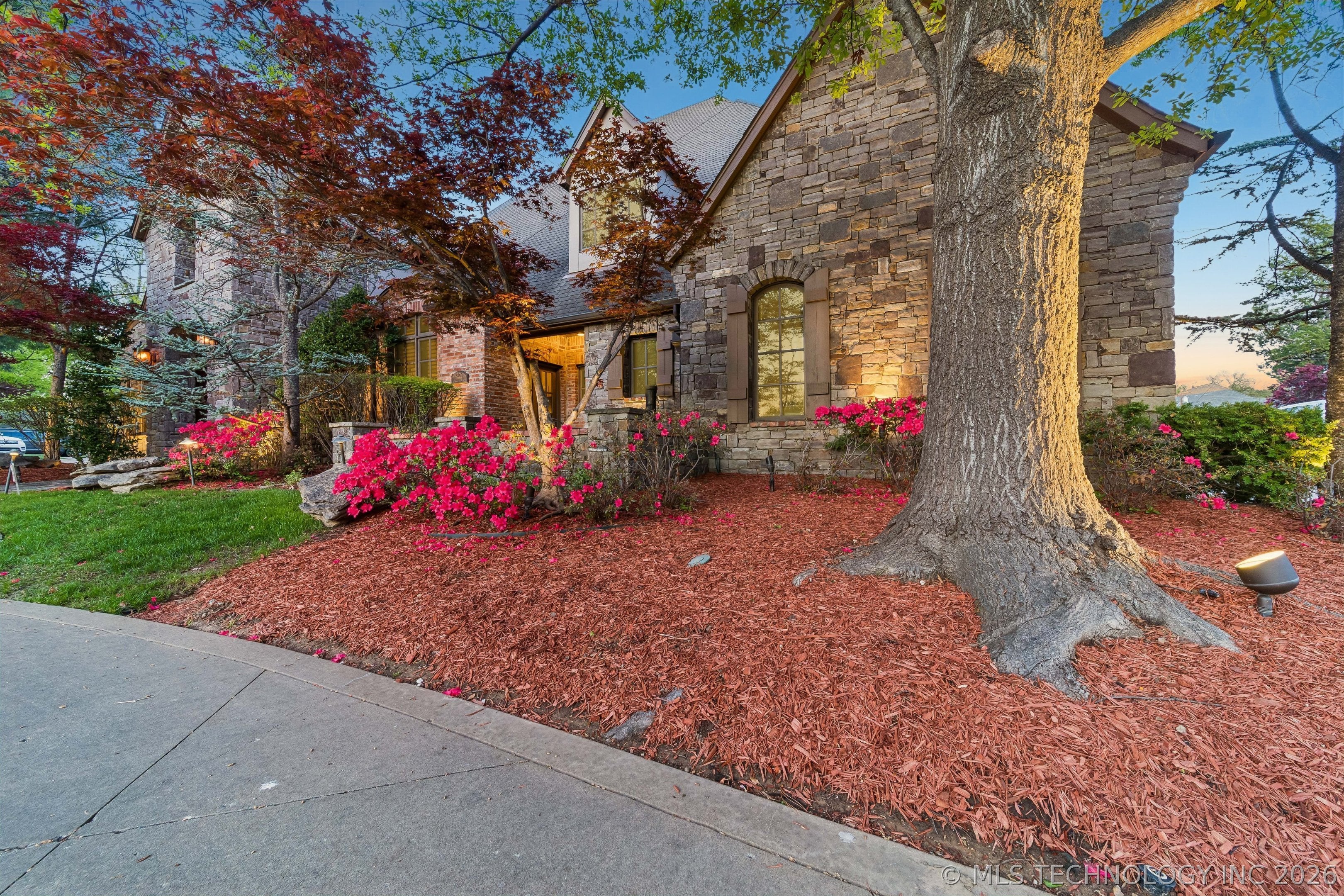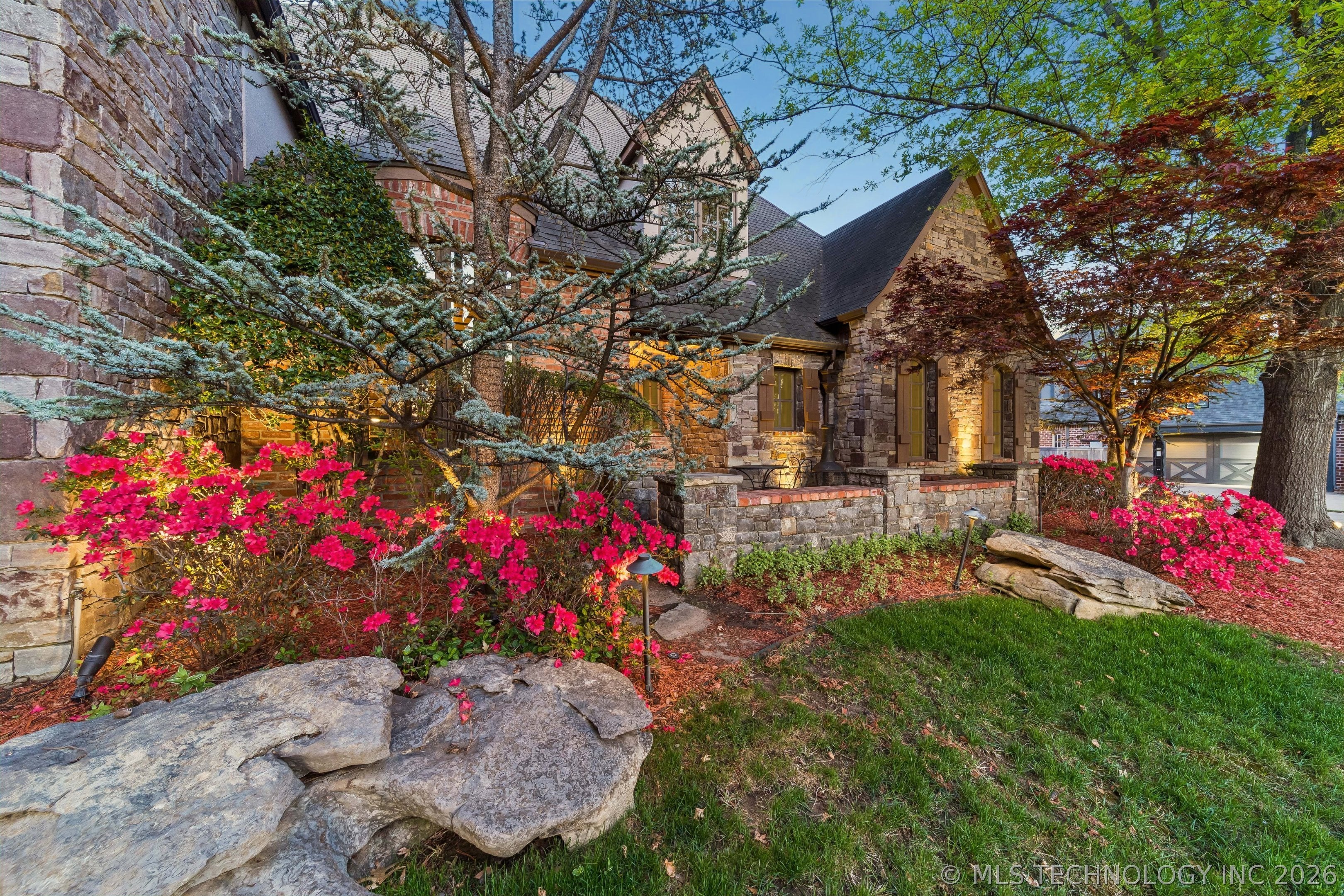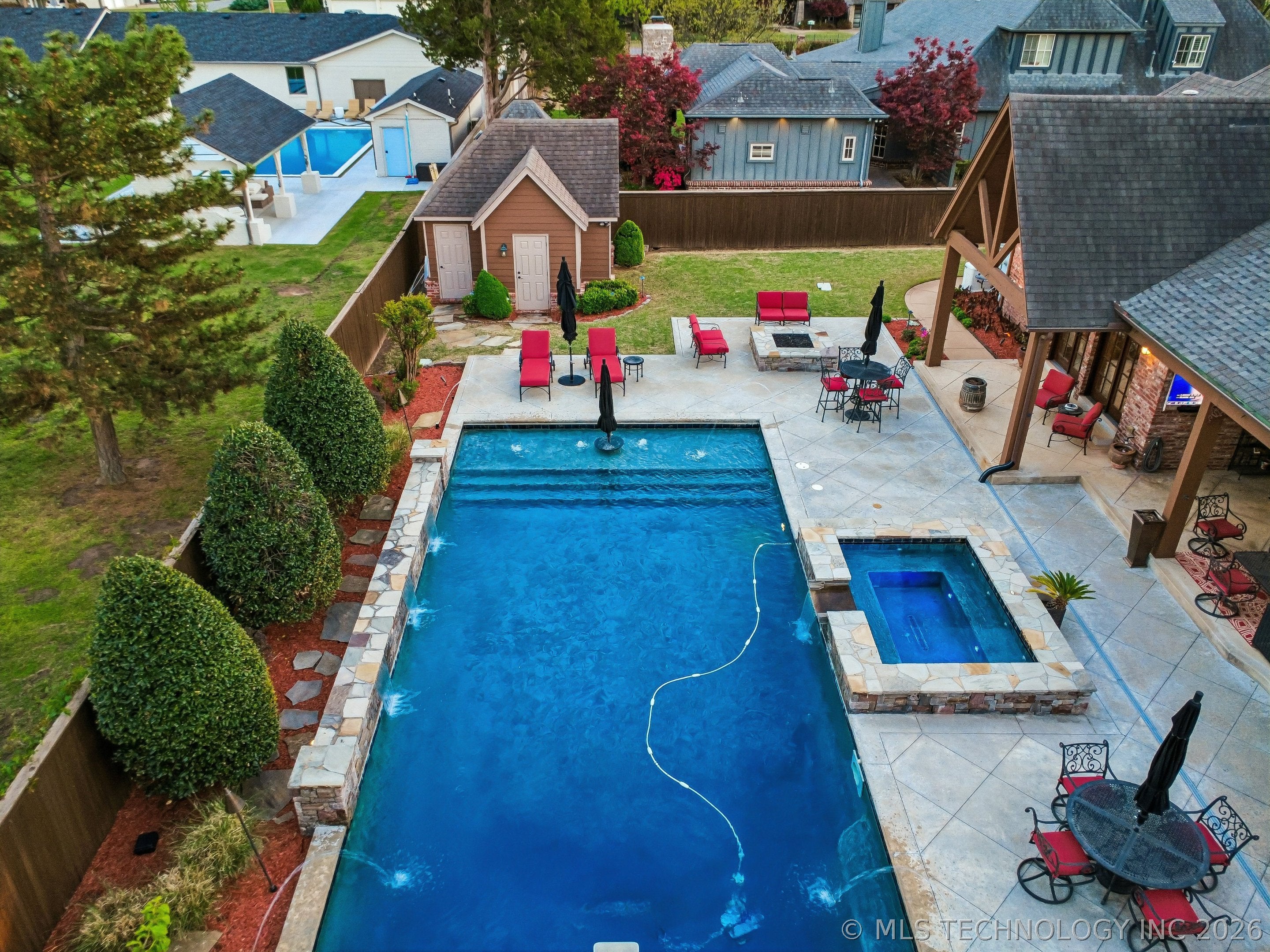 An amazing updated home in excellent condition! Offering everything; 2 spacious living areas; wonderful hardwood flooring; plantation shutters; elegant dining area; large private office; Great room with fireplace and patio doors to outside; gorgeous open kitchen with huge center island and breakfast nook; Chefs kitchen with plenty of built in cabinetry & dry bar; hallway leads to 2nd bedroom downstairs which also has a full bath with access to hallway if needed and also a private outside entry from its delightful private front patio; master bedroom is large sharing a fireplace with the master bathroom; master bath has huge separate shower recently remodeled with great style, plus luxurious bathtub feature; the master suite leads to the huge laundry/mudroom with full bath and shower plus door to outside facilitating outdoor activities and swimming pool; right before exiting to garage is another workroom / mudroom /office / bonus room; the 3 car side entry garage is well oversized and has plenty of storage capacity. On 2nd floor there is a great entertainment/game room with separate private hobby room off; 3 more bedrooms one used as study/exercise room and a pullman bath. Large walk in atticAn amazing oasis has been built to the rear comprising: swimming pool with hot tub and bathing area, fountains controllable by an app, firepit, extensive decorative lighting, stunning large cooking and dining area with first rate cooking equipment and eating bar; there is a sizable lawn to the side for play equipment, pets or simply relaxing and a pool house cottage house complete with half bath The entire landscape is lush, well stocked and well maintained. There is a circular driveway to the front door path and a large driveway to the side entrance garages
