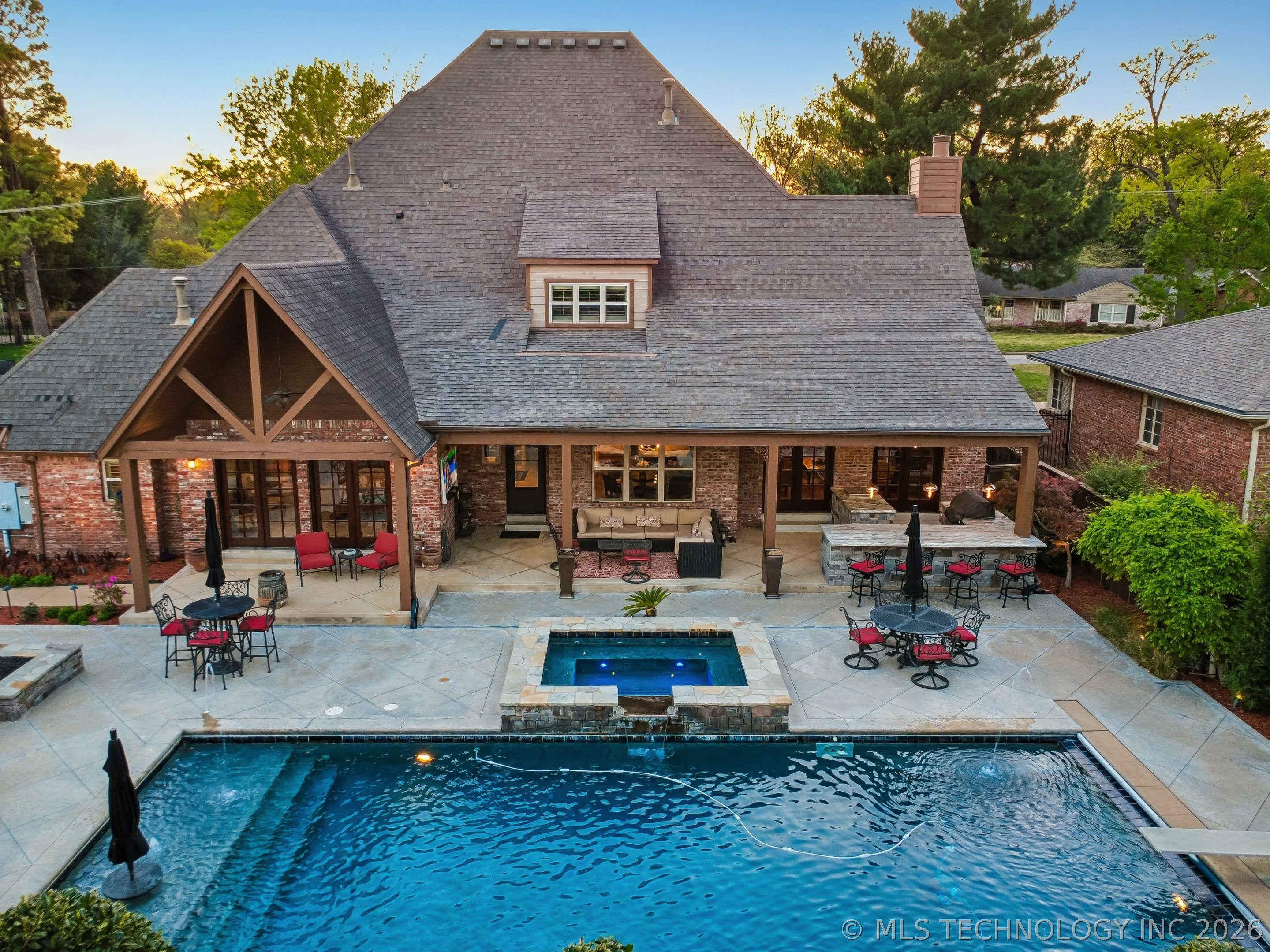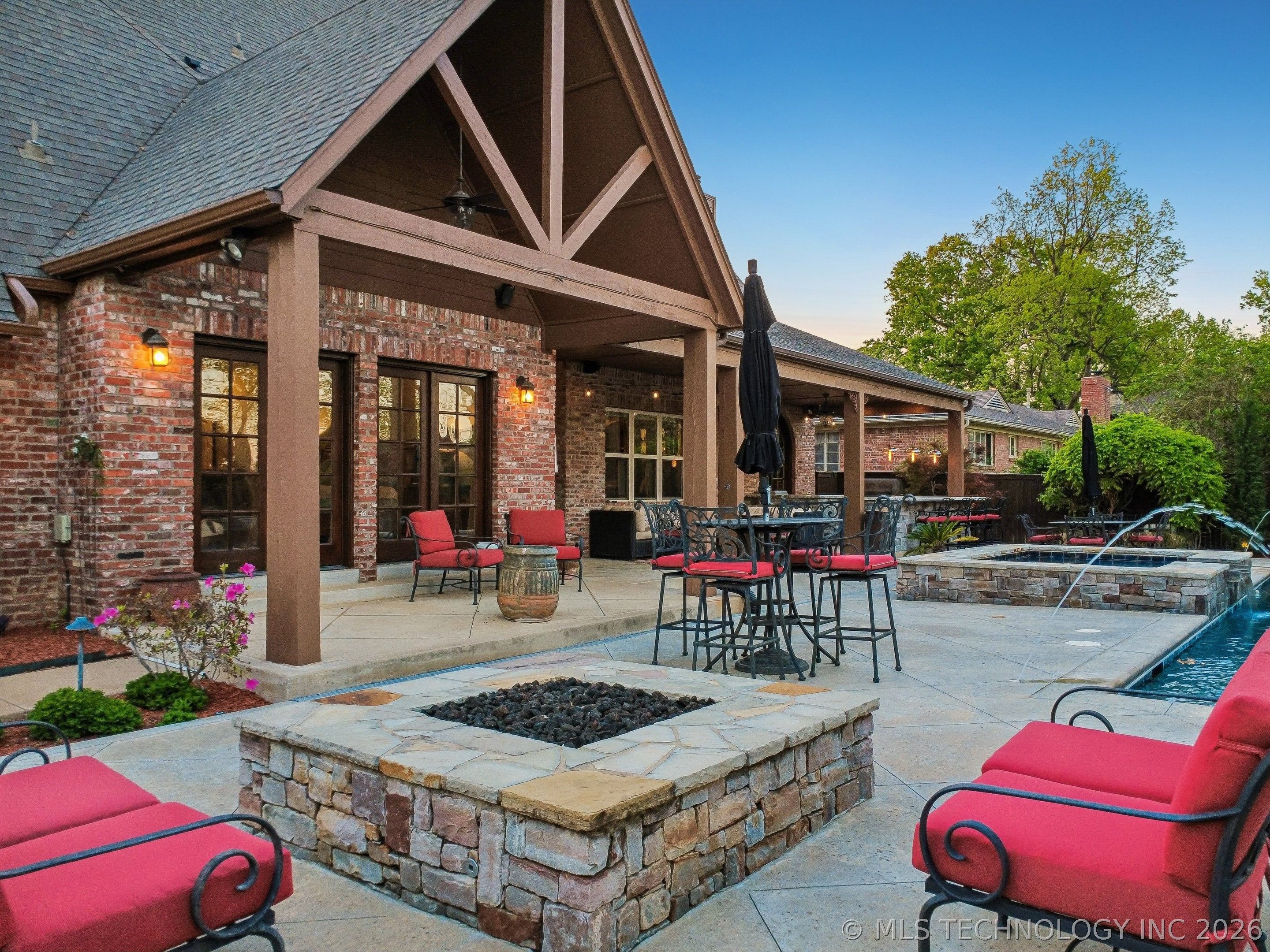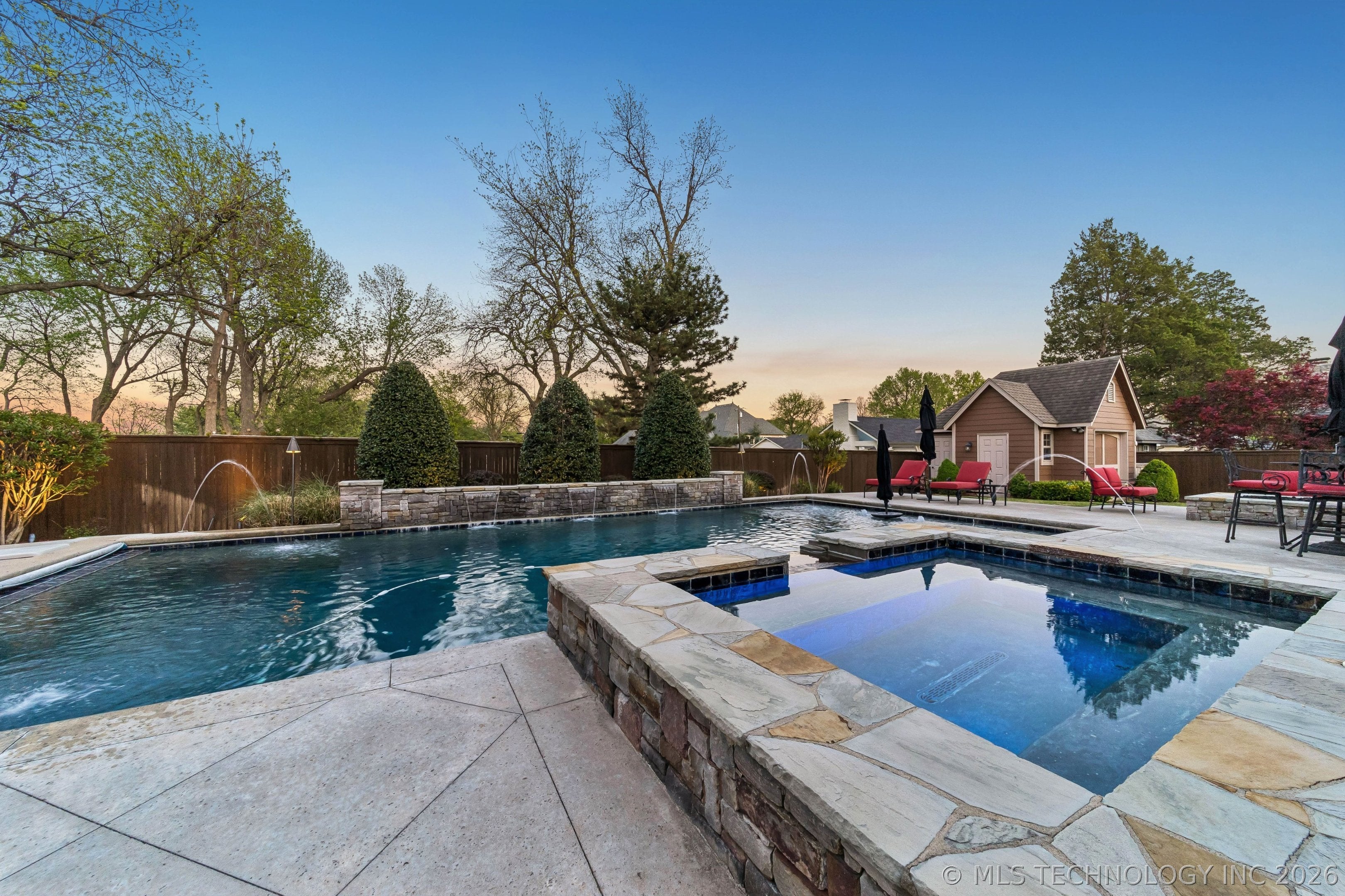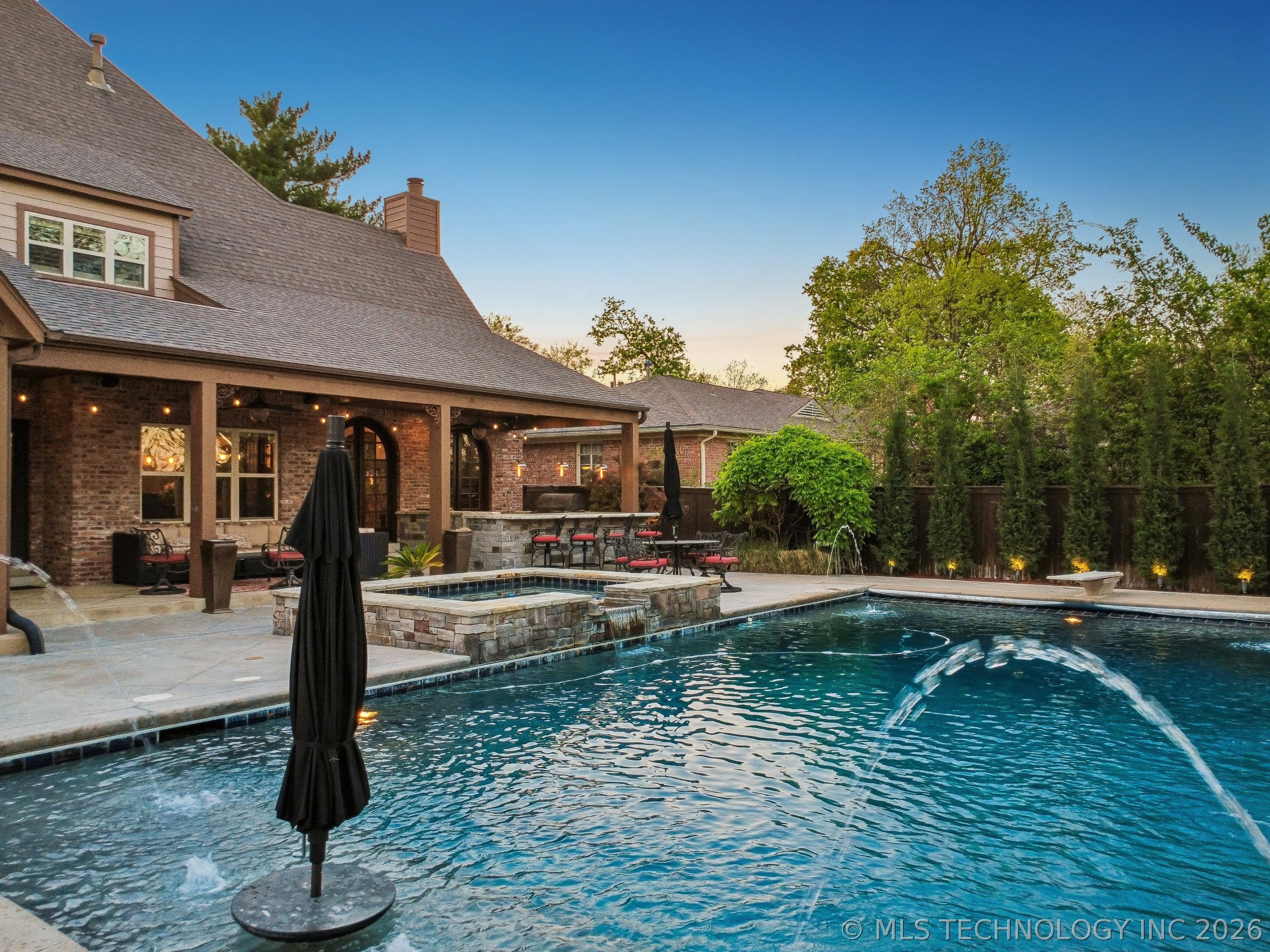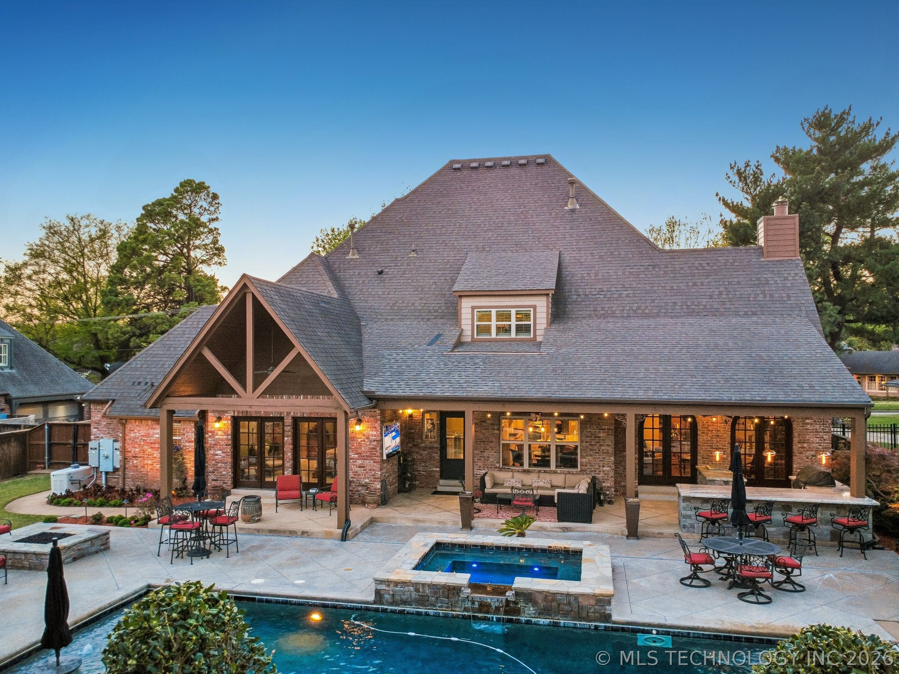 An amazing updated home in excellent condition! Offering everything; 2 spacious living areas; wonderful hardwood flooring; plantation shutters; elegant dining area; large private office; Great room with fireplace and patio doors to outside; gorgeous open kitchen with huge center island and breakfast nook; Chefs kitchen with plenty of built in cabinetry & dry bar; hallway leads to 2nd bedroom downstairs which also has a full bath with access to hallway if needed and also a private outside entry from its delightful private front patio; master bedroom is large sharing a fireplace with the master bathroom; master bath has huge separate shower recently remodeled with great style, plus luxurious bathtub feature; the master suite leads to the huge laundry/mudroom with full bath and shower plus door to outside facilitating outdoor activities and swimming pool; right before exiting to garage is another workroom / mudroom /office / bonus room; the 3 car side entry garage is well oversized and has plenty of storage capacity. On 2nd floor there is a great entertainment/game room with separate private hobby room off; 3 more bedrooms one used as study/exercise room and a pullman bath. Large walk in atticAn amazing oasis has been built to the rear comprising: swimming pool with hot tub and bathing area, fountains controllable by an app, firepit, extensive decorative lighting, stunning large cooking and dining area with first rate cooking equipment and eating bar; there is a sizable lawn to the side for play equipment, pets or simply relaxing and a pool house cottage house complete with half bath The entire landscape is lush, well stocked and well maintained. There is a circular driveway to the front door path and a large driveway to the side entrance garages
