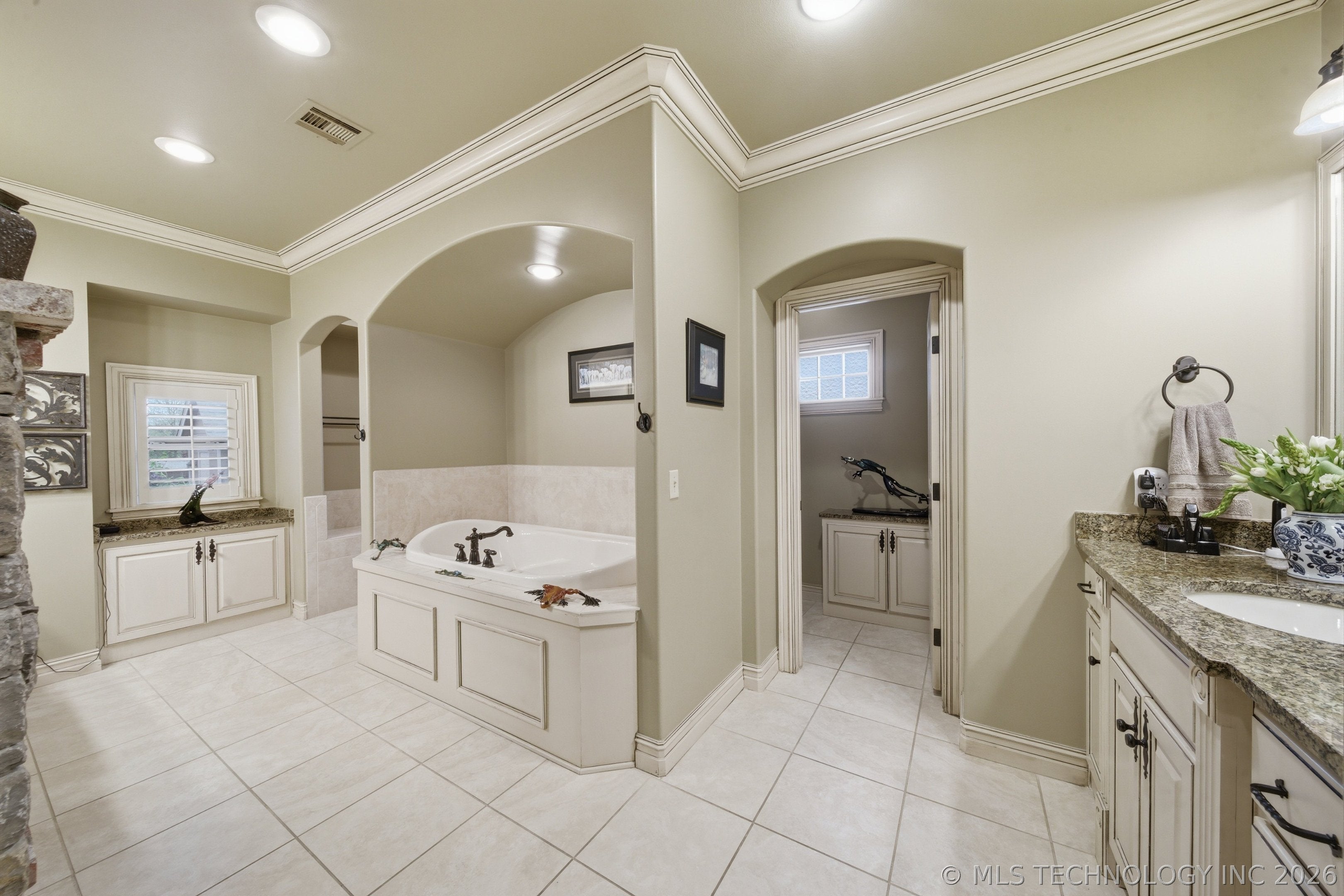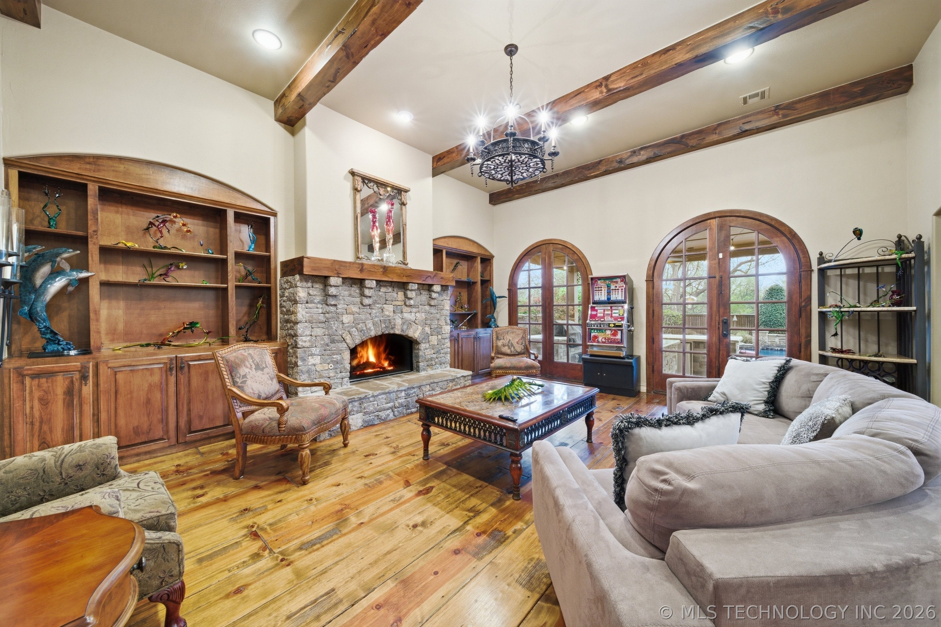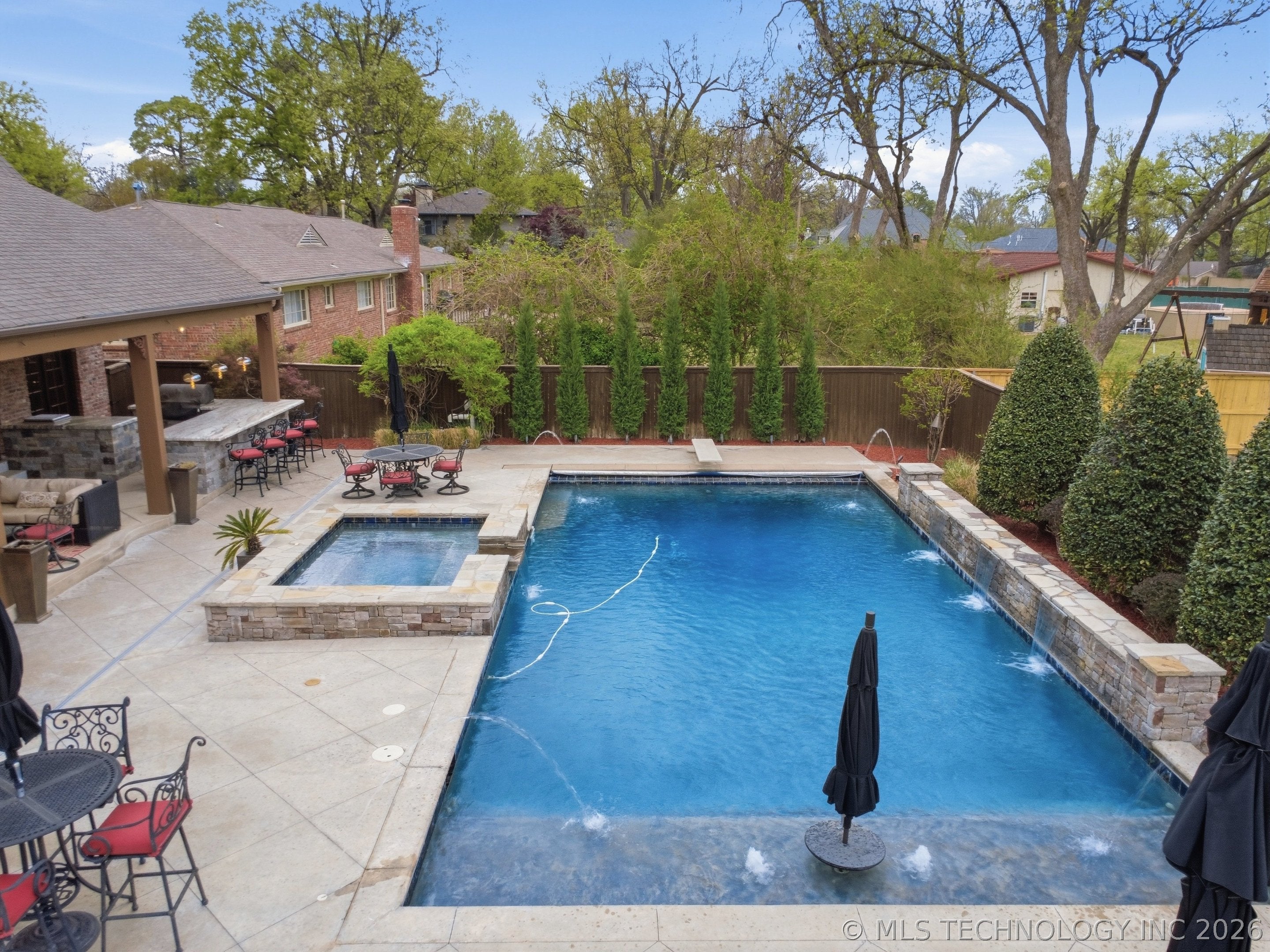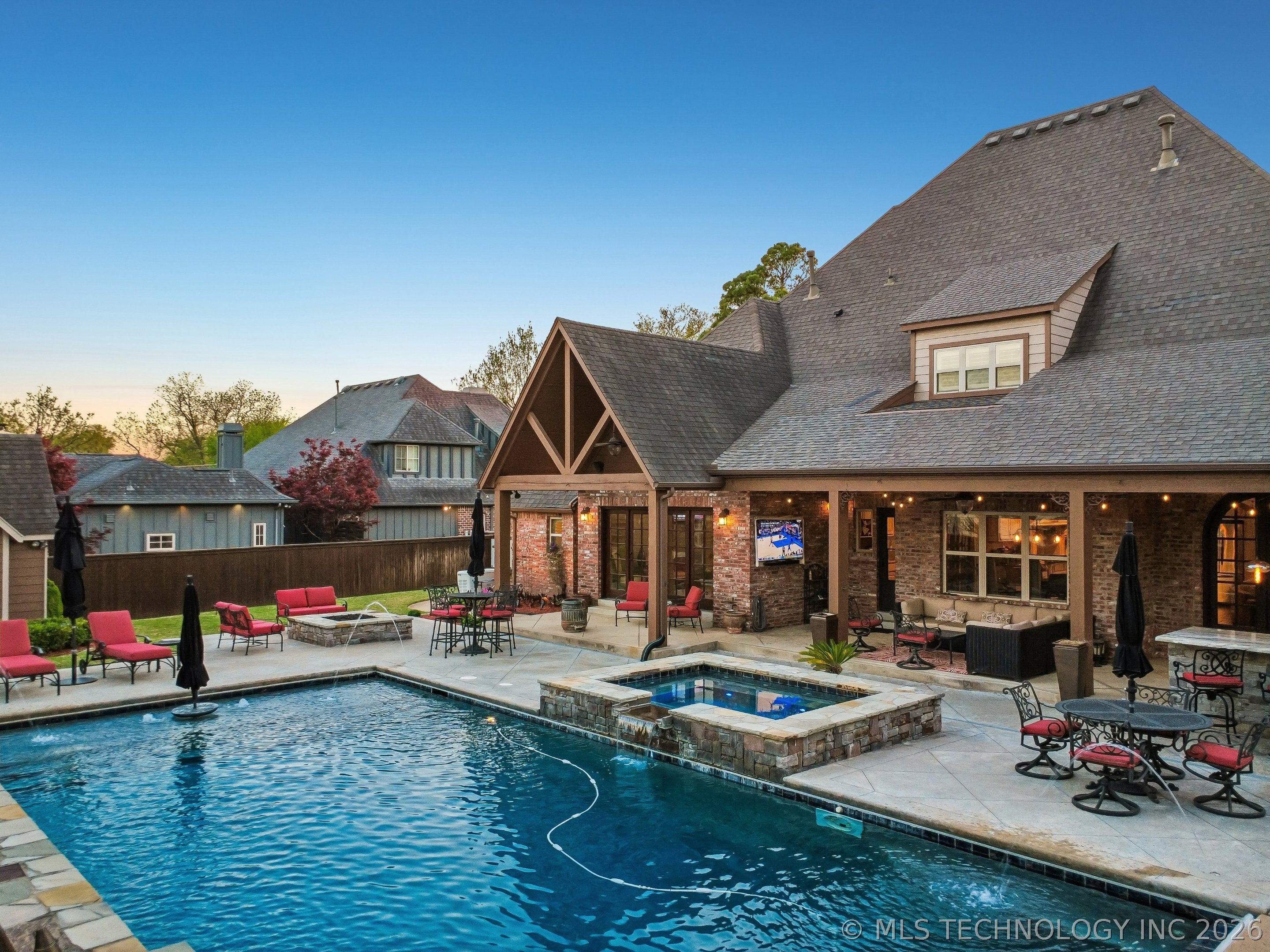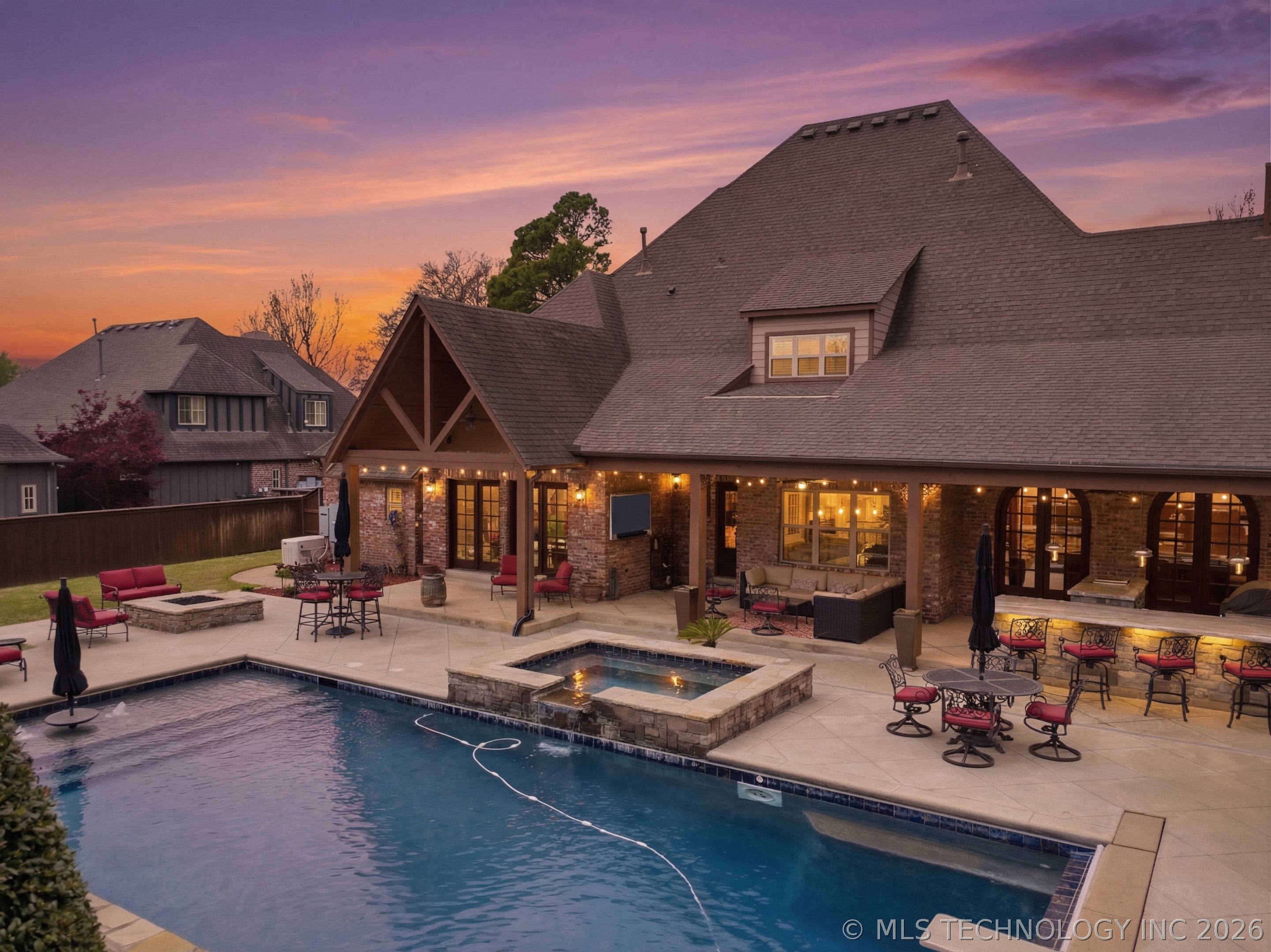 An amazing updated home in excellent condition! Offering everything; 2 spacious living areas; wonderful hardwood flooring; plantation shutters; elegant dining area; large private office; Great room with fireplace and patio doors to outside; gorgeous open kitchen with huge center island and breakfast nook; Chefs kitchen with plenty of built in cabinetry & dry bar; hallway leads to 2nd bedroom downstairs which also has a full bath with access to hallway if needed and also a private outside entry from its delightful private front patio; master bedroom is large sharing a fireplace with the master bathroom; master bath has huge separate shower recently remodeled with great style, plus luxurious bathtub feature; the master suite leads to the huge laundry/mudroom with full bath and shower plus door to outside facilitating outdoor activities and swimming pool; right before exiting to garage is another workroom / mudroom /office / bonus room; the 3 car side entry garage is well oversized and has plenty of storage capacity. On 2nd floor there is a great entertainment/game room with separate private hobby room off; 3 more bedrooms one used as study/exercise room and a pullman bath. Large walk in atticAn amazing oasis has been built to the rear comprising: swimming pool with hot tub and bathing area, fountains controllable by an app, firepit, extensive decorative lighting, stunning large cooking and dining area with first rate cooking equipment and eating bar; there is a sizable lawn to the side for play equipment, pets or simply relaxing and a pool house cottage house complete with half bath The entire landscape is lush, well stocked and well maintained. There is a circular driveway to the front door path and a large driveway to the side entrance garages