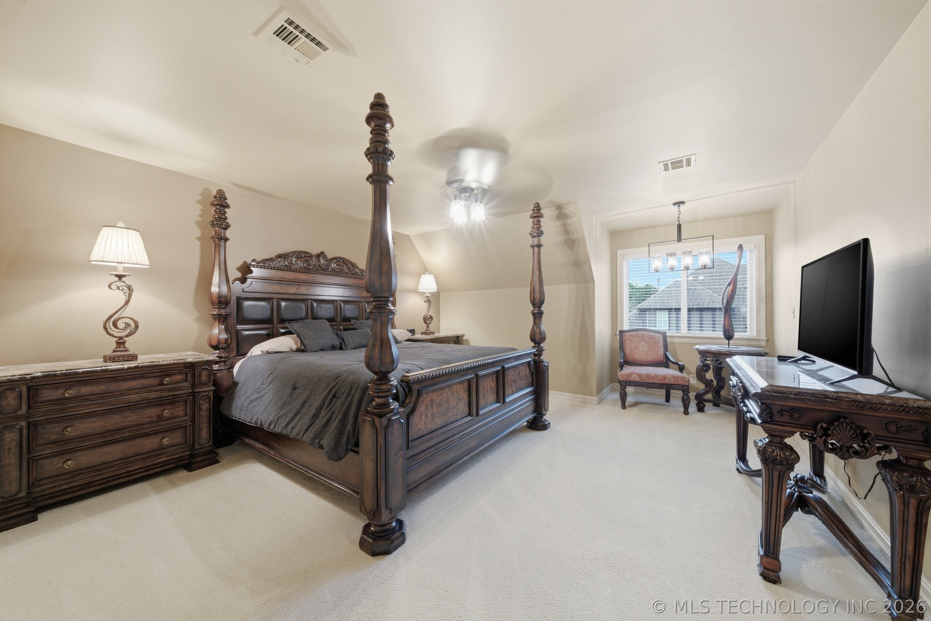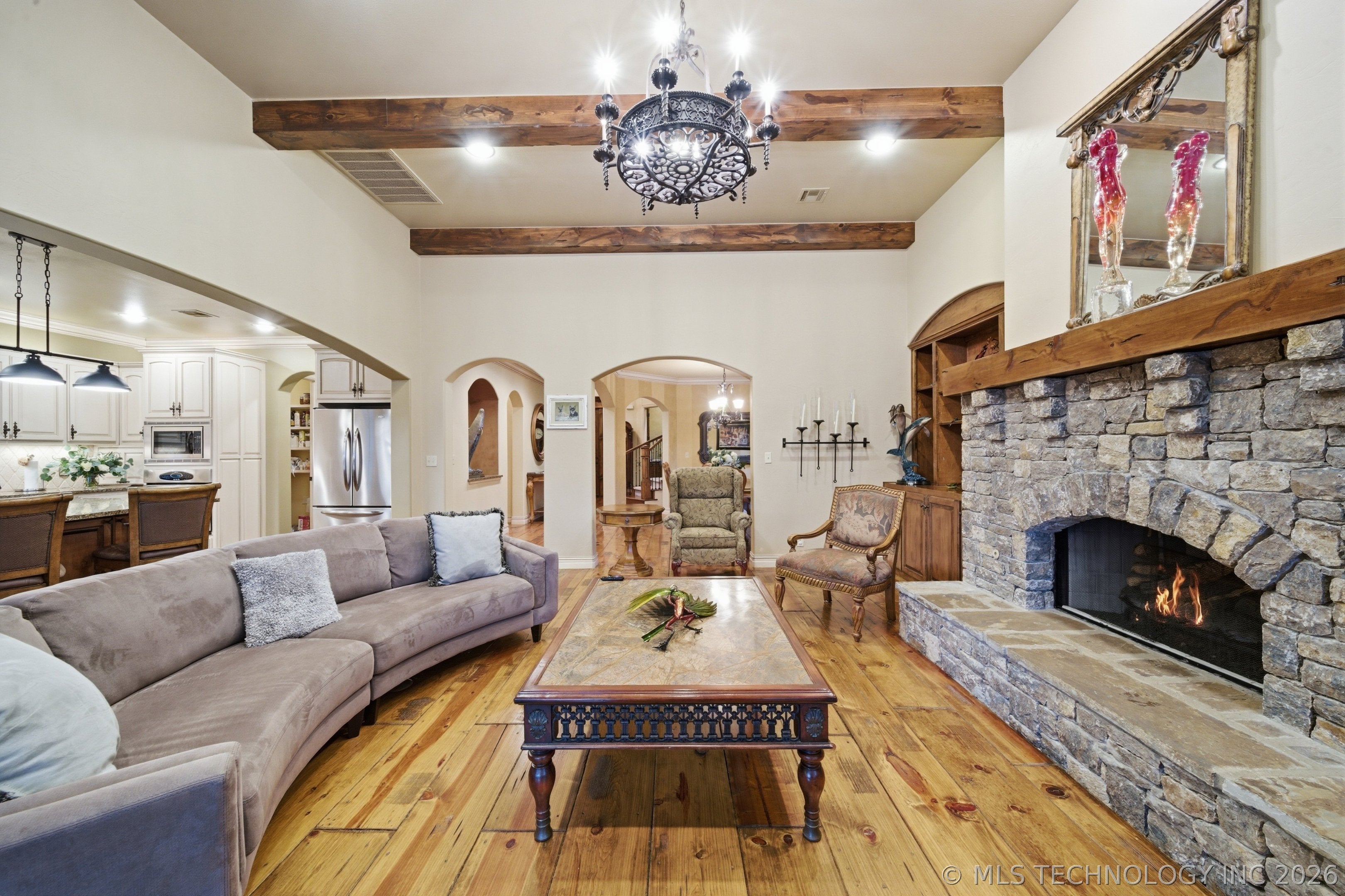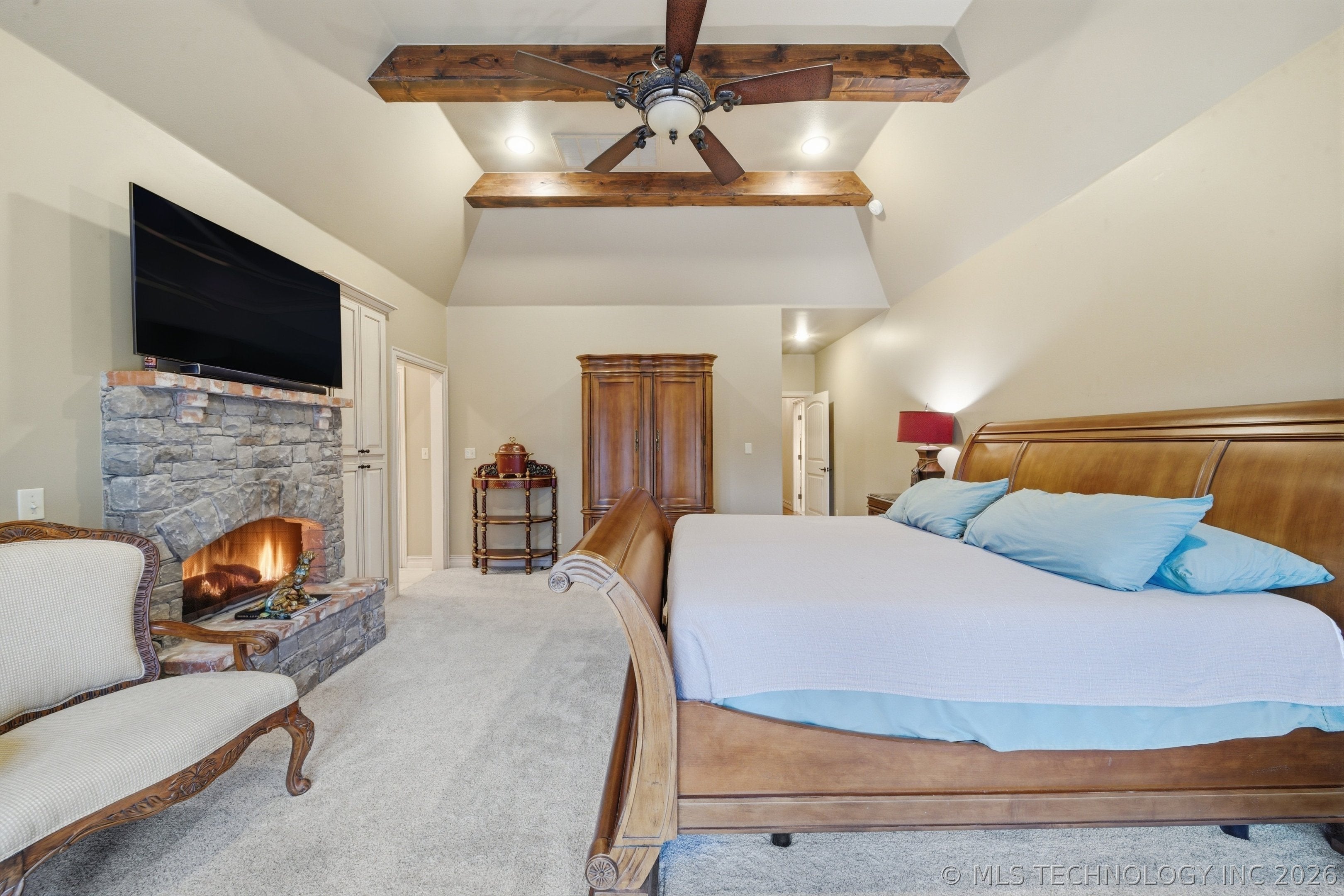 Nestled on a spacious corner cul-de-sac lot just under half an acre, this beautiful home offers the perfect blend of comfort, functionality, and a prime location in the highly desirable Stone Lakes community, known for its gorgeous lake, walking trails, and family-friendly atmosphere. Surrounded by mature trees and featuring a sparkling pool and spa, this property delivers exceptional indoor-outdoor living.Step inside is the open floor plan filled with natural light and features rich hardwood floors, high ceilings, and large windows with plantation shutters. The functional kitchen is equipped with stainless steel appliances, granite countertops, extensive cabinetry, and a generous breakfast areaideal for everyday living and entertaining. Seamlessly open to the family room, this space serves as the heart of the home. The light-filled dining room sits just off the kitchen, while the formal living room near the entry offers versatility as a sitting area or the perfect space for a piano. A separate flex room with premium exercise flooring over hardwood offers additional versatility as a private office or fitness space.The spacious primary suite is located on the main floor and features serene backyard views along with a spa-like ensuite bathroom, complete with a soaking tub and large walk-in shower. Upstairs, youll find a large family room, three spacious guest bedrooms with walk-in closets, two full bathrooms, and an oversized finished bonus roomperfect for a craft space or additional storage.Step outside to a peaceful backyard retreat by the pool and spa after a long day. Enjoy the convenience of being within walking distance to Carroll Senior HS, along with easy access to shopping and dining. The long driveway with side garage can park many cars perfect for a big gathering. Hard to find an updated home like this one on an almost half acre corner cul de sac in prestigious Stone Lakes estate.