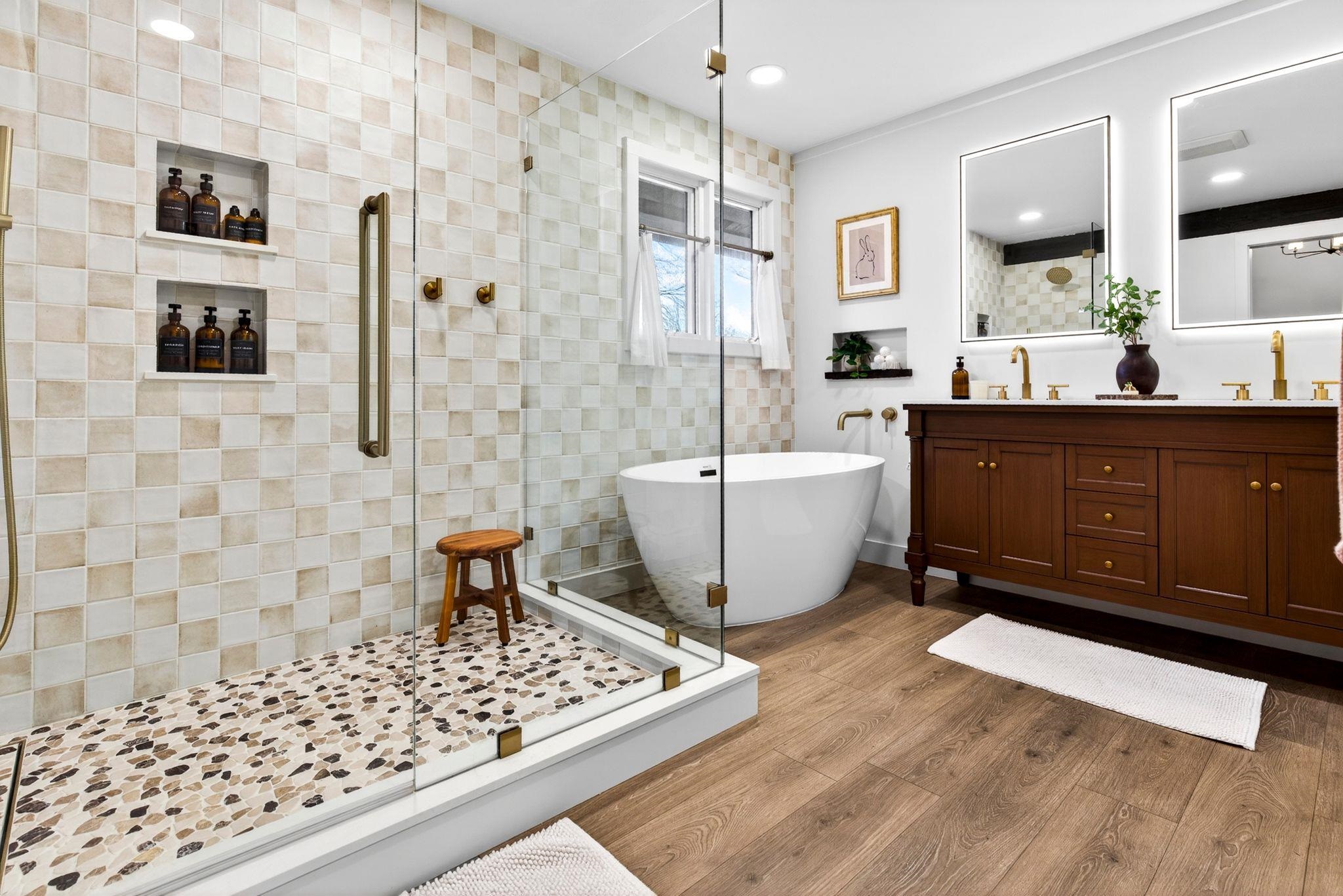 Welcome to a home that truly stands apart from the rest- this stunning, one-of-a-kind Raised Ranch, built in 2016, is loaded with high-end upgrades & thoughtful design throughout. Step through the front door & prepare to be impressed. The main level offers an open-concept living room, dining area & kitchen, all enhanced by soaring cathedral ceilings & an abundance of natural light. The completely remodeled (2025) kitchen is a show stopper, featuring a center island, quartz countertops, shaker style soft-close cabinetry & sleek stainless steel appliances. An oversized farmhouse sink overlooks the beautifully landscaped backyard, making everyday tasks feel anything but ordinary. Sliders off the dining area lead to a composite deck, perfect for morning coffee or evening relaxation. Back inside, the spacious living room features a brand new wall mounted electric fireplace with a custom shiplap entertainment center, completed by recessed lighting & upated fixtures throughout. The main level includes 3 bedrooms, including a primary suite with a tray ceiling, walk-in closet with a dedicated makeup area & a private full bath with granite countertops, double sinks & a tiled tub surround. A 2nd remodeled full bath with granite & tile tub surround is conveniently located off the hallway. Gleaming hardwood floors run throughout the main level. Head downstairs to a beautifully finished lower level offering incredible versatility. Youll find a stylish laundry area with shiplap accents,