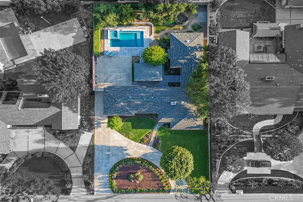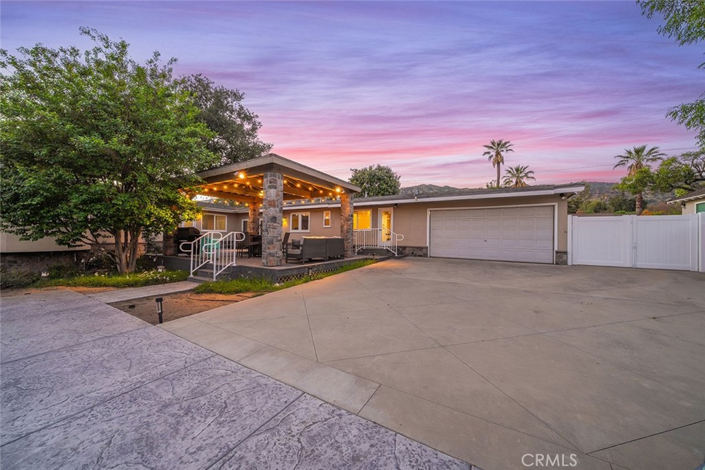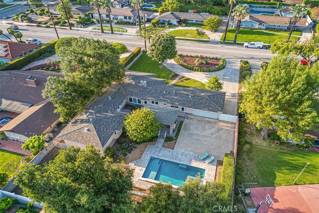 Welcome to this quintessential Glendora single-level ranch-style home, beautifully upgraded and offering 5 bedrooms and 3 bathrooms across 2,538 square feet of living space, all set on an expansive 17,649 square foot lot. Professionally landscaped grounds provide exceptional curb appeal and a warm, inviting first impression. Inside, the home features a formal living room with a cozy fireplace and a formal dining room with vaulted ceilings, perfect for gatherings and entertaining. The remodeled kitchen is appointed with quartz countertops, stainless steel appliances, and a stylish subway tile backsplash, and opens seamlessly to the family room. Just off the family room, enjoy a custom wine bar with a seating area and multiple doors leading to the outdoor living space. The backyard is designed for entertaining and relaxation, featuring an elevated composite deck, stacked stone pillars, and a covered patio complete with lighting and a ceiling fan. A brand new pool with an elevated spa and water features enhances the resort-style setting. The spacious primary suite offers a private retreat with a separate sitting area and an en suite bathroom featuring a walk-in closet, soaking tub, and dual vanity. Additional highlights include a combination of hardwood flooring, vinyl plank, and plush carpeting throughout. The property also includes RV parking, a circular driveway, and an attached 2-car garage. Conveniently located within walking distance to Cullen Elementary School and Goddard Middle School, this home combines comfort, style, and an ideal location.