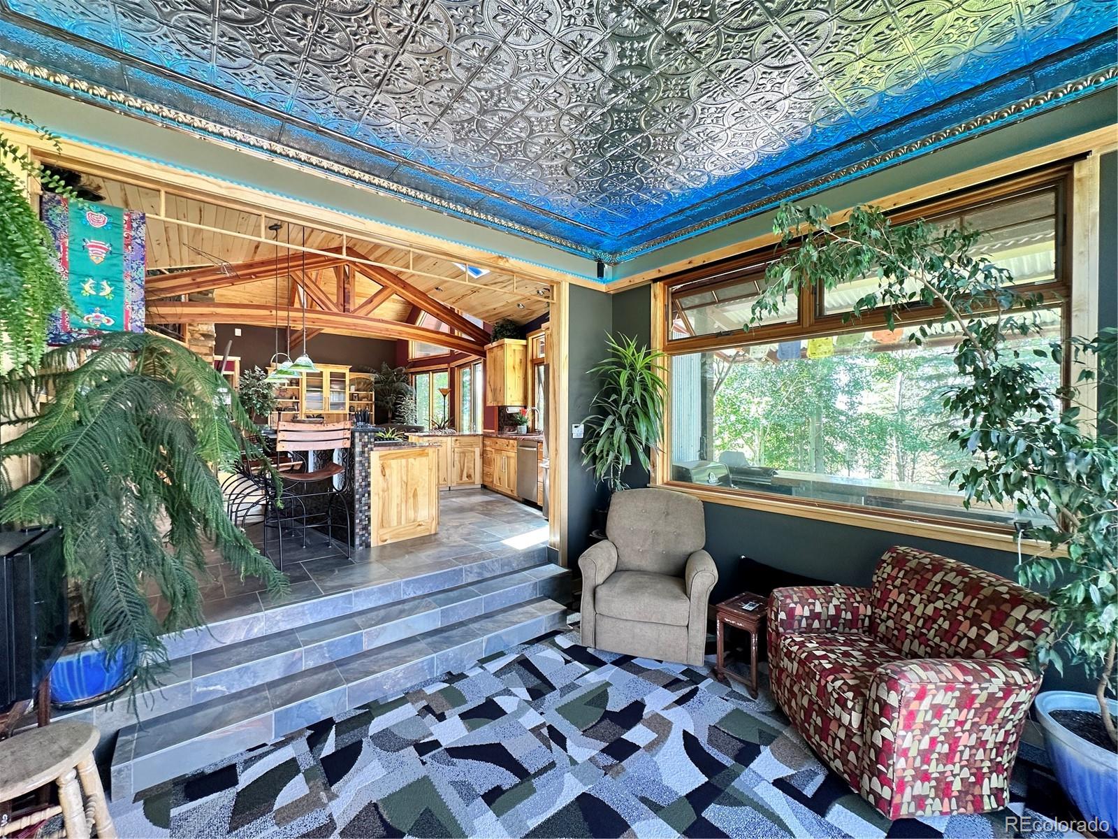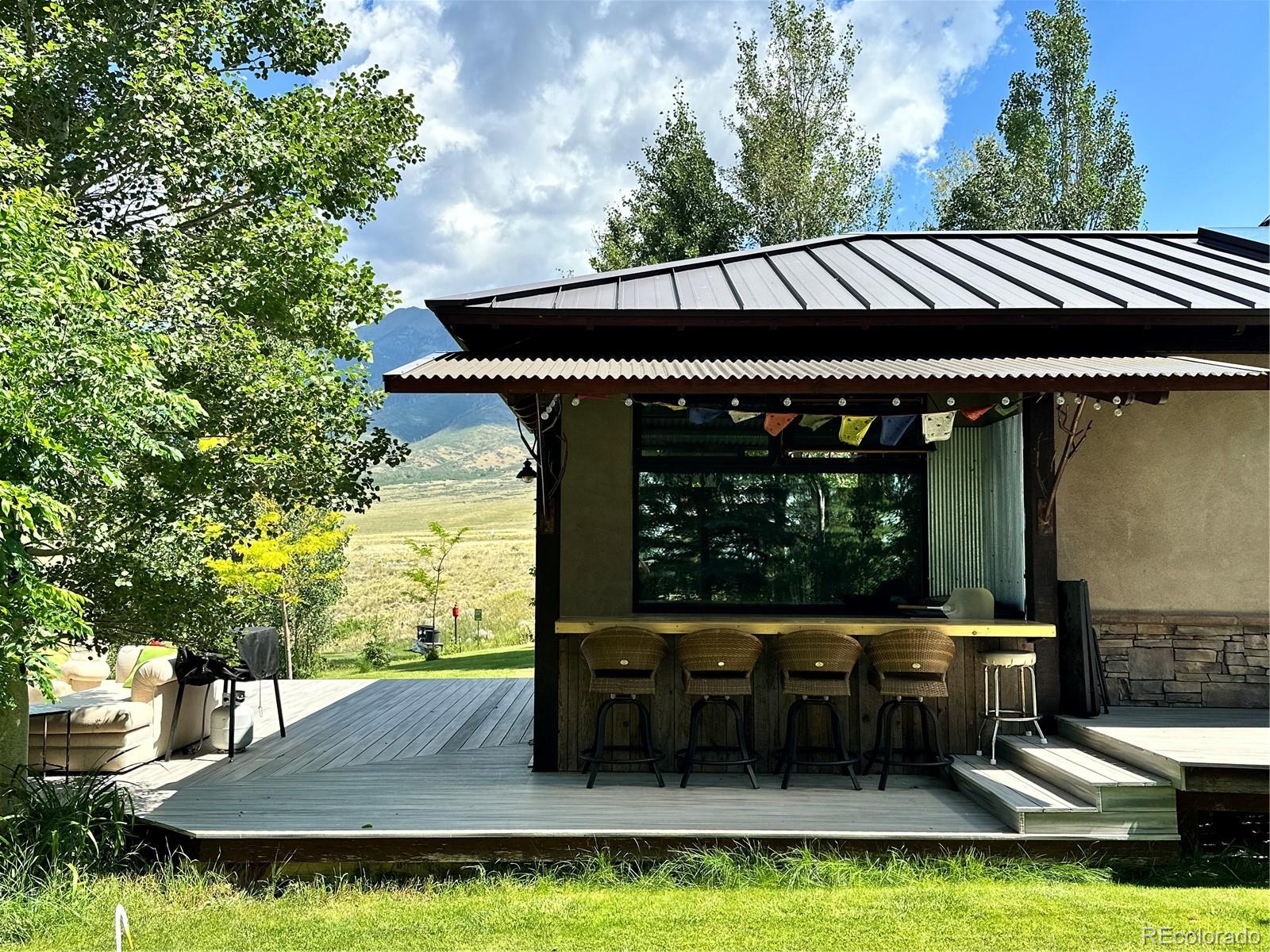This captivating off-grid sanctuary, maintained as a high desert oasis near Villa Grove for 20 years, is remote yet minutes from the highway, offering absolute serenity, incomparable vistas, and a 35-minute drive to Salida, CO. Once the gathering hub of Sangre de Cristo hang gliding fly-ins, this custom home blends Asian-influenced simplicity with undeniable elegance. A circular drive invites you into an artisanal threshold, a distinctive gate that gently hints at the architectural treasures contained within. Pass through this portal and enter a sun-drenched secret garden, a paved courtyard perfect for perennials, herbs, and a slow morning breakfast or coffee. Inside, a palette of granite, tile, stone, and artisan woods evokes a sophisticated, spiritual energy that both delights and soothes the soul. Seamless living and gourmet kitchen areas feature a stone fireplace and granite island, creating an inviting ambiance for intimate meals or gatherings of twenty. Natural light streams in through high windows and skylights. The private main-floor master wing boasts gorgeous birch/hickory cabinetry and Eastern red cedar ceilings. Vantage glass portals in every space frame the natural landscape, effectively merging the interior and exterior spaces, and dissolving all boundaries. Outside, two premium decks offer vast, soaring views of Mount Ouray and the Sawatch Range. The property features a newly constructed 300 sq. ft. ADU above a 2-car garage/office with a historic lawn stage that rivals the views at Red Rocks. Imagine living in an off-grid masterpiece built for generational sustainability, utilizing passive solar and a 16x32 greenhouse for year-round farm-to-table possibilities. This modern heirloom melds timeless beauty, energy efficiency, and food security for visionary off-grid buyers. Designed and crafted by the owner, an award-winning builder, this is an absolute one-of-a-kind property and a must-see appointment in your Colorado mountain home search.