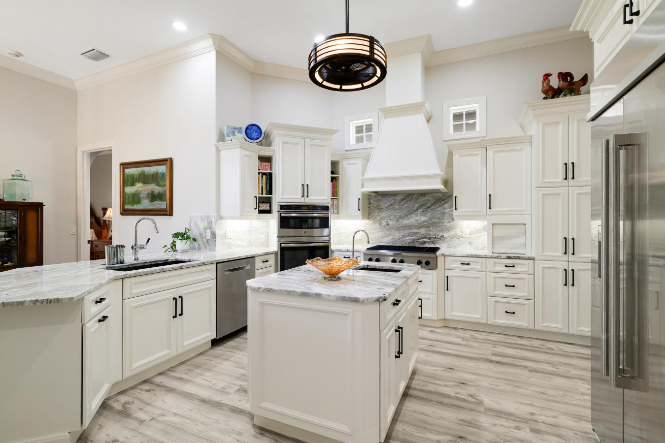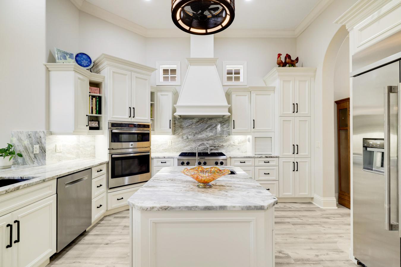 Stunning custom home in Briars Creek, an exclusive, gated golf community on the Kiawah River. This home is situated at the end of a quiet cul-de-sac, is on just over an acre overlooking incredible long views of the 11th hole of Briars Creeks renowned Rees Jones Championship Golf Course. Not only does it have long golf views, but it also has marsh views! It was built in 2022 with a hardiplank shake-and-board-and-batten exterior, a metal roof, and all impact windows and doors. The entryway is stunning with an oversized custom gas lantern, a foyer that has 11 pine shiplapped ceilings, a fabulous chandelier, and direct, spectacular views. This home has a very open floor plan and an abundance of natural light. The two-story great room has soaring 20 ft ceilings, an incredible modern light fixture, and a gas fireplace with a floor-to-ceiling oversized shiplap surround. There are built-in cabinets flanking the fireplace on both sides for perfect symmetry. Open the 16 ft sliders to bring the outside in. There are rare 8 solid European-cut white oak hardwood floors throughout the home. The kitchen is a chefs kitchen with a 14 ft center island with pendant lighting, quartz countertops, bar stool seating, stainless steel GE Monogram appliances, including a 48" gas range with 6 burners, griddle, convection oven, and built-in microwave. The range does have a hood vent with a custom hood, and subway and decorative tile backsplash with pot-filler. The dining room has wainscoting trim, chandelier, and a fabulous temperature controlled bar with custom glass doors, tiled flooring, custom cabinetry, wine racks, glass racks, shelving and cabinetry, as well as a herringbone backsplash. There is a great walk-in pantry with custom shelving and barn door as well as a mudroom. This home has two primary suites, both with spectacular views. The first primary suite is located on the first floor and has access to the back deck and incredible vaulted, beamed and pine shiplapped ceilings. The primary bathroom has a large tiled shower, two floating vanities with quartz countertops, and a walk-in closet. The guest bedroom on the first floor also has beautiful vaulted ceiling millwork with beams and pine shiplapping. The guest bathroom on the first floor is in the hallway so that it can also double as a powder room when hosting guests. This home has an elevator shaft that could accommodate a 3-stop elevator. Upstairs is the second primary suite that also has a private back deck, long views, two walk-in closets, and a bathroom with dual sink lavatory with quartz countertops and a private water closet. The white subway tiled shower has a built-in bench, fixed and rainhead shower fixtures, and two windows giving this shower the best views and natural light! There is a great office with brick accent wall, pendant lighting, vaulted pine shiplapped ceilings, half bath, and closet. This office overlooks the long views and would also make a perfect upstairs TV room, or den. The 4th bedroom is also located upstairs and features an en suite bathroom and an accent wall with trim work. The laundry room has cabinetry, a stainless steel sink, and butcher block countertops with plenty of room for storage and folding. This home has 1,000 sq feet of outdoor living with tongue and groove Garape decking, modern stainless steel cable railings to not disrupt the views, a gas outdoor fireplace with brick surround, outdoor TV, shiplapped ceilings, dining space, lounging spaces, and direct access to the large, beautifully landscaped, fenced backyard. There is the most fun pool area with a 325 sq ft covered pool cabana with full summer kitchen. It has an outdoor TV, refrigerator, built-in grill, and stainless steel cabinets and drawers. The saltwater gunite pool has a sunning/lounge ledge as well as 4 in-water built-in bar stools directed towards the cabana and outdoor TV. There is a 2 car garage with tons of storage room. There are only a handful of properties that can have a golf view at Briars Creek and this is one of them. The level of millwork and trim inside this home is amazing. It is on such a quiet street with the ultimate privacy. This is the perfect home to enjoy the Briars Creek lifestyle.