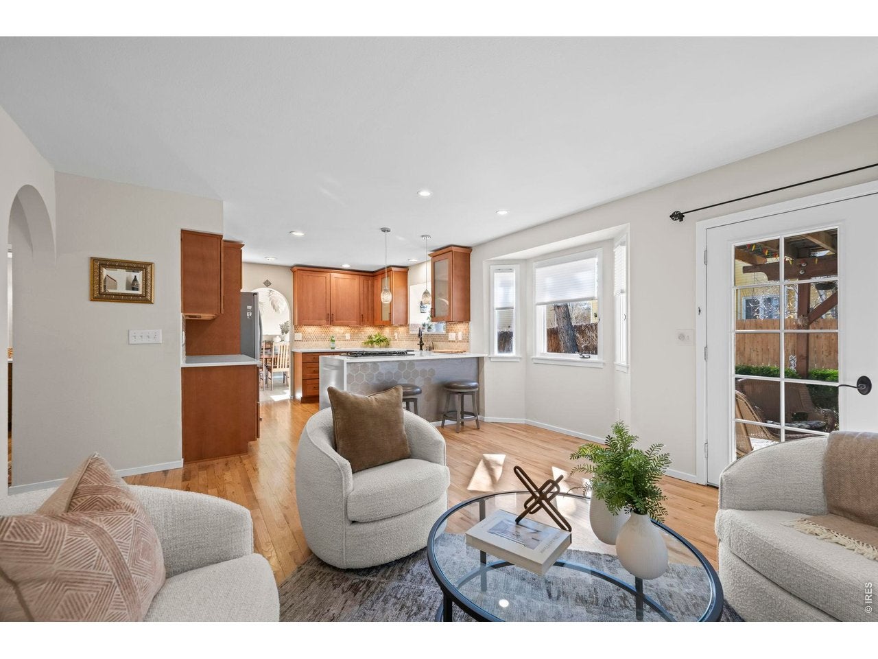 Set back on a peaceful North Boulder street in one of Boulders most desirable neighborhoods, this move-in ready home offers exceptional value in an unbeatable location-just moments from Luckys Cafe & Market, popular restaurants, cafes, Wonderland Lake, and miles of scenic trails. A welcoming covered front porch invites you into a thoughtfully updated interior featuring beautiful modern finishes and flexible living options. The remodeled kitchen is a true showpiece, appointed with custom cabinetry, quartz countertops with a dramatic waterfall edge & designer backsplash. Vaulted ceilings and elevated windows fill the main living area with abundant natural light, highlighting extensive wood flooring, an updated powder bath, seamless flow between the living and dining spaces, and cozy fireplaces. French doors open to a private, fenced backyard retreat complete with mature landscaping, a charming pergola, and flagstone patio-perfect for relaxing or entertaining. Upstairs, youll find 3 bedrooms, a nicely updated full bath, and primary suite designed as a comfortable escape with an updated en-suite bath, a separate soaking tub and shower, plus a walk-in closet. The lower level features a private exterior entrance and incredible versatility, including a 4th bedroom, full bath, rec/bonus room, flexible office or 5th bedroom, full second kitchen, and 2nd washer/dryer. This well appointed space is ideal for teenagers, home theatre, work from home space, extended family, guests, multi-generational living, or excellent income-producing potential.