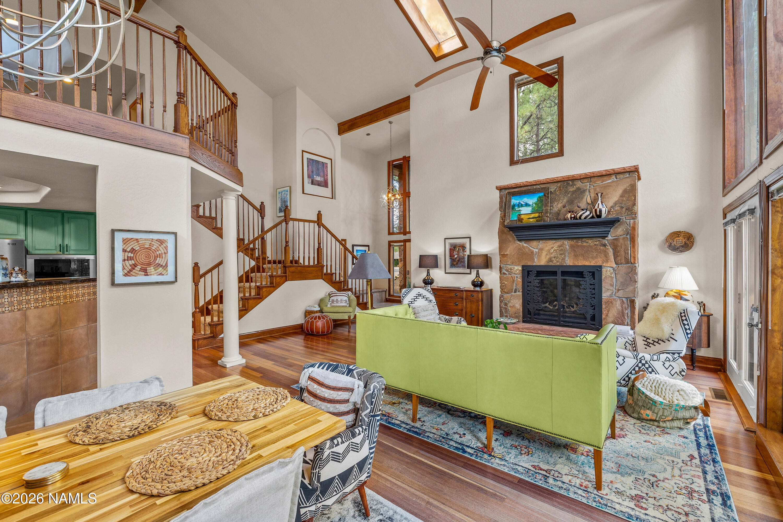 Positioned on the 12th tee box of Continental Country Club, this cul-de-sac home offers golf course living on a rare .43-acre lot with NO HOA. Backing the course and framed by Peak views, the setting is exceptional. The great room features large windows, thoughtfully placed skylights, and a gas fireplace, filling the home with natural light and warmth.