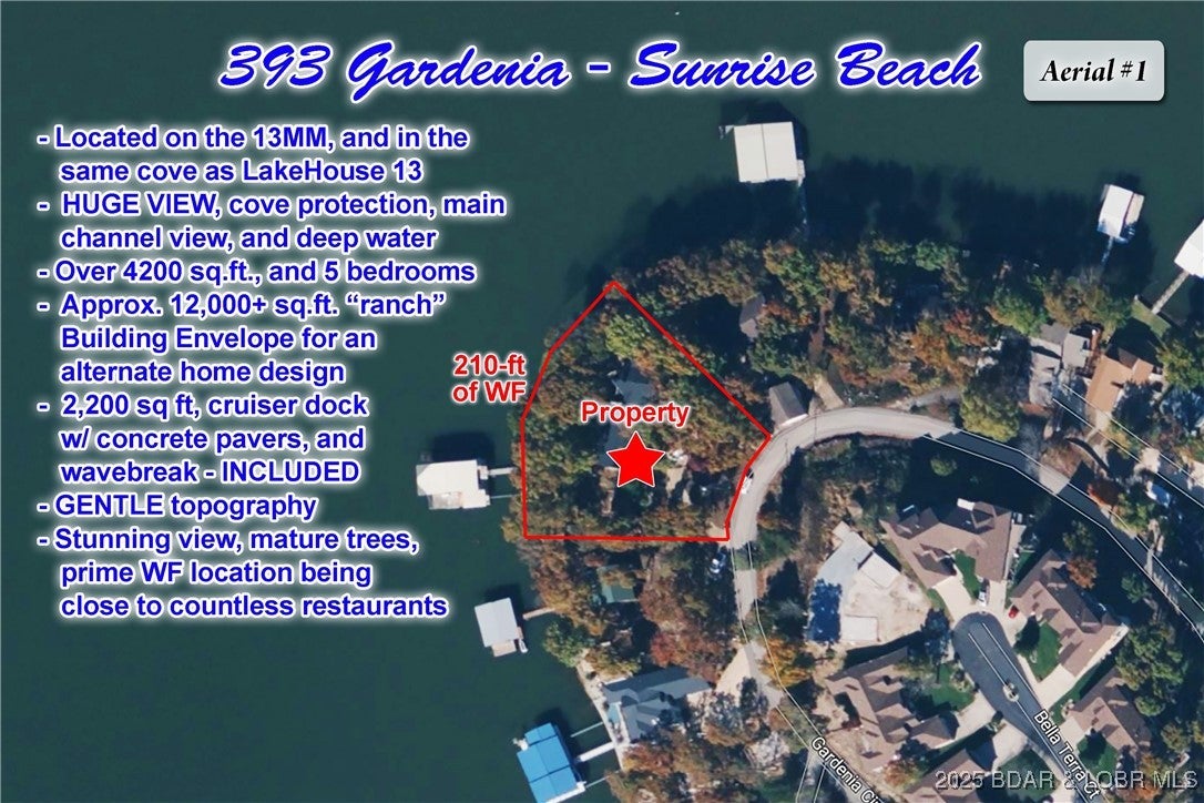 PERFECT VACATION RENTAL - sleeps up to 20 people. And theres a stellar view of the Four Season Fireworks Shows. Endless opportunities for Pool Designs. 2,200 sq.ft. Cruiser Dock with concrete pavers, AND wavebreak, are INCLUDED. Heres the home everyone has been waiting for... it checks off all of the boxes. Directly across from Grand Pointe Island and Porto Cima, you will have a front row seat to all of the Lakes boating activity. HUGE panoramic view overlooking the 13MM, irreplaceable gentle topography, and 210-ft of premium waterfrontage (cove protection, main channel view, and deep water). Located in the same cove as Lake House13 and close to countless waterfront restaurants, and Lake amenities. Over 4200 sq.t. and 5 bedrooms (6thbedroom possible). Approx. 12,000 sq.ft. ranch Building Envelope for an alternate home design. Endless dock options. No HOA or subdivision restrictions. This home is currently Under Construction. PERFECT WF LOT to build 1 or 2 new construction homes.