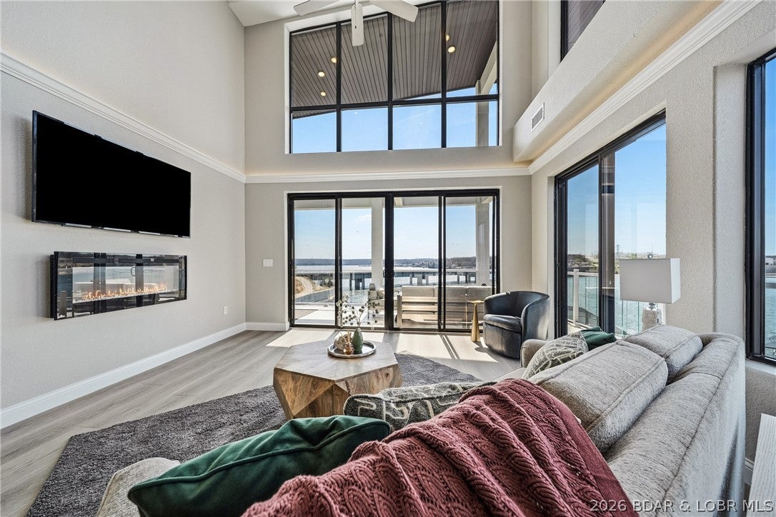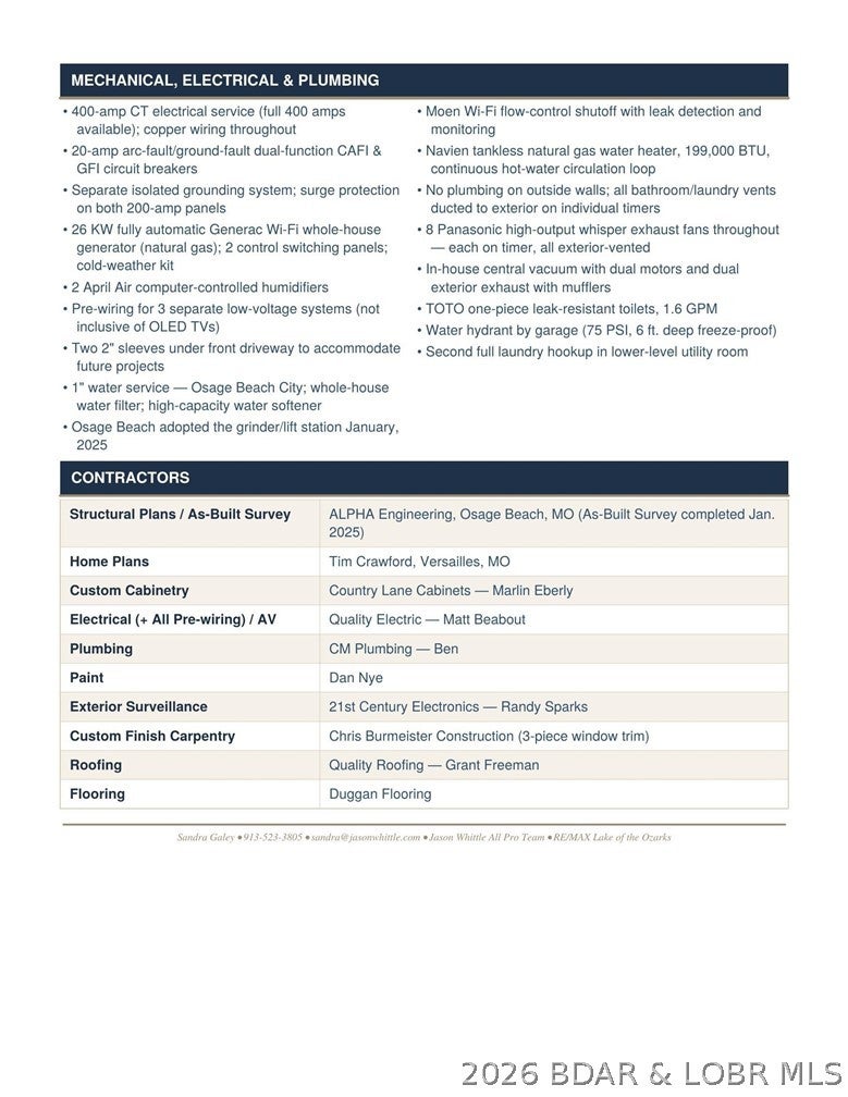 Where LAKE LIVING meets LASTING LUXURY. Sweeping panoramic views of MM19 frame this stunning 2025 new-construction masterpiece 6,600 SF, 4BR/4.5BA, with 3,300 SF of stair-free main-level living. Built to a standard the market hasnt seen, every detail is by design: Marvin doors and windows throughout, custom Bevolo lighting, true 400-amp electrical service, 26KW whole-house generator, R-38 spray foam insulation, a 4030 heated and cooled garage with 16-ft ceilings, and a CertainTeed 50-year wind-rated roof. The Sub-Zero/Wolf/Cove kitchen with 510 Cambria quartz island, 62,000 BTU gas fireplace, and lakeside wrap deck were crafted for effortless entertaining and this is just a taste. Enjoy the view and lake access without the hassle: no flood insurance, no dock maintenance, two marinas within walking distance, and a 1-year boat slip lease included. Ideally situated near the hospital, dining, and all Osage Beach amenities, with city water, sewer, and natural gas. A comprehensive features list is attached, but no document can prepare you for the experience of walking through this home. The description will tempt you the home will convince you.