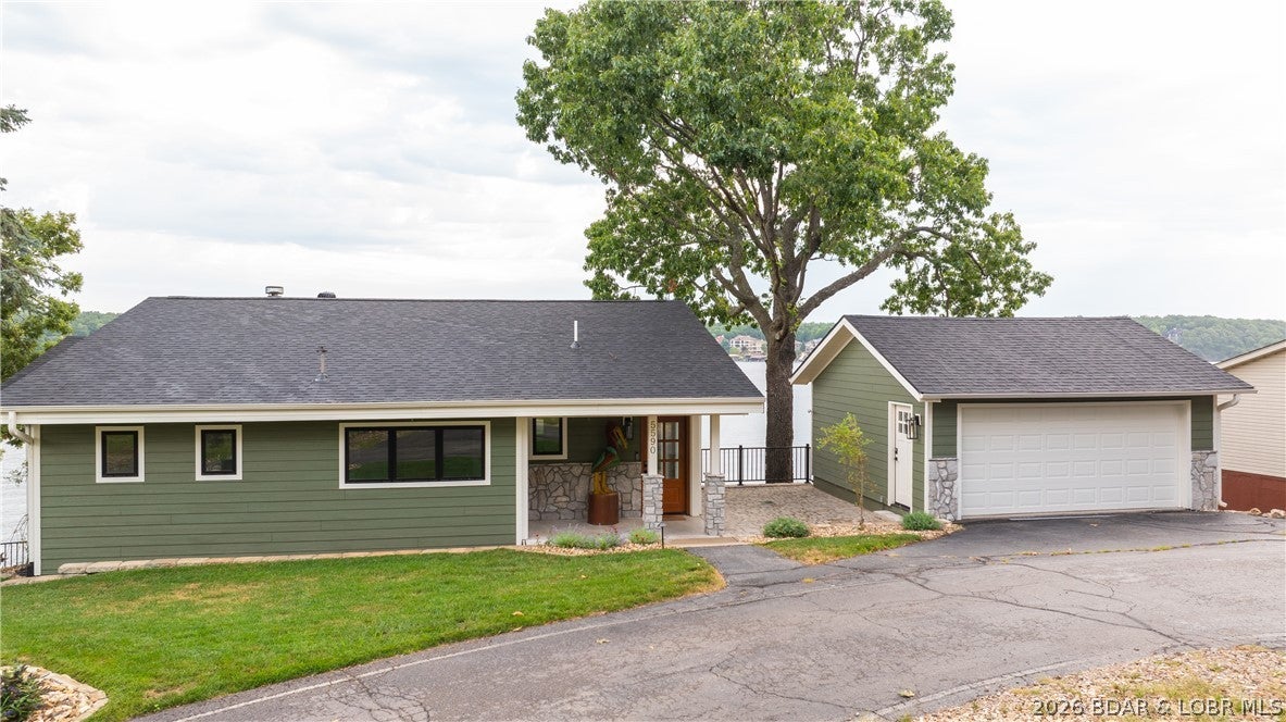 Discover your dream lake lifestyle in this beautiful, recently remodeled 1800 sqft home, perfectly situated in the center of Osage Beach city limits for ultimate convenience. Boasting breathtaking waterfront views and a 2 well private dock, this property offers the ideal blend of tranquility and accessibility. Step inside to find a light-filled, open-concept living space, recently updated with modern finishes and thoughtful design. This 3 bedroom, 3 bath residence provides ample space for comfortable living. The new renovation with some updated windows gives a clean and fresh look. New septic in 2022 and lift installed in 2023. A level U-shaped driveway with a freshly poured 44 x 24 concrete pad allows for extra parking or the opportunity to build a garage and extra storage. Imagine spending your days boating, fishing, or simply relaxing on your private dock, all within minutes of restaurants & shopping. Walking distance to local favorite restaurant and full service bar, The Hatch, as well as Miller's Landing marina located at the entrance to the cove. This lakefront at the highly desired 28mm with 75 feet of lakefront is a definite catch.