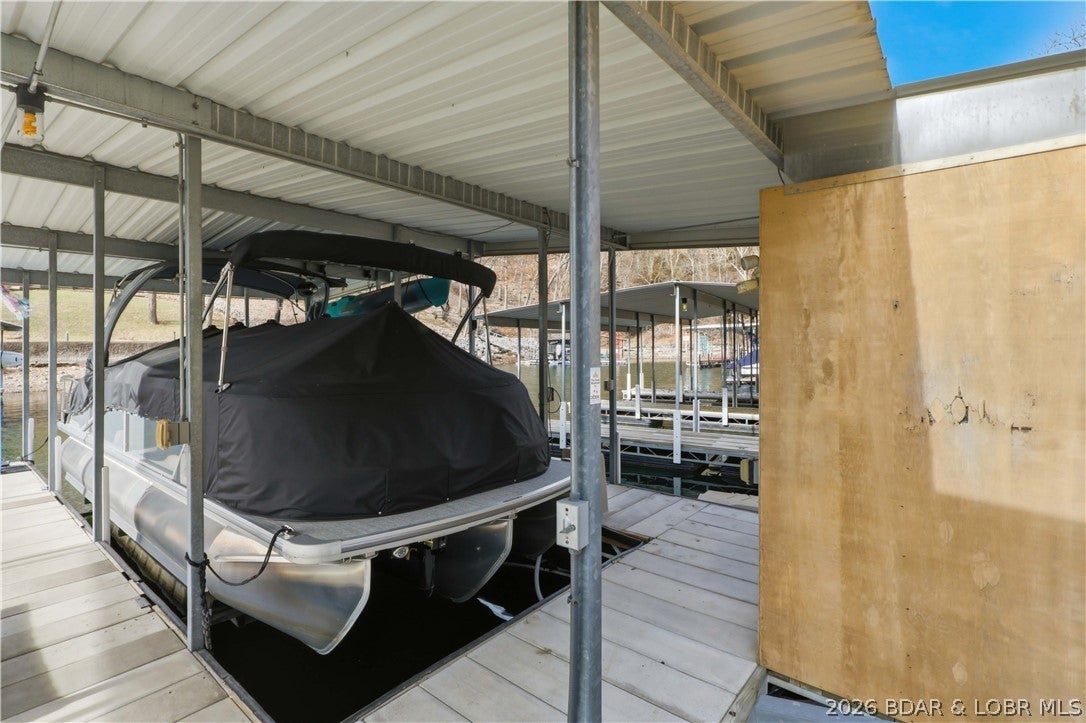 Discover your chance to own a piece of Luxury Waterfront here at Lake of the Ozarks. 51 Damsel, a premier waterfront home with breathtaking 180-degree views of the main channel. 4 generously sized bedrooms, 4 full bathrooms, and 1 guest powder room. The main level welcomes you with open-concept living, gourmet kitchen, top-tier appliances, laundry room, & luxurious master suite. Descend down to the ultimate entertainment retreat, with lakeside-facing bar, pool table, shuffleboard, cozy fireplace, and versatile sitting & gaming area. 2 bedrooms share a stylish Jack & Jill bath, while a 3rd private suite offers seclusion. The lower-level 3rd bay garage presents endless possibilities, easily convertible into a home gym or a 5th bedroom. Private dock:12x40 slip, PWC spaces, & 12x26 filled-in slip, complemented by a wave break to ensure calm waters. Enjoy access from the upper-level garage via kart path to the lakeside level. Revel in unobstructed awe-inspiring views & vibrant sunsets. This home was designed for those who seek the finest in Lakefront living, schedule your private showing of the Damsel Estate today.