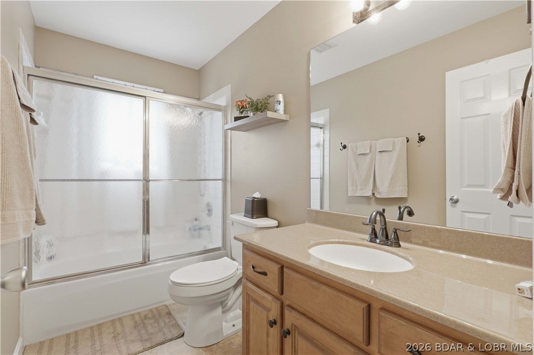 Here is your opportunity to live in one of the most coveted luxury subdivisions at the lake with all of the conveniences of a waterfront home! This second tier 5 bedroom home has fabulous 6 mile view of the main channel from almost every room. The main level offers open concept living, dining and kitchen including wood floors, vaulted ceilings and easy access to screened porch and maintenance free deck. The lakeside master suite is perfect with a walk-in closet, jacuzzi tub, and shower. Two additional bedrooms and bath on the main floor offer versatility. Lower level provides a huge family room-perfect for game or tv night with easy access to a open deck with fabulous views. Two additional large bedrooms are perfect private space for guests with bath in between. The pool is just a short walk from the home and the 12x32 boat slip is just a short golf cart ride away in the protected cove. Beacon Pointe features pool, clubhouse, playground and 2 community docks with golf cart access. Conveniently located at the 2 mile mark by water and minutes from Bagnell Dam, you are close to shopping, restaurants, and several lakefront attractions. Don't miss this rare opportunity!