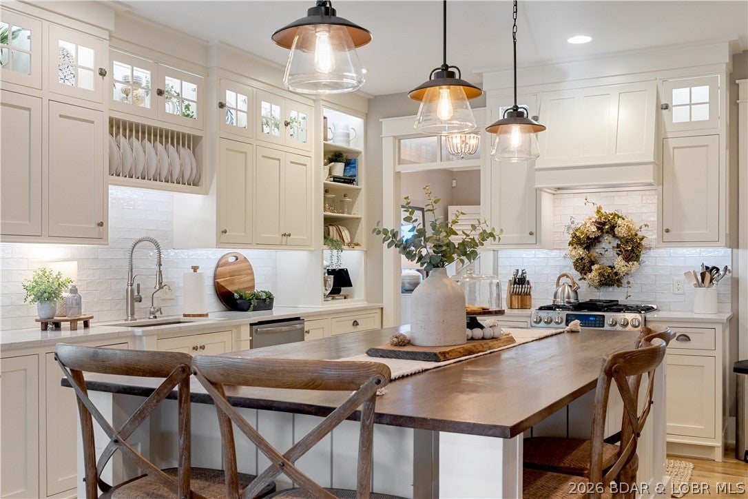 Remarkable turn-key lake home that truly checks every box! Recently updated with thoughtful design and luxury finishes, this home impresses with vaulted ceilings, walls of windows, and stunning lake views. The inviting hearth room flows into a gourmet kitchen featuring high-end appliances, extensive custom cabinetry, and a spacious dining area centered around a beautiful stone fireplace.