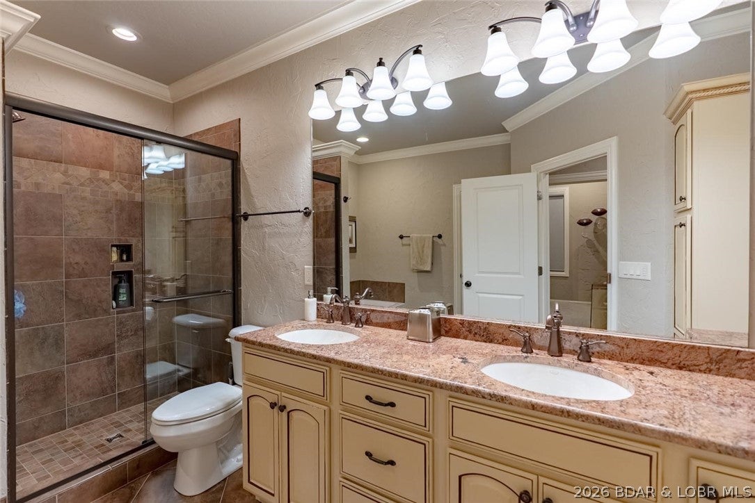 Resort-style luxury in coveted Osage National! This fully remodeled 5,400 sq ft two-lot estate offers exceptional privacy on a quiet cul-de-sac with its own private entrance. Designed for comfort and entertaining, the home features warm woodwork, hardwood floors, & quality finishes throughout. The kitchen includes a gas range, double oven, glass-front cabinetry, breakfast nook, & cozy hearth room. Enjoy main-level living with 3 living areas, an upstairs guest suite, mudroom with built-ins, screened porch, & large open deck. A flat driveway, fenced yard, & 3-car garage add rare convenience. Take your golf cart to enjoy the heated/chilled zero-entry community pool, championship golf, and Eagle View Bar & Grill. Osage National is known for its welcoming atmosphere with neighborhood gatherings and community nights. Additional highlights include 3 HVAC systems, 2 gas fireplaces, high-speed Charter Business internet, new cabinets, new tile, fresh exterior paint, two crawl spaces, and a NEW ROOF July 2025. Marinas are just 6 minutes away for easy boat access. Experience the perfect blend of luxury, privacy, and resort-style living in one of Lake of the Ozarks most desirable communities.