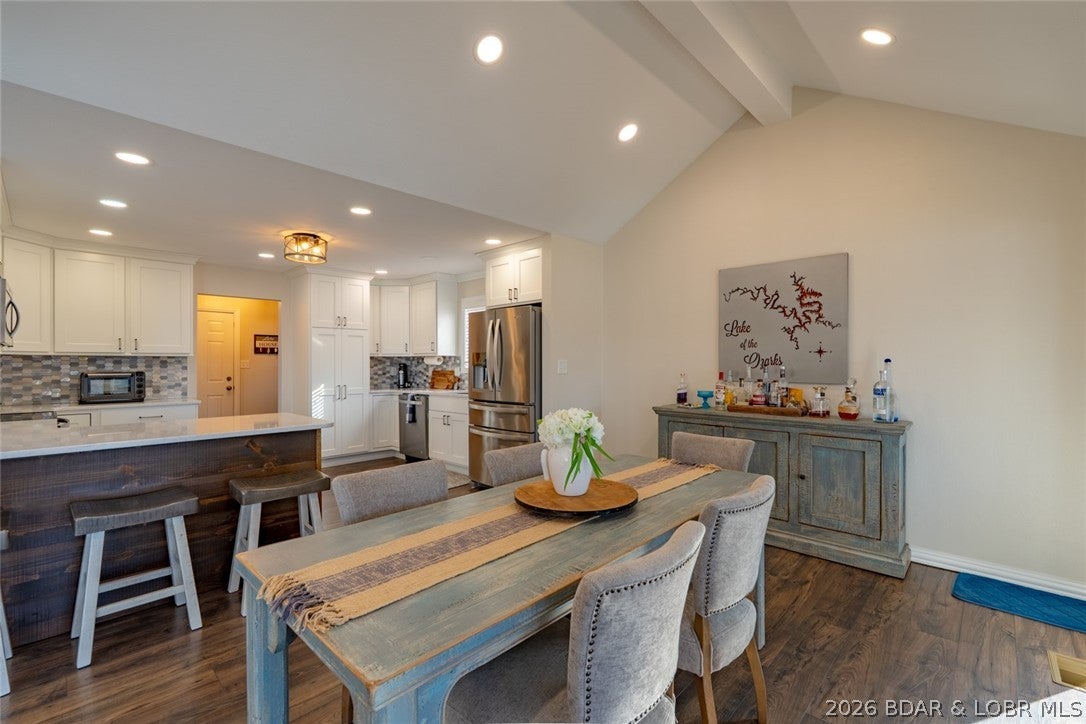 Welcome to 108 Myers Court in Lake Ozark, MOan updated lakefront home at the 2 MM of Lake of the Ozarks offering the perfect blend of lifestyle, location, and investment potential. Set in a protected cove with fantastic views, deep water, and desirable eastern exposure, this 4 bedroom, 4.5 bath home also features a standout dock with a dock kitchen, making entertaining easy and lake days unforgettable. Inside, vaulted ceilings and recent updates create a fresh, inviting feel, including a NEW kitchen, new appliances, fresh paint, new main-level flooring, and an updated primary bath. Designed for gathering and relaxing, the home offers screened decks and open decks to take in the view, plus a lower-level deck with a hot tub and see-through fireplace for the ultimate lakefront experience. Whether youre searching for a full-time residence, second home, or income-producing property, this home checks all the boxes. Vacation rentals are allowed, adding even more value for buyers looking for a Lake of the Ozarks waterfront home with strong appeal in one of the areas most sought-after locations.