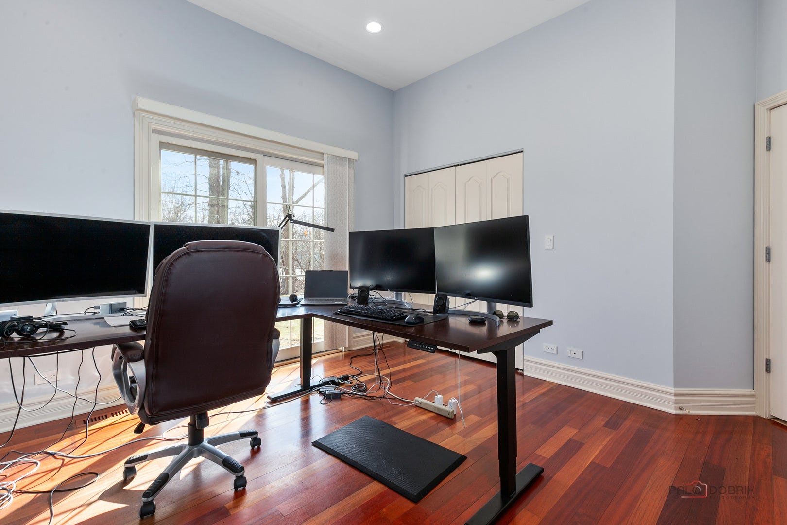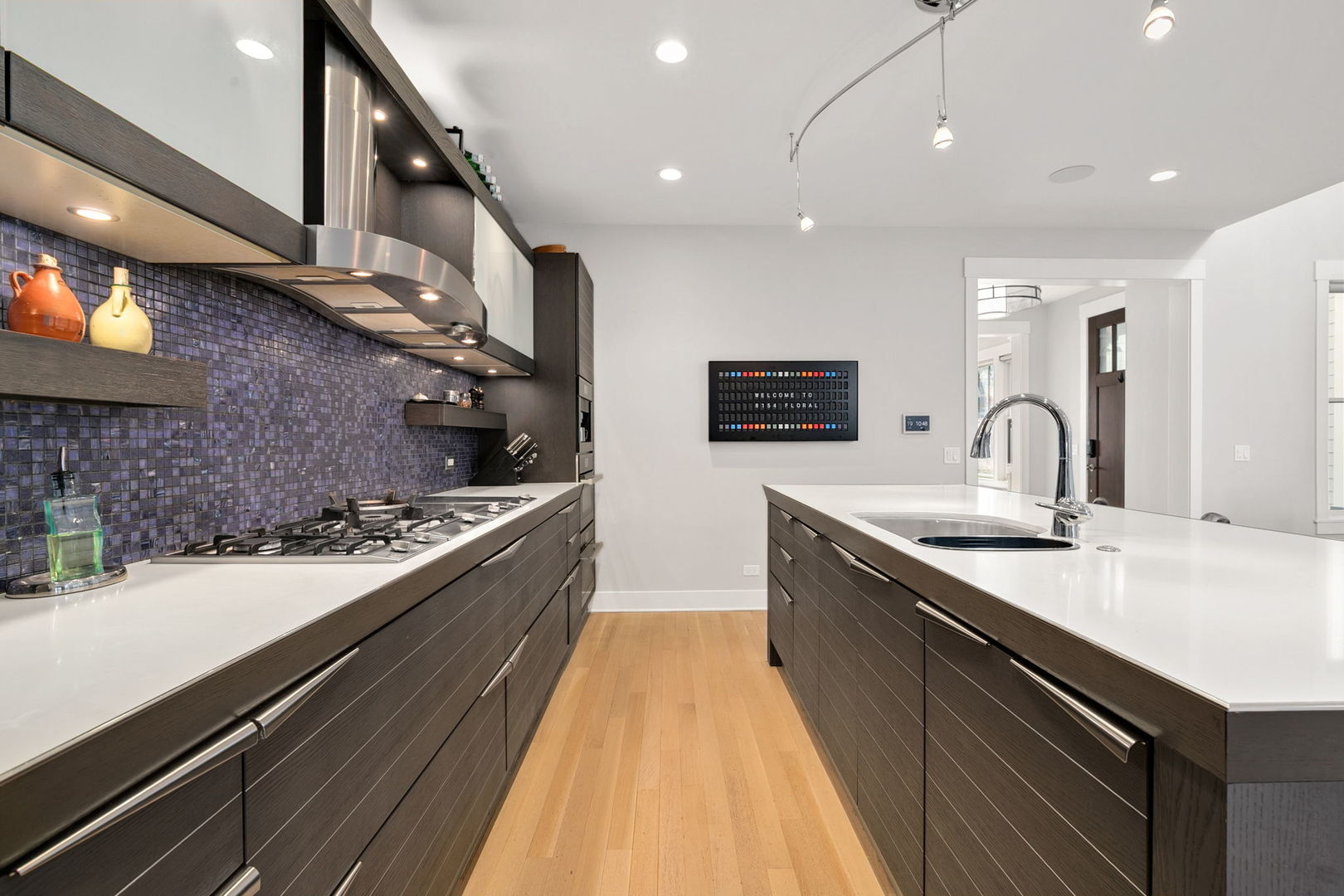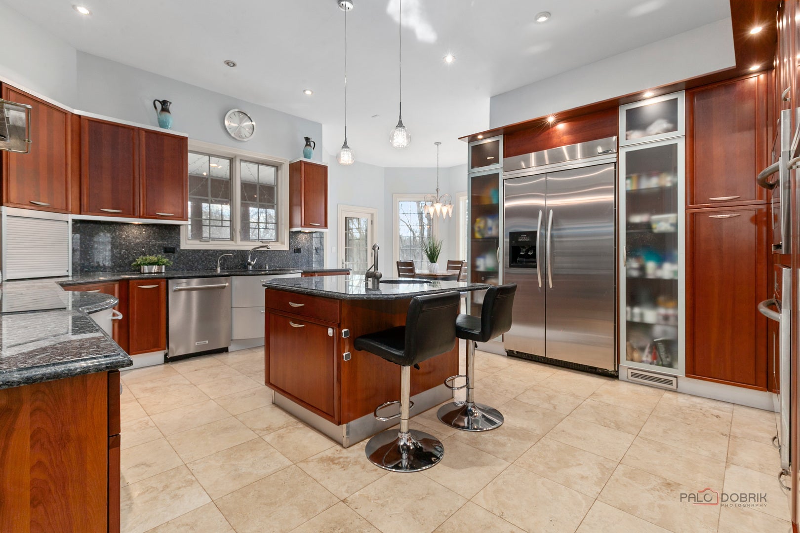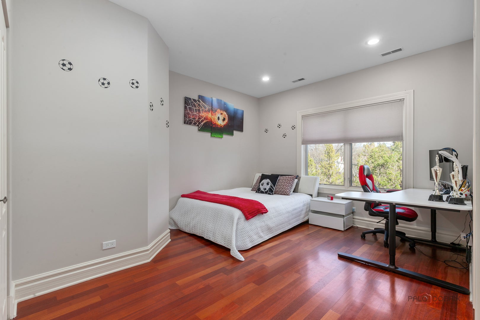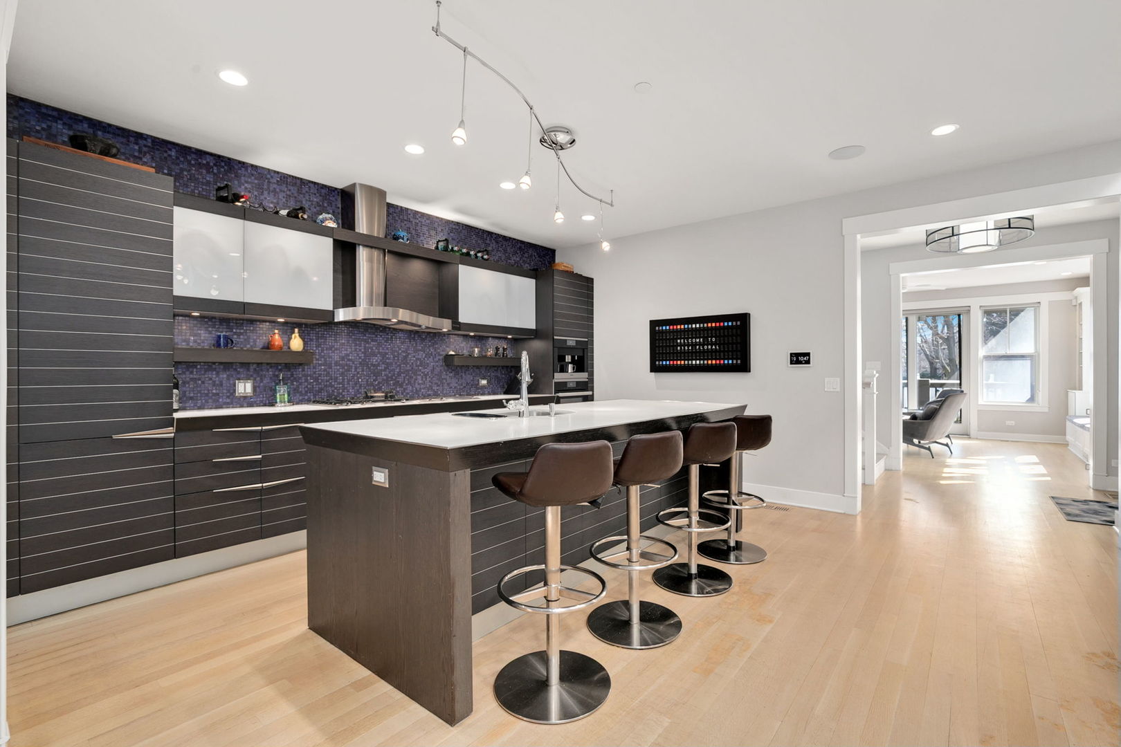 RARE FIND in the highly sought-after Floral Ave Subdivision! Built in 2015 and located in the heart of Downtown Skokie, this stunning 3-story, 3,300 SQFT custom home offers 4 bedrooms and 4.1 baths, combining luxury, functionality, and cutting-edge design. From the moment you enter, youre welcomed by rift sawn white oak hardwood floors spanning all three levels and a thoughtfully designed open layout perfect for both entertaining and everyday living. The sun-drenched living room features a custom brick gas fireplace, built-in shelving, and sliding glass doors leading to a charming front patio-filling the home with natural light from expansive windows, skylights, and sun tube. The main level is designed for both entertaining and relaxation, featuring two separate gathering spaces. In addition to the formal living area, enjoy a spacious family room equipped with a built-in surround sound system, quartz countertops, dual Perlick beverage refrigerators, and a separate ice maker-perfect for hosting. A dedicated recreation room on the main level elevates the home even further, complete with a Full Swing Golf Pro 2.0 simulator paired with a home theater setup, custom Snaidero bar with lighting, and panoramic doors to the backyard creating the ultimate entertainment experience. The chefs kitchen is truly one-of-a-kind, showcasing top-of-the-line Miele appliances including a custom stove with 15 Teppanyaki burner, 15 gas wok burner, and 12 in-counter fryer, along with a steam oven, convection oven, speed oven, and built-in coffee system. The space is further enhanced with a built-in Liebherr refrigerator, quartz countertops, a large island, Bizazza mosaic tile backsplash, and custom Italian Snaidero cabinetry (dark oak, aluminum, and white glass) with integrated lighting and hood - this kitchen is designed to impress. Enjoy seamless indoor-outdoor living with full panoramic slide-pivot-stack aluminum patio doors (with built-in screens) that completely open to a beautifully finished bluestone paver backyard featuring a built-in putting green and basketball hoop-perfect for recreation and entertaining. The home is equipped with a Control4 home automation system with TV/audio control and in-ceiling speakers throughout the house, delivering a true luxury living experience. The lower level features 9-foot ceilings, grey tile flooring, exercise area with tatami mats, built-in water dispenser, a private wine cellar, living space and full bathroom-adding both functionality and luxury. The second level offers a thoughtfully designed layout including a dedicated office space with a built-in bench, perfect for working from home or a quiet study area. The luxurious primary suite includes his and hers closets, sitting area, and a spa-like bath featuring a steam shower with rainfall, deep soaking tub, and towel warmer. Step out onto your private custom deck complete with an open and covered pergola with skylights, cedar privacy screening, outdoor TV and speaker system, Brazilian rotisserie grill, wet bar with Perlick outdoor fridge and ice maker, quartz countertops, bar-style dining area, and overhead gas heaters-your own personal retreat. Additional bedrooms include en-suite baths and walk-in closets, while the third-floor landing offers built-in seating and storage. Third-floor bedrooms feature built-in desks, making them ideal for work or study. Garage Features: * Custom-built 2-car garage with epoxy flooring * Full-size party door opening to backyard * Separate HVAC system * Separate electrical panel * Electric vehicle charger * Additional tandem parking capability Additional Premium Features: * Tankless water heater & water pressure booster * Whole-home fire sprinkler system * Independent HVAC systems This meticulously designed home offers an unmatched blend of luxury, innovation, and comfort in one of Skokies most desirable locations. A truly rare opportunity-schedule your private showing today!