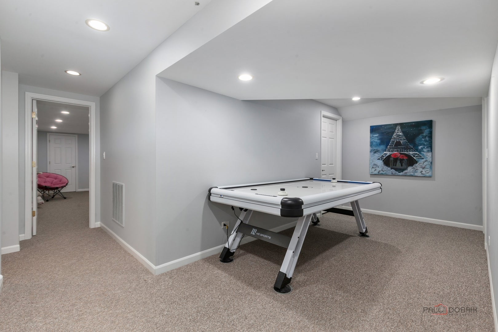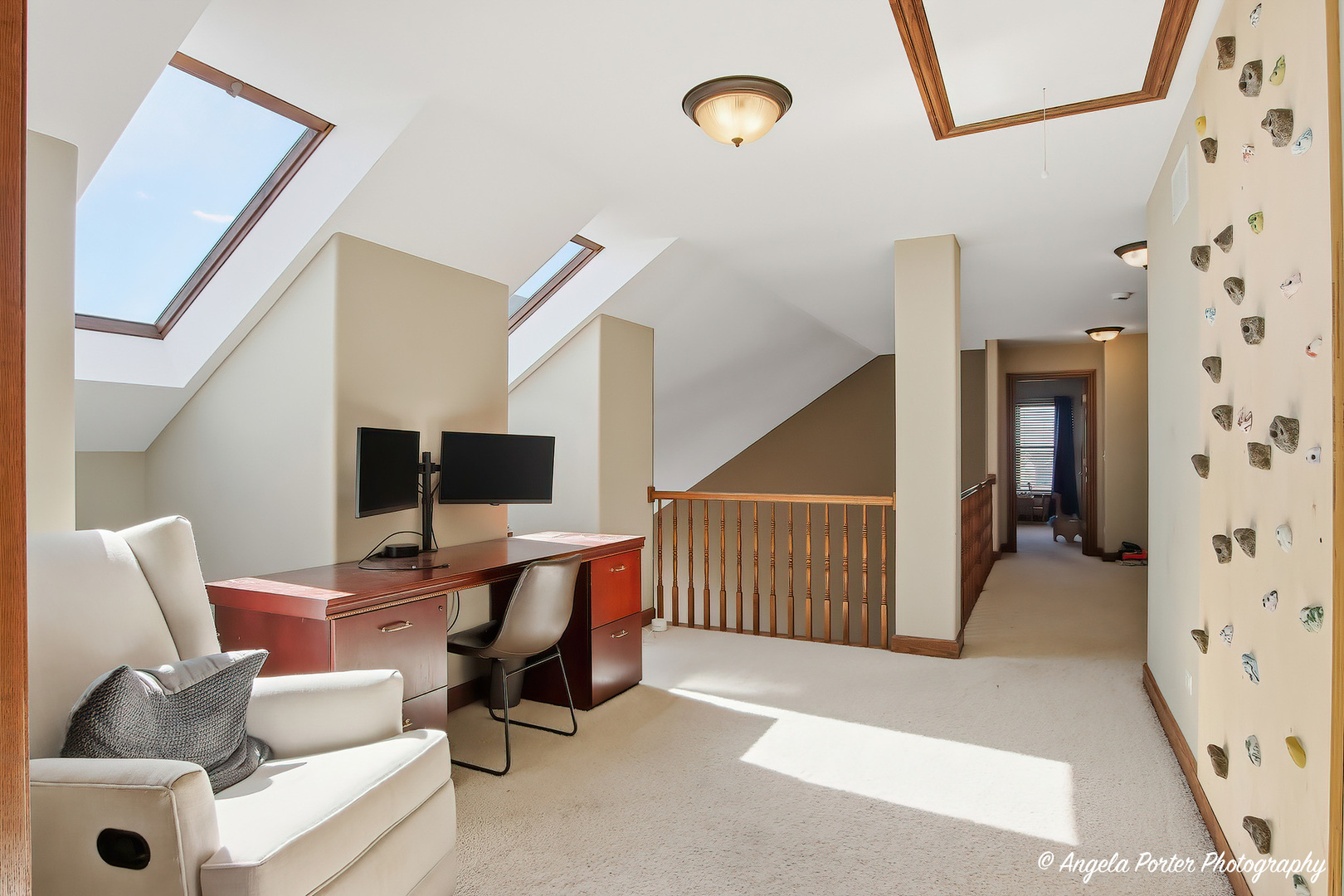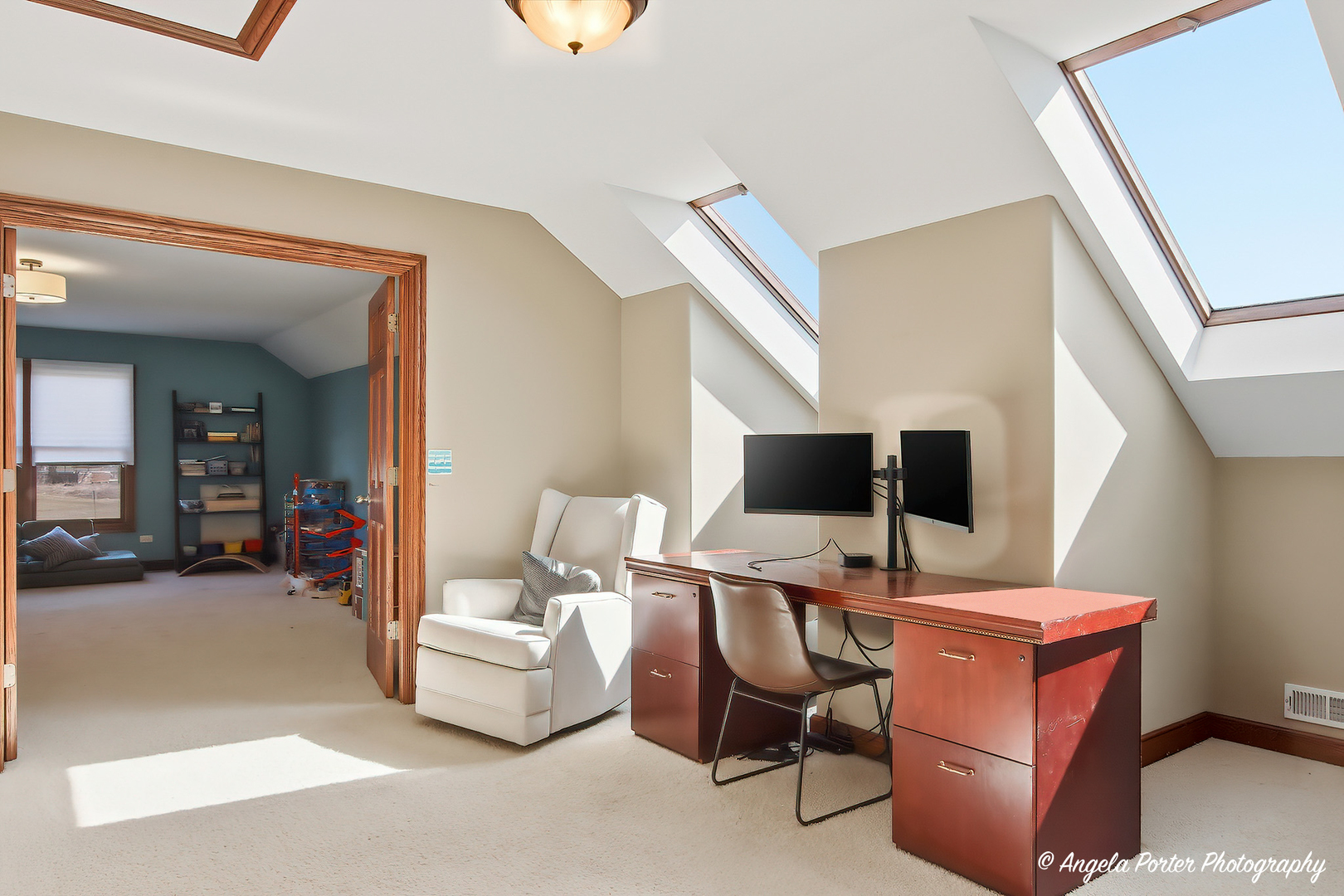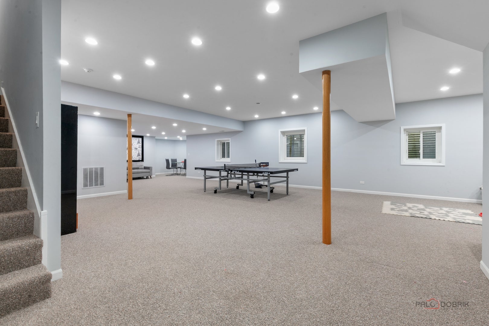 Welcome to 300 S Rose Avenue, where timeless design meets an exceptional Park Ridge location. Ideally situated between Washington Elementary, Lincoln Middle, and Maine South High School, this home keeps you close to everything. Centennial Park is just around the corner and a quick drive brings you to all the dining, shopping, and community events in Uptown. The elegant brick and stone exterior instantly impresses, enhanced by professional landscaping, outdoor lighting, and a charming side patio. Inside, a grand two-story foyer sets the tone and opens to a private home office overlooking the front yard. The living and dining room offers seamless entertaining with a fireplace and direct access to the outdoor patio. The chefs kitchen features a two-tier island, stainless steel appliances, and a built-in butlers pantry, all open to a cozy family room with a second fireplace where everyone can gather. Another private patio connects the home to the detached two-car garage just steps away. A convenient mudroom, first-floor laundry, and powder room complete this level. Upstairs, the expansive primary suite offers a luxurious retreat with a double-vanity bath, separate shower, soaking tub, and a skylight that fills the space with natural light. Three additional spacious bedrooms share a full bath with a double vanity. The finished lower level offers space for a recreation room, playroom, or gym, plus a full bathroom and ample storage, ideal for extended family or guests. Set in a sought-after Park Ridge neighborhood, this home pairs year-round curb appeal with comfort, convenience, and the space to enjoy for years to come.