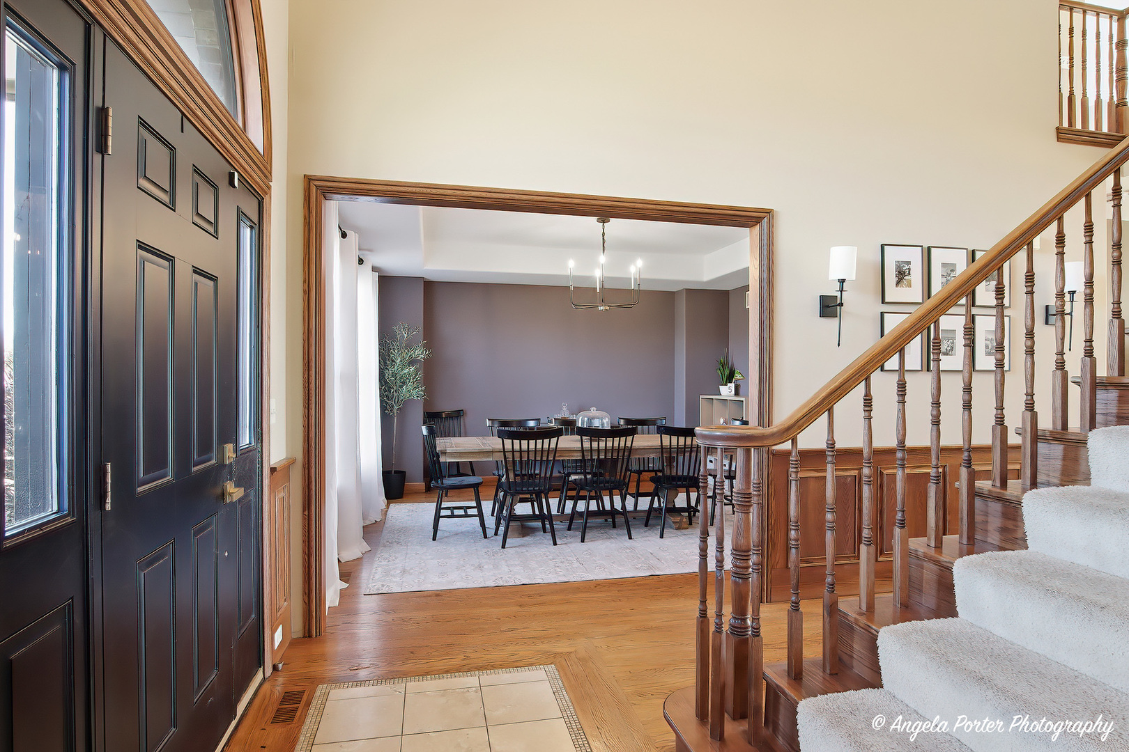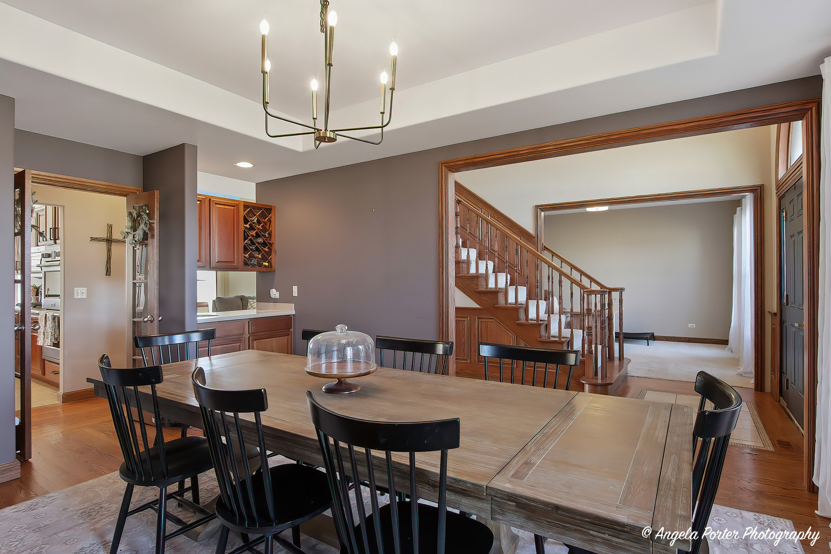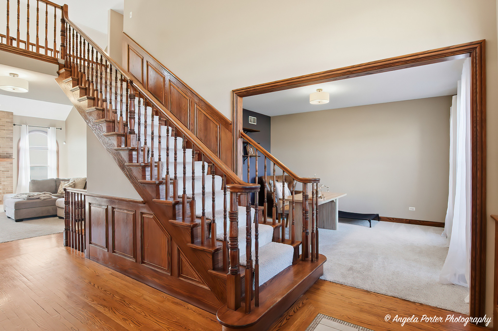 Welcome to this exceptional 61 bedroom, 6-bathroom corner-lot residence in prestigious Lincolnshire, proudly served by award-winning Adlai E. Stevenson High School and Laura B. Sprague School. A dramatic two-story foyer with a grand chandelier ceiling and elegant wrought-iron staircase creates a breathtaking first impression, complemented by full marble flooring throughout the main level.
