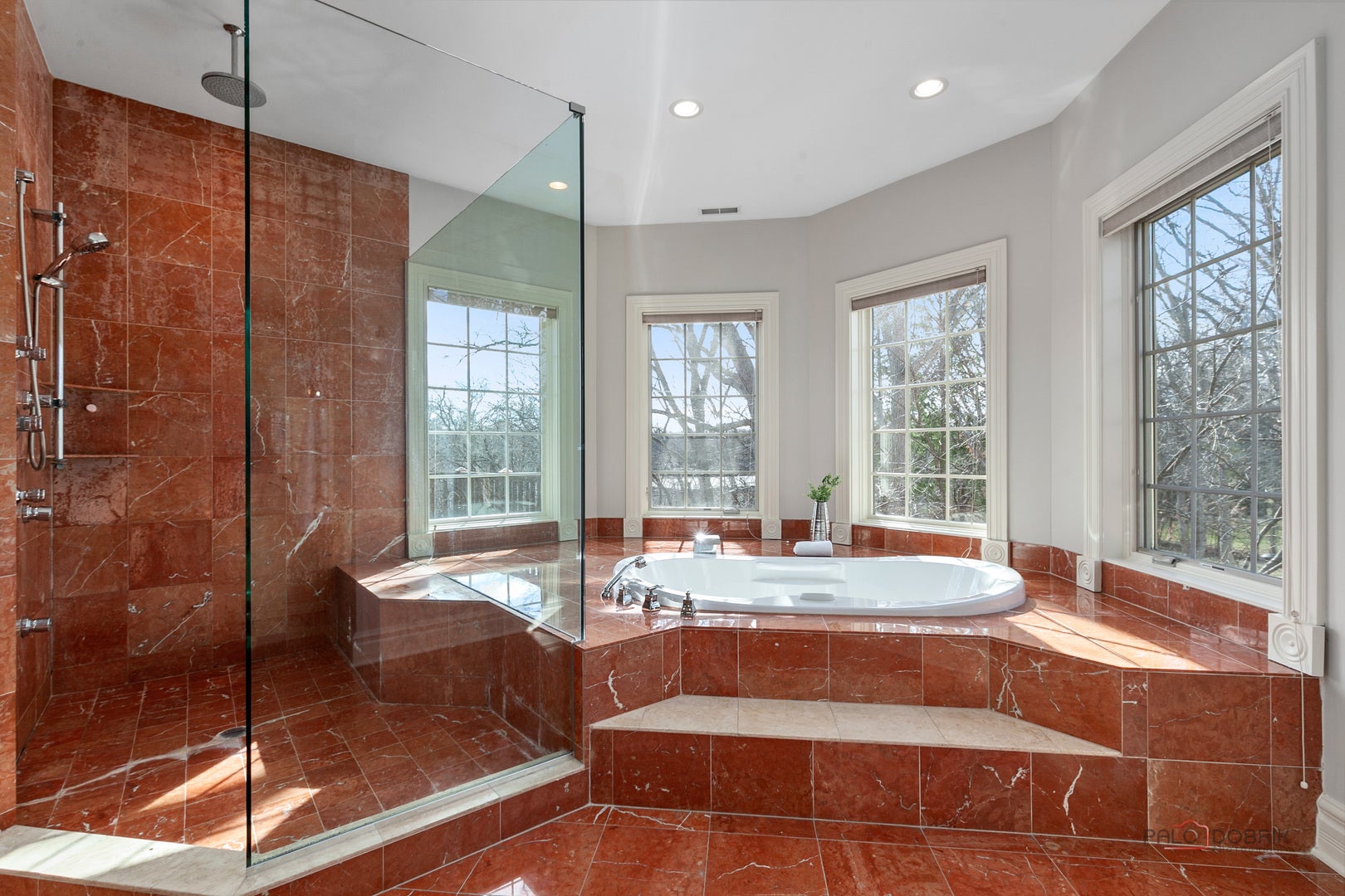 Welcome to this exceptional 61 bedroom, 6-bathroom corner-lot residence in prestigious Lincolnshire, proudly served by award-winning Adlai E. Stevenson High School and Laura B. Sprague School. A dramatic two-story foyer with a grand chandelier ceiling and elegant wrought-iron staircase creates a breathtaking first impression, complemented by full marble flooring throughout the main level. The thoughtfully designed layout offers both sophistication and comfort. To the right, the expansive great room seamlessly combines the living and dining areas-perfect for everyday living and effortless entertaining. The beautifully appointed kitchen features stainless steel appliances, granite countertops and backsplash, a spacious island with breakfast bar, and abundant cabinetry. The adjoining eating area opens directly to the screened-in porch, creating a seamless indoor-outdoor living experience. The impressive two-story family room showcases a stunning marble fireplace and additional access to the screened porch, framed by elegant white columns that enhance the architectural charm. A main-level bedroom with sliding glass doors to the backyard and a full bath provides flexibility for guests, in-laws, or a private home office. Upstairs, retreat to the luxurious primary suite offering three walk-in closets, a vaulted ceiling, and a spa-inspired ensuite with dual vanities, whirlpool tub, separate shower, and a private balcony with serene views. The second and fifth bedrooms each feature private en-suite baths, while the third and fourth bedrooms share a convenient Jack-and-Jill bathroom. A second-floor laundry room adds everyday convenience. The fully finished basement expands your living space with a seventh bedroom, full bath, and a large recreational area ready for endless possibilities-media room, fitness space, playroom, or more. This remarkable home blends elegance, space, and functionality in one of the areas most desirable communities-an exceptional opportunity to make your dream home a reality.