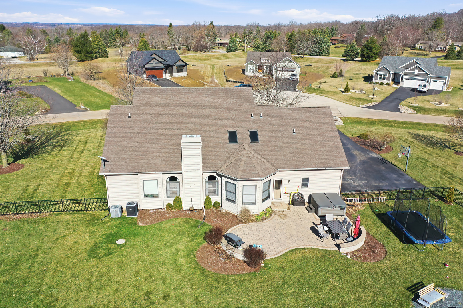 Set far back from the road and approached by a scenic winding driveway, this beautifully remodeled home sits on 10 breathtaking acres offering privacy, space, and sweeping countryside views. Completely renovated, the home blends modern upgrades with timeless country charm with the potential of over 3,700 square feet of living space. Step inside to find rich hickory hardwood flooring throughout the main level and an expansive open-concept kitchen designed for both everyday living and entertaining. The kitchen features granite countertops, a large custom island, country-style farmhouse sink, gourmet Bertazzoni range with hood, and new refrigerator. Oversized doors, custom wood framing, crown molding, and detailed trim work add warmth and craftsmanship throughout the first floor. The first-floor primary suite is a true retreat with vaulted ceilings, a spacious sitting room or office overlooking the backyard, and private access to a secluded deck. The fully updated primary bath and massive 12'x8' walk-in closet complete the suite. A second full bathroom near the rear entrance includes a large walk-in shower-perfect for cleaning up after time outdoors. Upstairs offers two additional bedrooms, an updated full bathroom, and a flexible loft space ideal for an office, reading nook, or play area. Major improvements provide peace of mind, including new windows, composite siding, roof, dual-zone HVAC, updated plumbing, and a beautiful stone fireplace. Outdoor living is just as impressive with a large brick paver patio featuring a sitting wall, a brick paver walkway, and concrete parking and RV pads. The property also includes a 26' x 33' pole barn, currently used as storage for off-road vehicles and equipment. The rear three acres were previously used as a horse riding area, offering plenty of potential for hobby farming (zoned A-5), recreation, or animals. Enjoy peaceful mornings or sunset views from the spacious covered front porch. The unfinished basement provides additional storage or future finishing possibilities for a 4th bedroom or more entertainment space. A rare opportunity to own a move-in ready country estate with modern updates, functional outbuildings, and room to roam-all while enjoying the beauty and tranquility of Spring Grove.