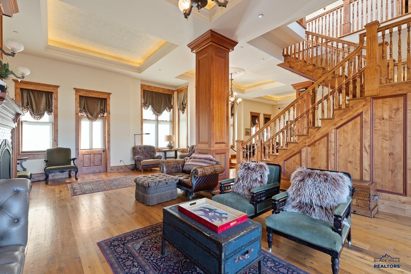 Listed by Amanda Carlin 605-440-7587 and Phil Lampert 605-391-9358. Experience the timeless awe of a true Jorgenson Log Home. Set on 19.45 /- acres of pristine, wooded beauty, this exceptional property blends luxury craftsmanship with the serenity of the Black Hills-while being only a short, scenic 15-minute walk to downtown. 4-bedroom, 3.5-bath masterpiece showcases extraordinary detail throughout. From the soaring loft with panoramic forest views, to the custom-designed fireplace that anchors the great room, every feature has been thoughtfully curated for comfort and style. The fully finished lower level offers an additional private living space-ideal for guests, multigenerational living, or a premium rental opportunity. The homes spacious layout lends itself beautifully to hosting holidays, celebrations, and gatherings of all sizes. Outside, the peaceful forest setting gives you the feeling of complete retreat, yet with the convenience of being moments from town. And for the hobbyist or creative, the heated bonus space attached to the two-car garage provides the perfect place to work, design, or unwind. This remarkable property offers the rare combination of luxury, privacy, proximity, and authentic craftsmanship-a home where every day feels like a getaway. All information has been obtained from sources deemed reliable but is not guaranteed or warranted by Lampert Properties & Amanda Carlin, Phil Lampert or seller. Buyer and buyers agent to verify all info.