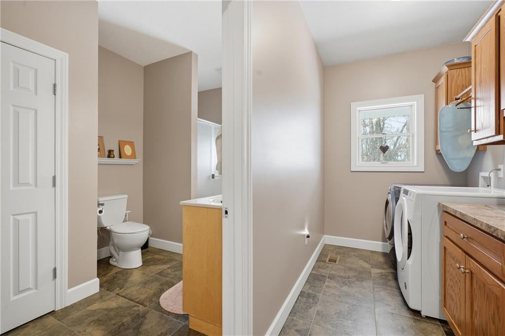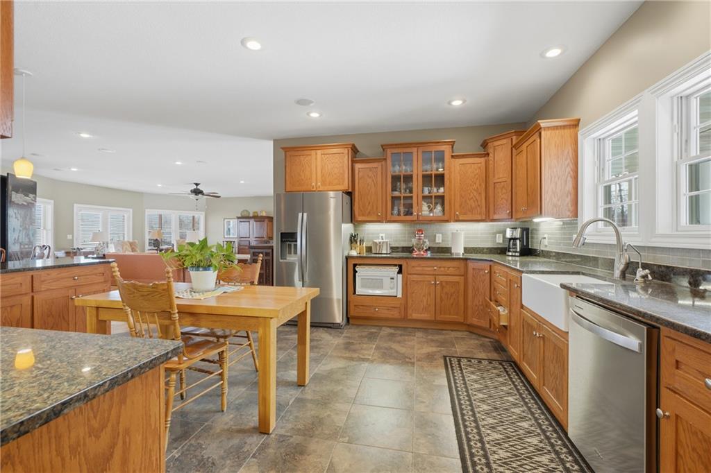 Welcome to your serene retreat! This charming four-bedroom ranch home withwalkout basement is nestled on a sprawling 64-acre property, offering a perfect blendof comfort and nature. The spacious layout features an open concept living area,ideal for family gatherings and entertaining, while large windows throughout thehome flood the space with natural light. The oversized kitchen boasts hard surfacecountertops, marble tile flooring, large pantry, custom cabinets, perfect for thecooking enthusiasts. The master bedroom features a see-through fireplace and masterbath has a whirlpool tub, double vanity, walk in shower and closet! The lower levelincludes a convenient kitchenette, large family room perfect for entertaining orcreating a cozy retreat. A three-car garage provides ample space for vehicles andstorage. The property is a true haven for animal lovers, tons of deer, turkey, andwildlife galore. This property also features a watering system (solar powered pumpand 5 Kobett waterers) perfect for your livestock, along with fenced pastures ideal forgrazing. A picturesque, stocked pond with dock adds to the charm, perfect for fishingor enjoying tranquil moments by the water. The land is adorned with warm-seasongrasses, enhancing the natural beauty, and providing excellent grazing. This home hasa brand-new roof and gutters. The property also has a 20 x 30 concrete foundationand pad with available electric as well as two water hookups to build a detachedgarage, shop, barn or second home. With no neighbors nearby, youll enjoy completeprivacy in this peaceful rural setting. Whether you seek a family home, a hobby farm,or a weekend getaway, this property is a must-see!