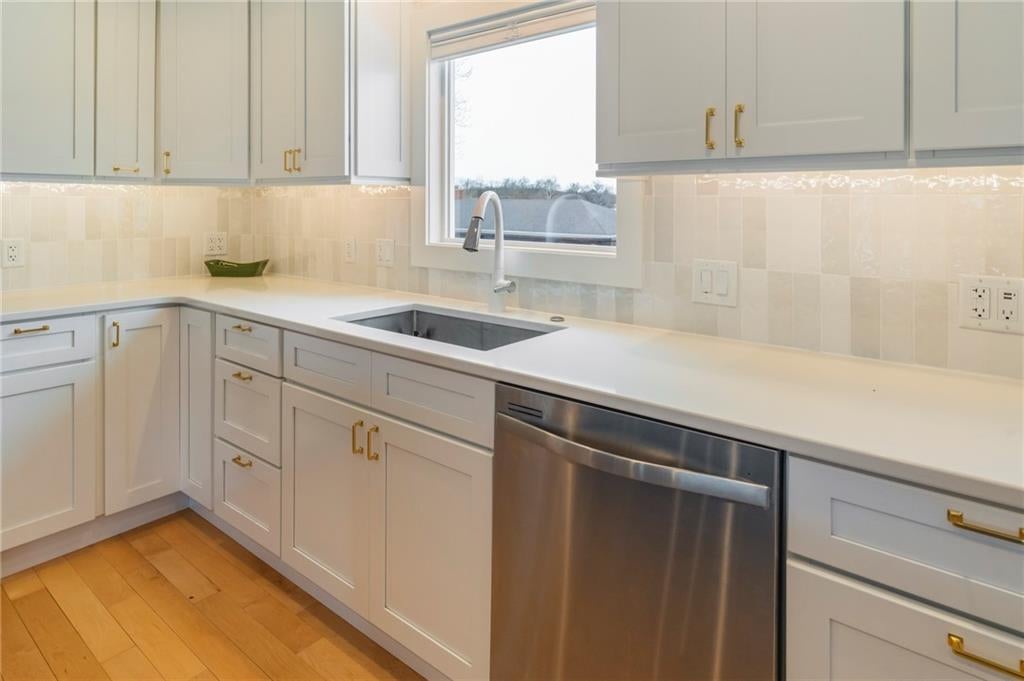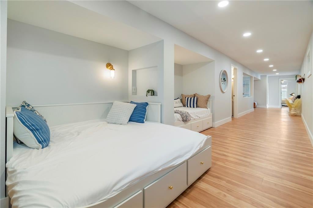 Modern, fun, and Turn-Key, this lakefront retreat is ready for you to enjoy! This beautifully remodeled 5-bedroom waterfront home is designed for ultimate summer living, complete with a dock and pavilion perfect for soaking up the sun. Move-in ready and thoughtfully designed for comfort and convenience, the home features two kitchens, two laundry areas (one on each level), and five spacious bedrooms. Step outside and enjoy the spacious deck, beautiful sidewalk down to a concrete patio right at the waters edge, creating the perfect setting for relaxing or entertaining. Inside, youll love the bright, refreshing finishes that truly bring lake life to life. The main level showcases a soothing color palette, hardwood floors, and updates throughout, including new HVAC, plumbing, electrical, siding, and windows, this home has been remodeled down to the studs. The kitchen features stunning quartz countertops, stainless steel appliances including a dishwasher, and a stylish wet bar. The lower level is just as impressive, offering a second kitchen with dishwasher, eat-in dining area, 2 bedrooms, and two twin-to-king trundle daybeds. Additional highlights include built-in cubbies, banquette seating, and beautifully tiled bathrooms. Conveniently located near the main entrance and just moments from the clubhouse, salt water pool, marina, and beach, youll love having summer fun right at your fingertipsincluding food trucks within easy reach. Lake life is calling, dont miss your chance to make it yours! The yard is in the process of being seeded and reworked due to newly installed lawn irrigation and recent improvements.