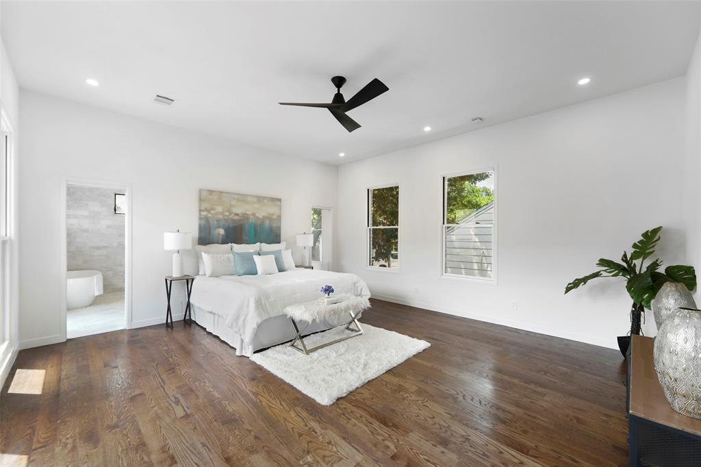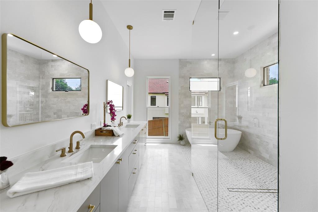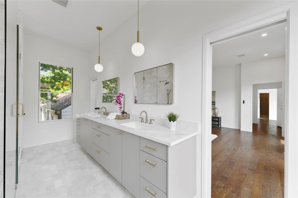 Built in 2021, this luxury four bedroom, four full bath home, offers a transitional design with designer finishes and exceptional functionality. Curb appeal includes mature landscaping, cobblestone accents, and a welcoming entry. The open concept main living area features a chefs kitchen with ceiling height cabinetry, oversized waterfall island, Sub Zero and Wolf appliances, double dishwashers, walk in pantry, butlers pantry, and dedicated planning nook. Large sliding glass doors open to a covered patio and expansive backyard, pre plumbed for a pool. The first floor includes a private guest suite with full bath, a glass enclosed study, formal dining room, mudroom, and abundant storage. Upstairs, the primary suite features a spa style bath with marble floors and countertops, soaking tub, glass enclosed shower, and a large walk in closet with direct access to the laundry room. Two additional ensuite bedrooms with walk in closets, a game room with wet bar and built ins, and flexible bonus space complete the second level. Additional highlights include white oak hardwood floors, Schumacher wallpaper, Kohler plumbing fixtures, Visual Comfort lighting, Marvin windows, epoxy coated garage flooring, built in California Closet storage, and electric vehicle charging capability. Located in the highly desirable Bird Streets of Preston Hollow, within walking distance to Inwood Village and Lovers Lane shopping and dining. Buyers to confirm measurements and schools. Please use Republic Title. Buyer will need to purchase new survey.