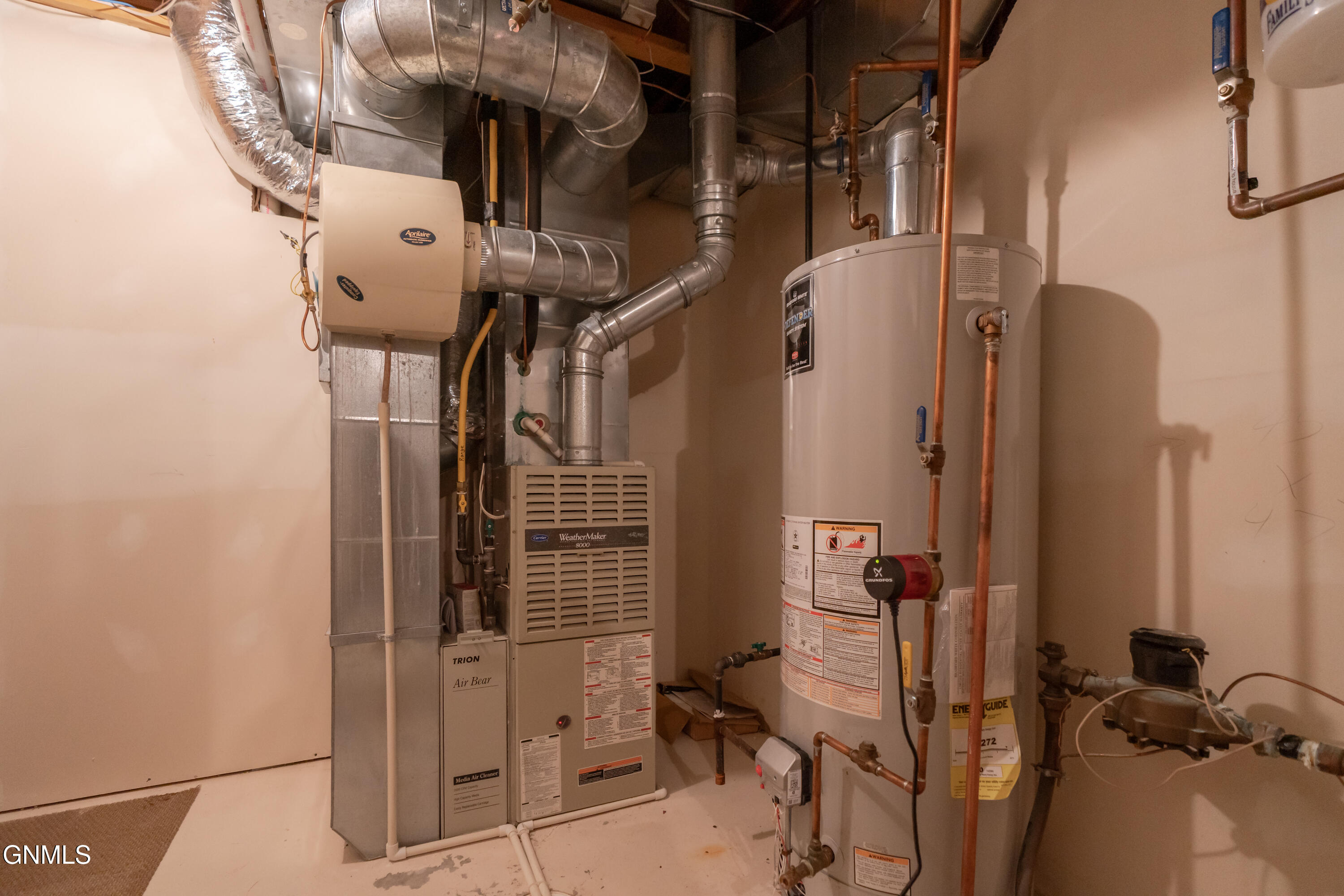 Patio home with no steps, located in north Bismarck. This maintenance free townhome community is for residents 55 & older. The homeowners association takes care of snow removal & lawn maintenance. The kitchen features include white cabinets, stone countertops, tile backsplash, under cabinet lighting, pantry, & a large island with seating & dark contrasting wood cabinets. The kitchen, dining, & living room have an open floor plan with vaulted ceiling & recessed lighting. The primary bedroom has a walk-in closet, large private bathroom with step-in shower, vanity with stone counter tops & dual sinks. There are 2 additional bedrooms, full bathroom, & a large dedicated laundry room with washer & dryer. A convenient mud room is located next to the garage with a built-in bench. The impressive 3-stall heated garage has an epoxy floor, storm/storage room, utility room, & hot/cold water with garage sink. The yard has underground sprinklers, rock landscaping, & a patio with privacy fence. Great opportunity to own this one-level home with modern high-end finishes.