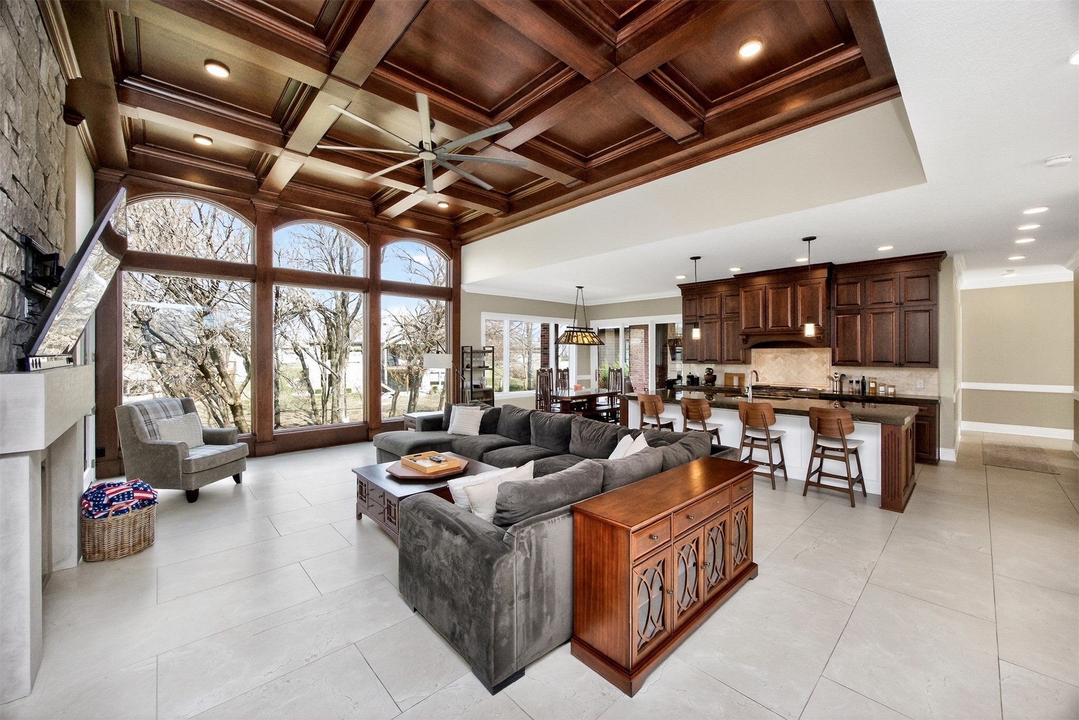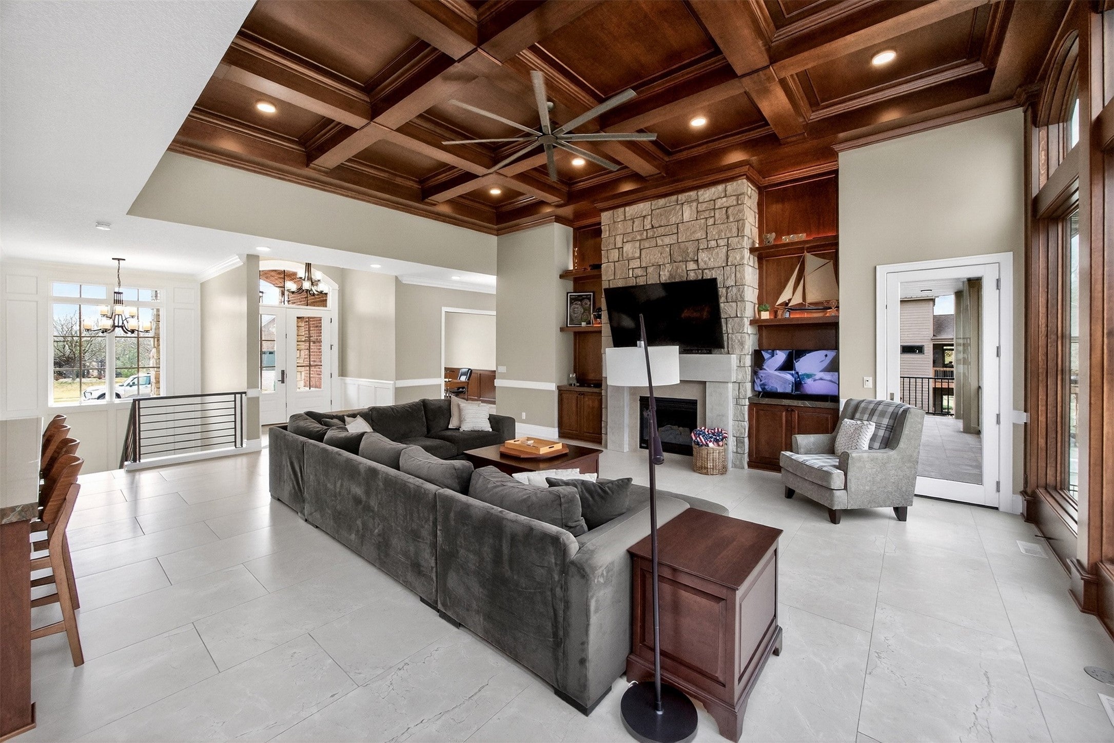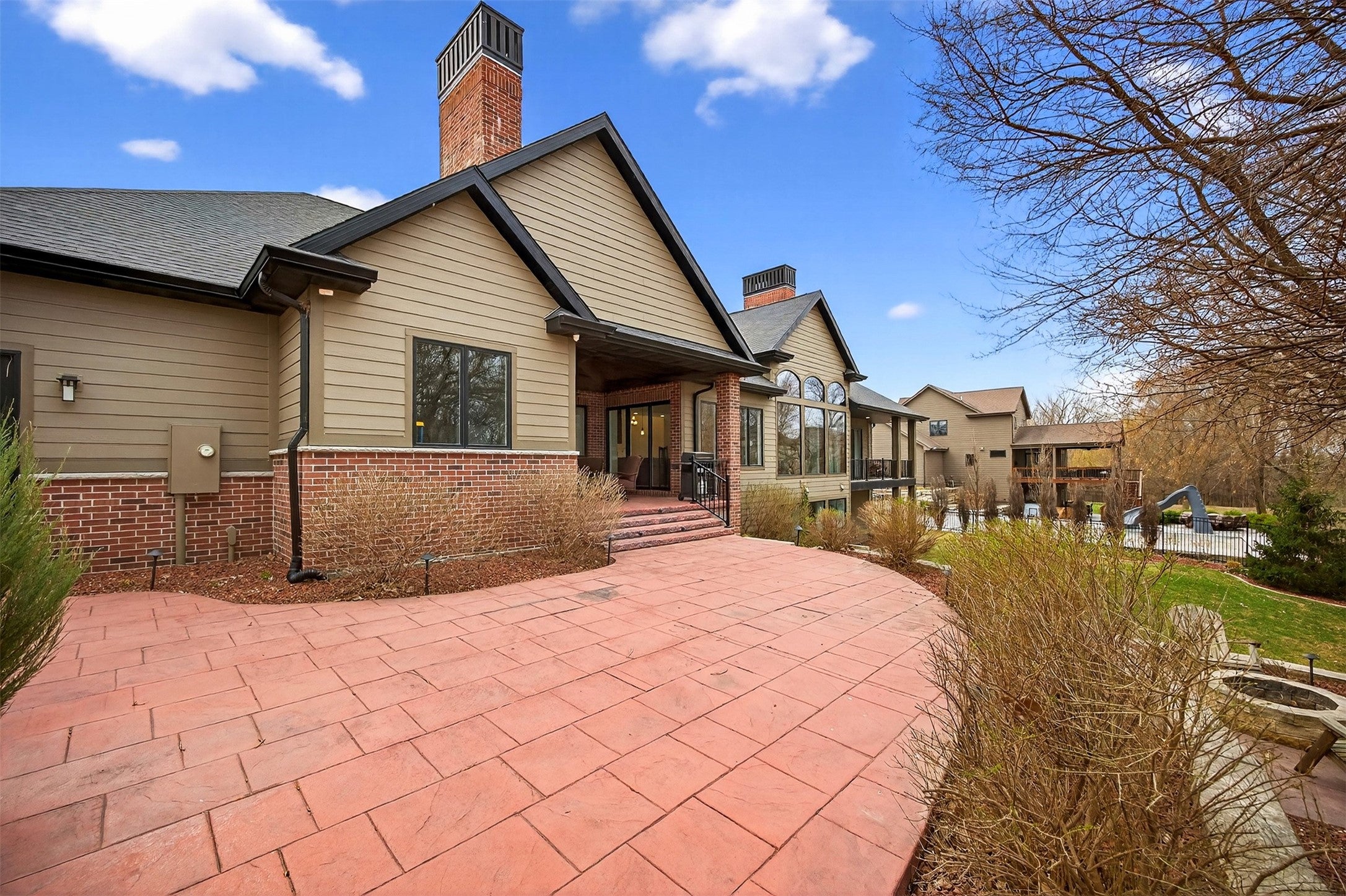 Stunning custom builders ranch set on 1.5 lots backing to creek & mature trees. Designed for entertaining, the outdoor living space features wood-burning stone fireplace with gas line, firepit, multi-level stamped patio, & prof landscaping & plenty of space for a future pool. Step inside through a striking brick barrel ceiling into expansive great rm showcasing a full cherry wood ceiling, walls of windows, a dramatic stone fireplace, & custom built-ins. The inviting kitchen is equally impressive with abundant cabinetry, marble backsplash, stainless-steel appliances including range & wall oven, a working pantry, & generous dining space. Owners suite is a private retreat with double tray ceiling, heated floors, private deck, a large marble shower, & custom closet with built-in laundry. The main level also includes a private office with beam ceiling & pocket doors, a guest suite with private bath, & addl half bath. Walkout is built for gathering & relaxing with a spacious family rm, rec area, theater, wet bar, three addl bedrms, two & half baths, & laundry rm. Car enthusiasts & hobbyists will appreciate a heated 3 car garage featuring drains, hot & cold water, & wainscoting, plus an addl two-car garage. A truly exceptional property filled with distinctive architectural details & thoughtful design. Ready to enjoy & make your own. All information obtained from seller and public records.