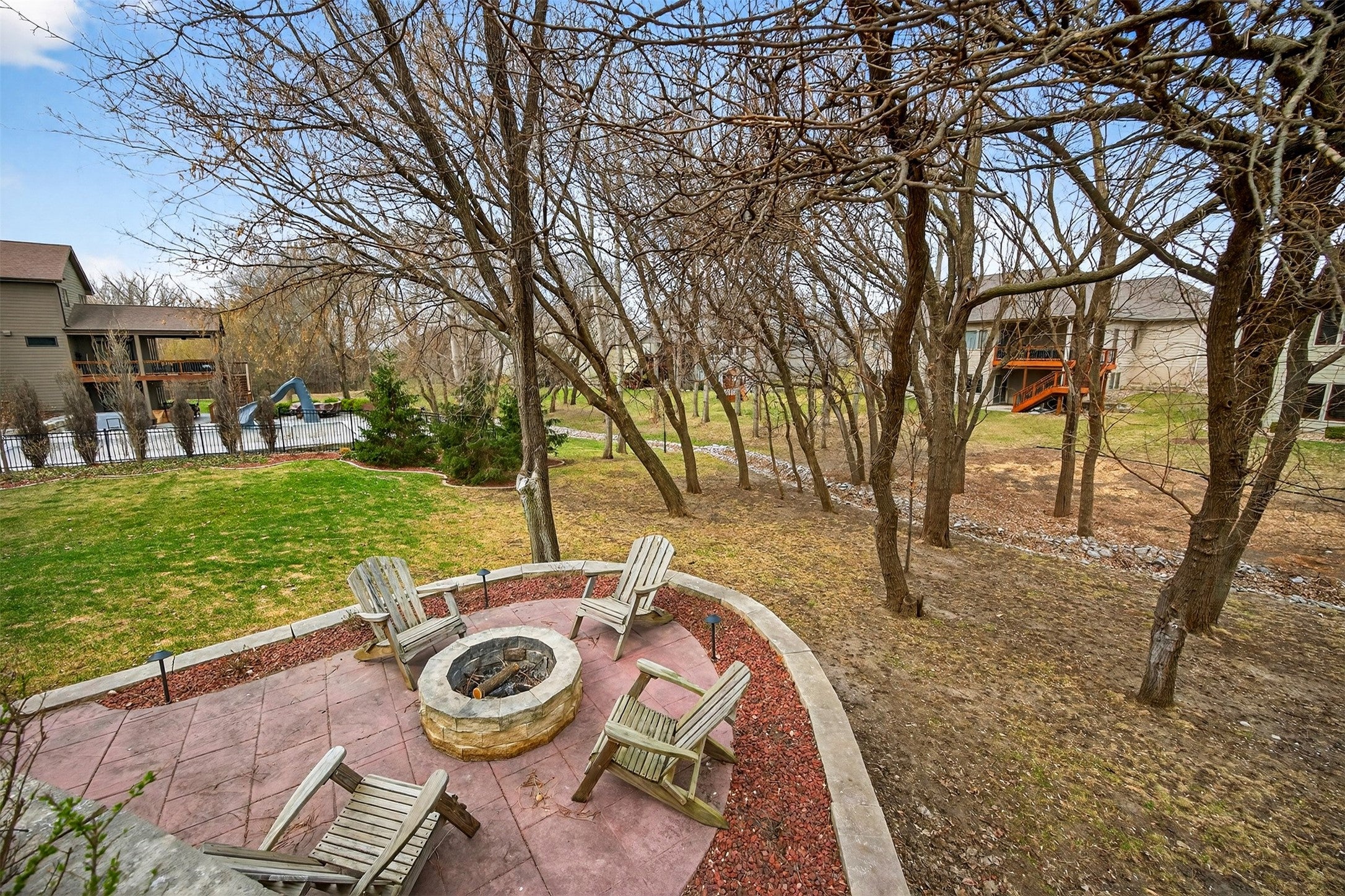Stunning custom builders ranch set on 1.5 lots backing to creek & mature trees. Designed for entertaining, the outdoor living space features wood-burning stone fireplace with gas line, firepit, multi-level stamped patio, & prof landscaping & plenty of space for a future pool.