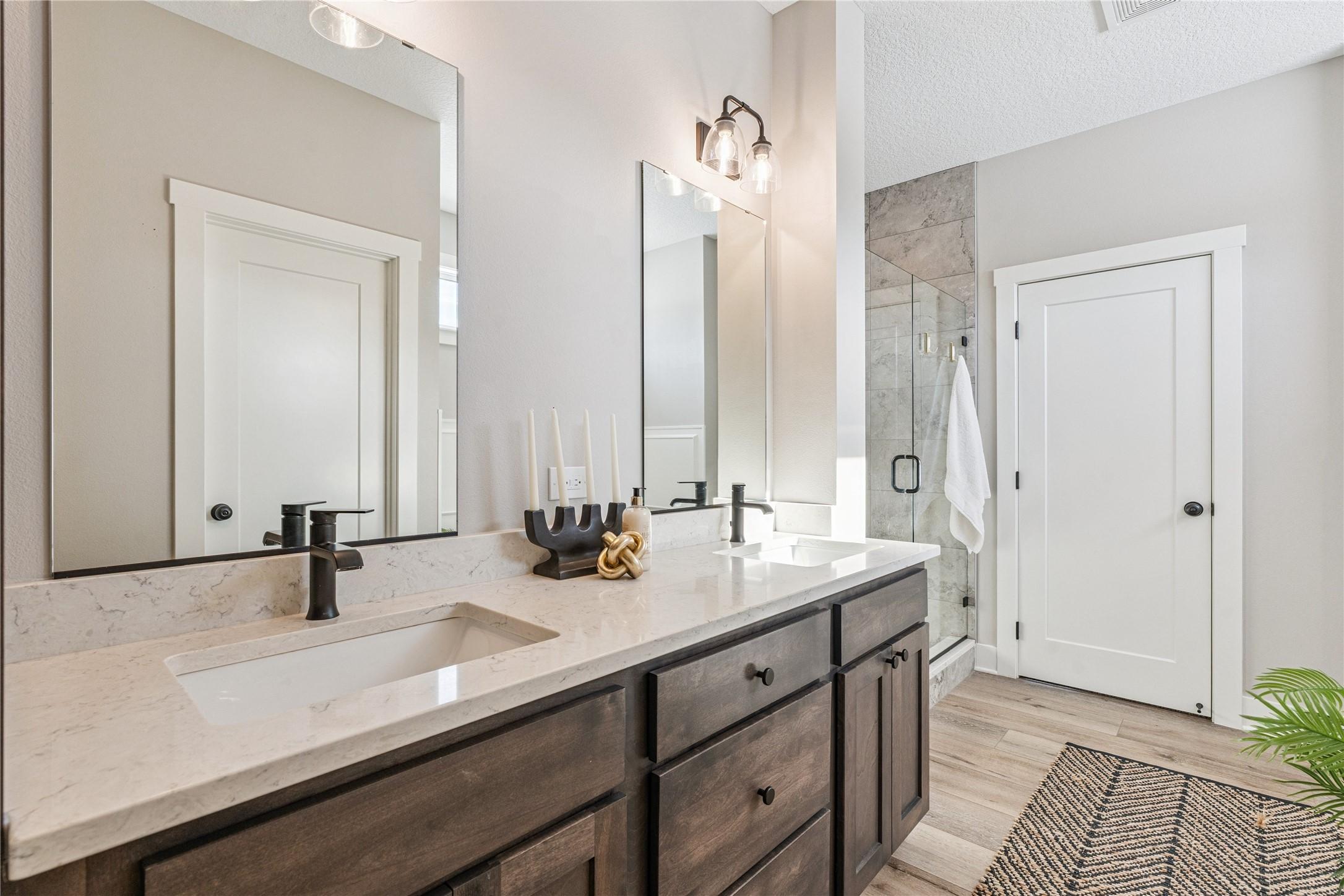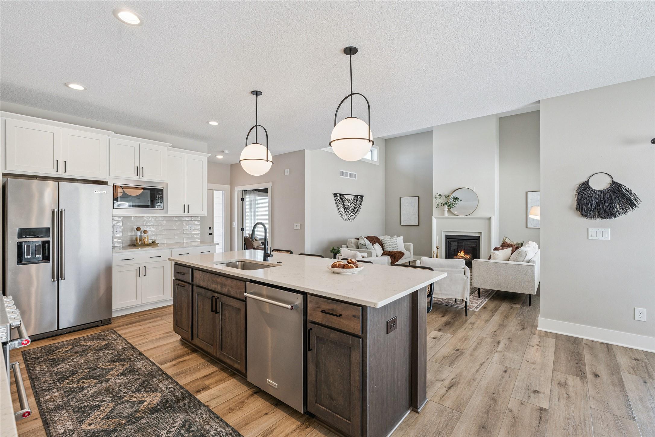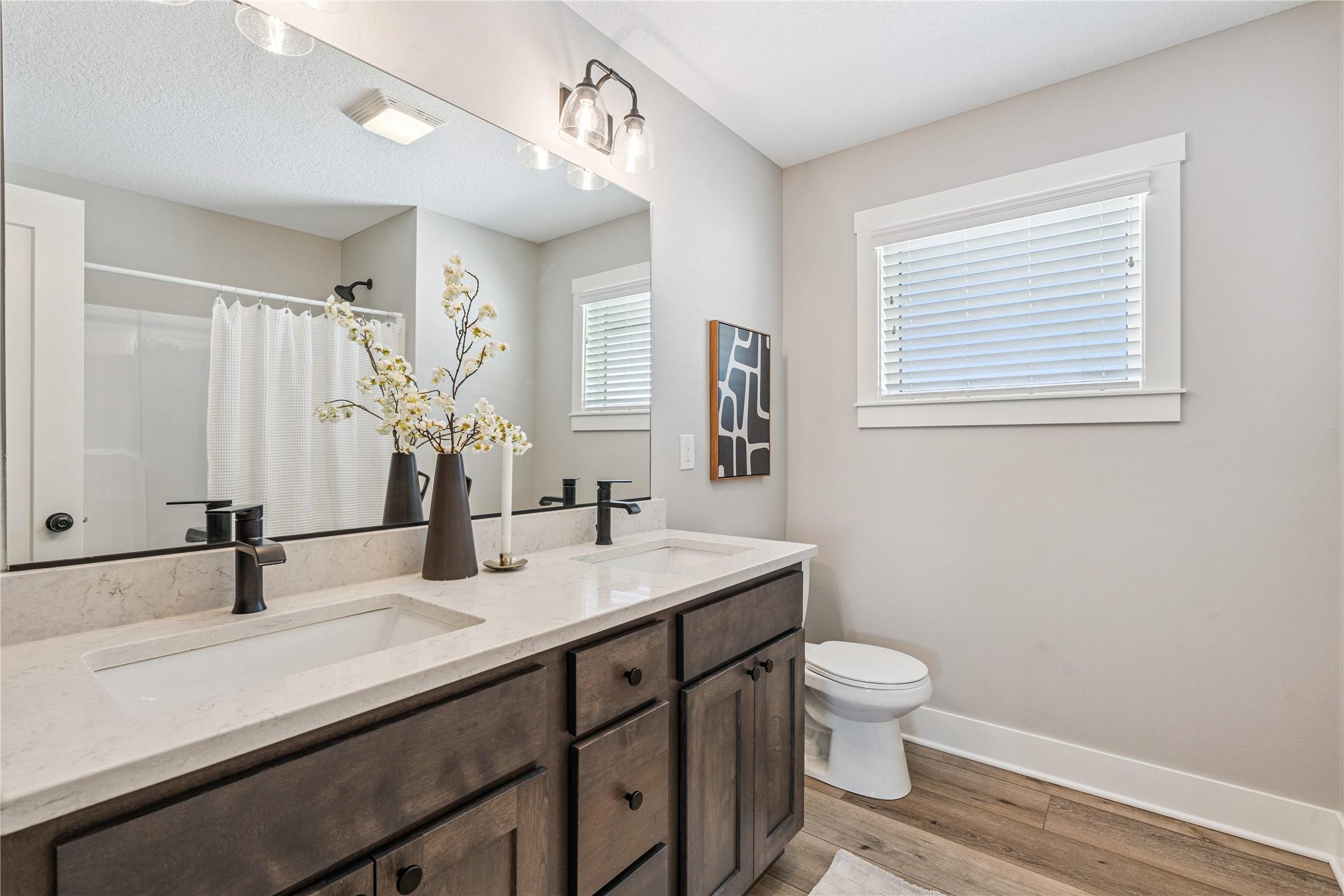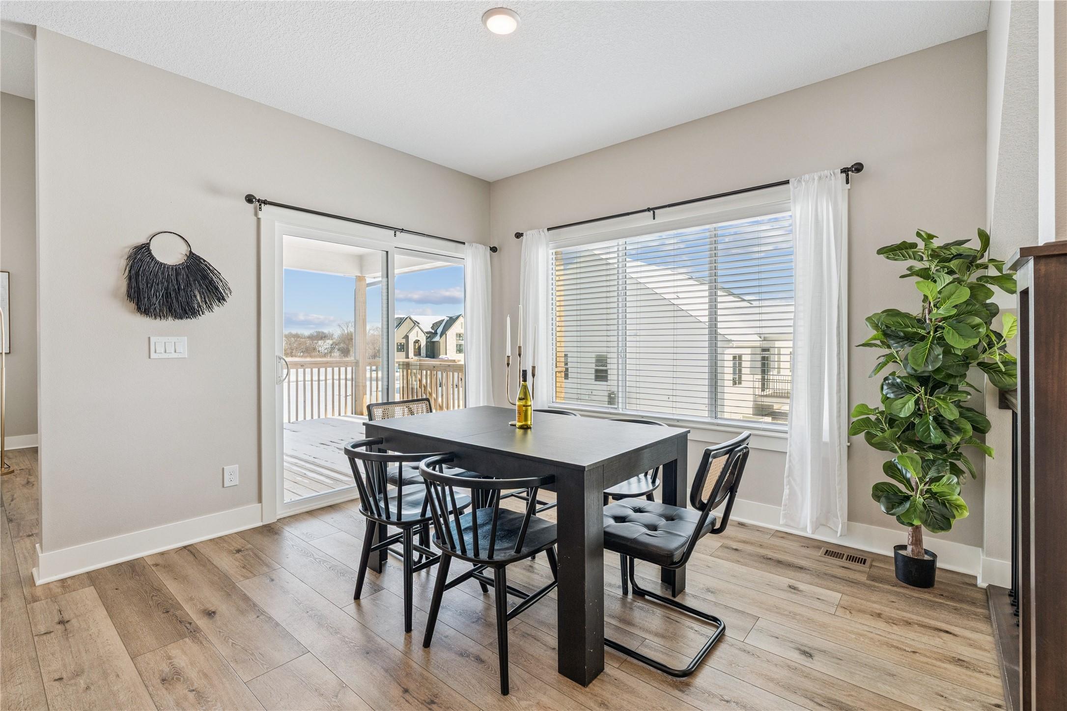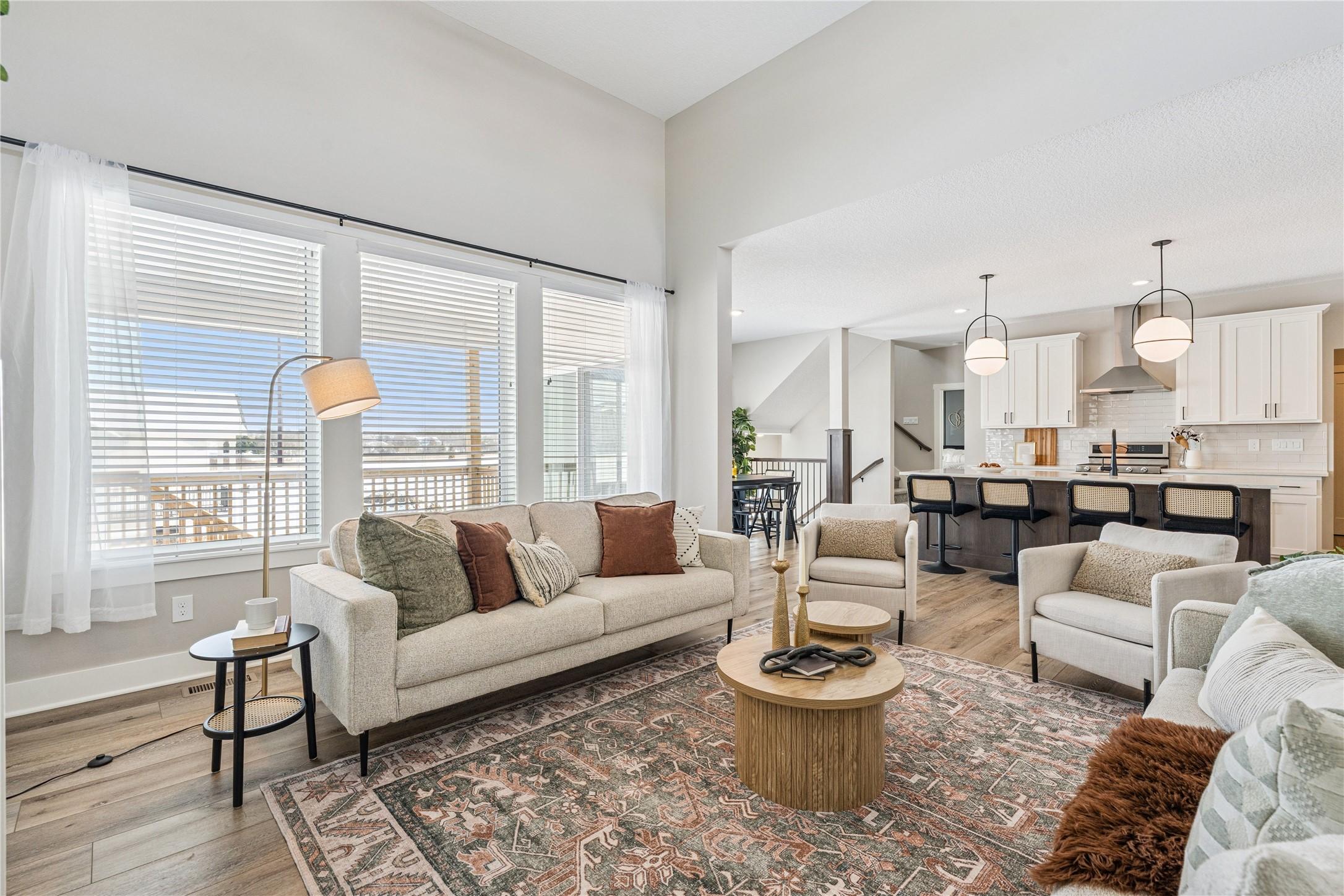 You are going to love this better-than-new Drake Homes resale offering nearly 2,800 sqft of beautifully finished living space w/ upgrades you simply dont get in new construction. From the moment you walk in, the welcoming entry open staircase set the tone for the quality throughout. The kitchen is a standout w/ a hood vent, apron sink, gas range, a walk-in pantry w/ custom shelving an abundance of counter space, all flowing into a bright living area w/ huge windows a tile-wrapped fireplace. Hardwood flooring runs through much of the main level, complemented by updated light fixtures motorized Hunter Douglas shades (an 11K upgrade). The layout is both functional private, featuring a primary suite w/ dual sinks, a tiled walk-in shower, a closet that connects to the laundry room. A 2nd bedroom is tucked away on the opposite side of the home w/ its own full bath. The walkout LL impresses w/ 10-foot ceilings, two bedrooms that share a full bath, a full wet bar w/ a massive quartz countertop. Enjoy outdoor living w/ a covered composite deck w/ fan a huge concrete patio. The yard has been professionally maintained, keeping the lawn in excellent condition, along w/ a full 16-zone irrigation system already in place. Situated on a walkout lot in the Waukee NW school district, this home offers curb appeal w/ board batten siding quality 2x6 construction, plus Energy Star 3.1 certification. Immaculately maintained with no pets, this home truly feels brand new.