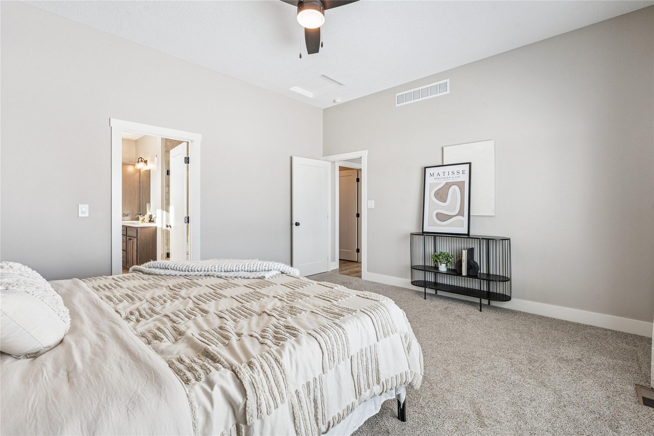 Gorgeous grand entrance with stunning pond views from nearly every room. Designed for elevated living and entertaining, the chefs kitchen opens to a richly detailed great room. The private owners suite is a true retreat with dual vanities and an expansive walk-in closet with center island. A second bedroom offers a private bath, while a third bedroom or office also enjoys serene water views. Extra-large three-car garage with ample storage plus an additional tuck-under garage with rear access. Walkout lower level features a spacious wet bar, second family room with fireplace, gaming area, powder room, and two additional bedrooms with shared bath. Fully landscaped and irrigated yard. Located in the distinctive Acadia community by Accurate Development, near parks and trails, close to Des Moines Christians new campus, and within Waukee Schools. All information obtained from seller and public records.