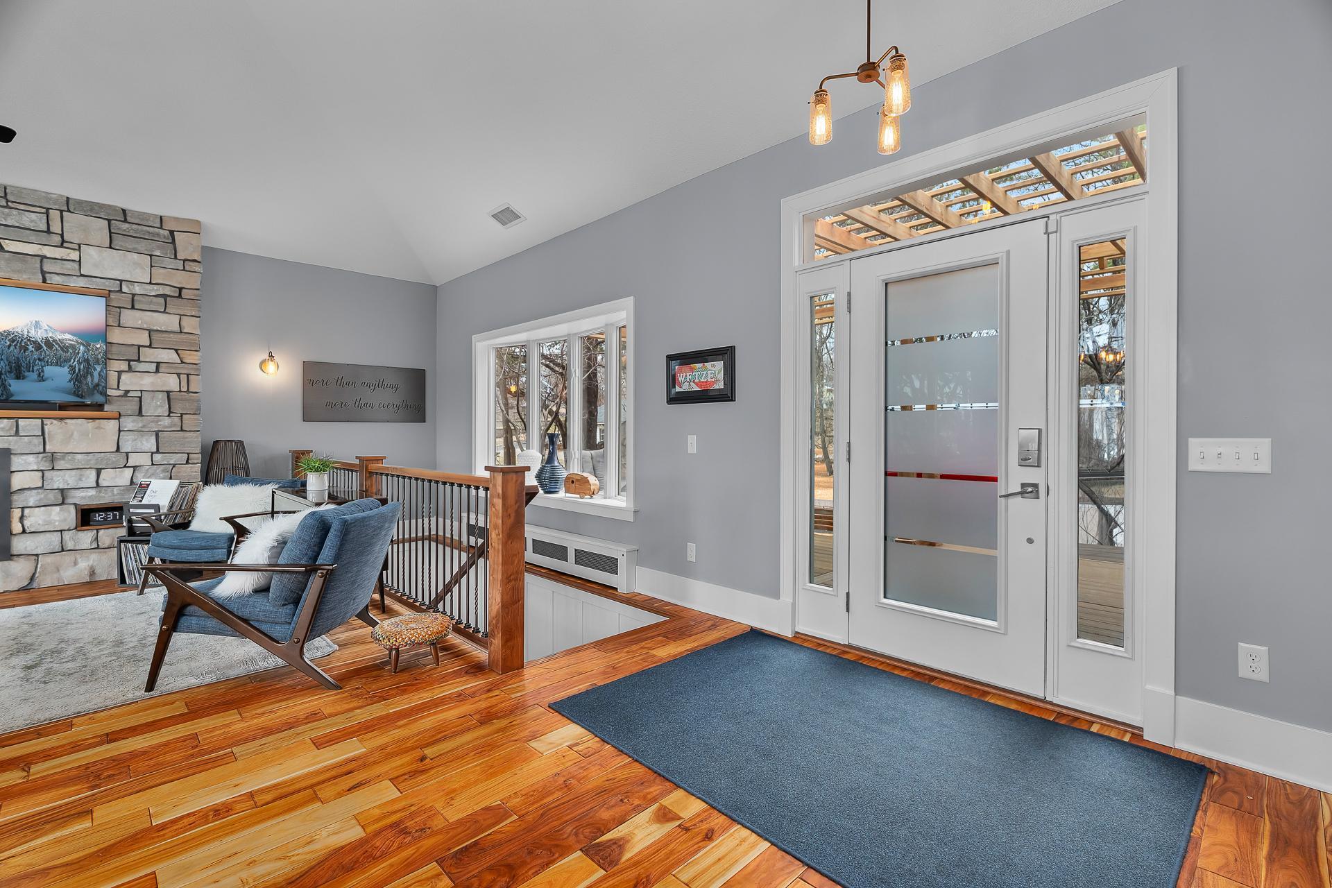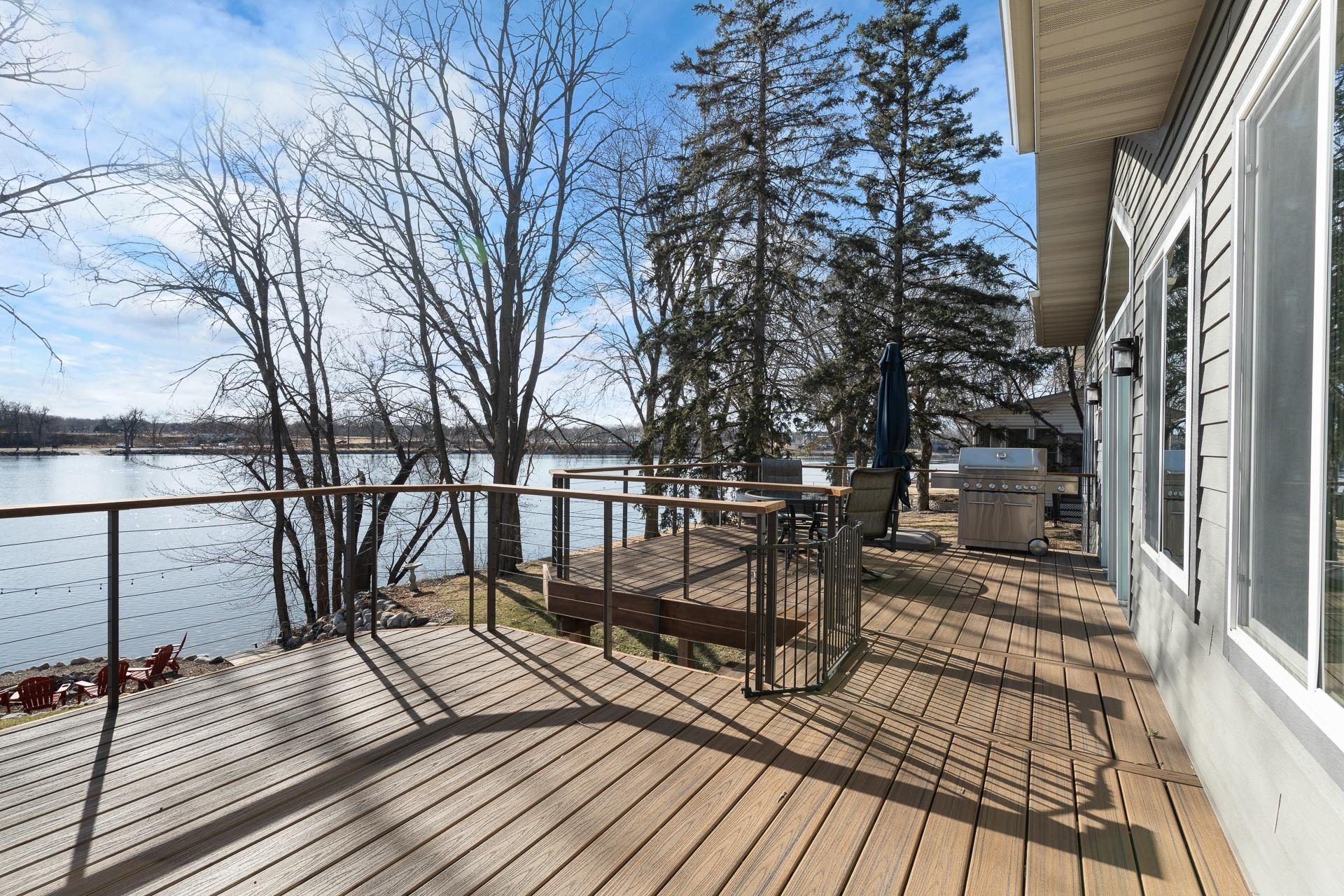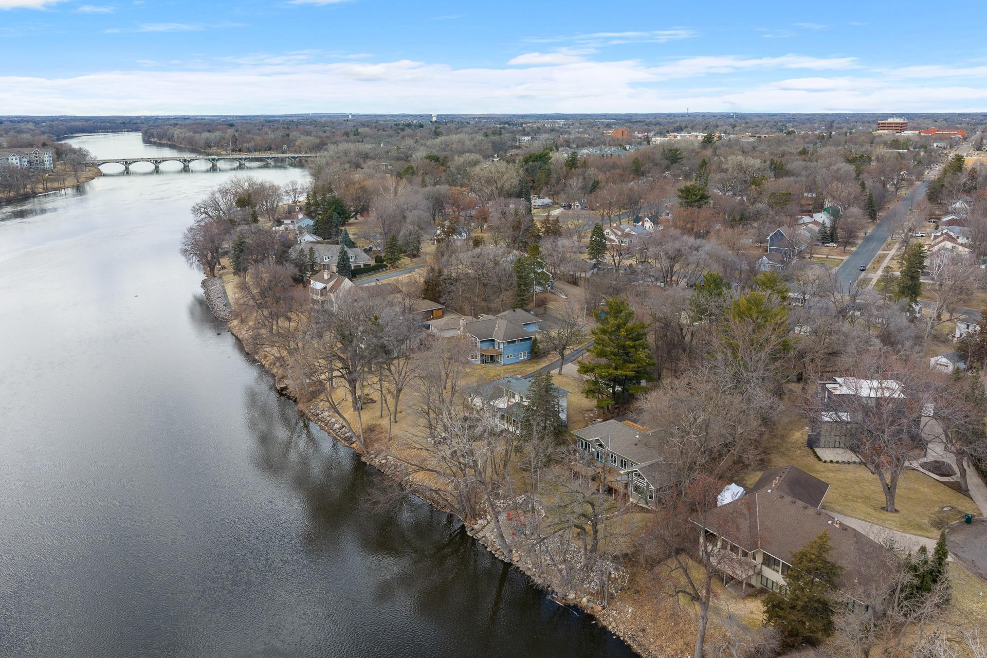 BACK ON MARKET - not due to inspection. Please ask showing agent for details. Private Mississippi River retreat with stunning panoramic south & west views. 116 ft of boulder rip rap (200 tons), and custom stone stairs to river. 4BR (plus Office) 4BA one-story home completely renovated by current owners (licensed contractor). New roof trusses in 2016 added 18 ceiling height plus 16 vault in main living areas. Timberline 30-year shingles 2016. LP Smartside Diamond Coat siding 2017. New Anderson 400 Series windows 2018. Brand new 871 SF 3-car finished/insulated/heated garage in 2024. All main level interior walls were removed/redesigned to create an updated floor plan that maximizes river views. Asian hardwood flooring main living areas, office and hallways. Kitchen features SST appliances, SST sink, custom walnut ceiling box vault, gas cooktop with pot filler, Italian Oniciata marble countertops, and pantry. The Primary BR ensuite features a custom poplar vaulted ceiling and beam, dual shower with heated floor, and walk-in closet. Main level laundry room with utility sink, and washer & dryer 2018. The main level is completed with a 2nd bedroom ensuite, office, mudroom to garage, and half bath. The walkout lower level has a 24x23 family room, 2 more bedrooms, mechanical room, flex room, and 17x12 heated storage room with exterior access, convenient for storing seasonal items. 200 amp electrical 2020. New plumbing & fixtures 2018. HE boiler & water heater 2026. Attic mount AC with backup heat. 2 tankless water heaters. 40x15.5 Trex (2025) deck with stairs to backyard, hot tub with private access to primary BR, and natural gas BBQ (no LP tanks). Shoreline wood firepit. Storage shed. Pet containment area and invisible fencing. Partial privacy fencing. See MLS Supplements for complete Improvements List. Public boat launch 3 blocks from home. Less than a mile to downtown Anoka shops and dining.