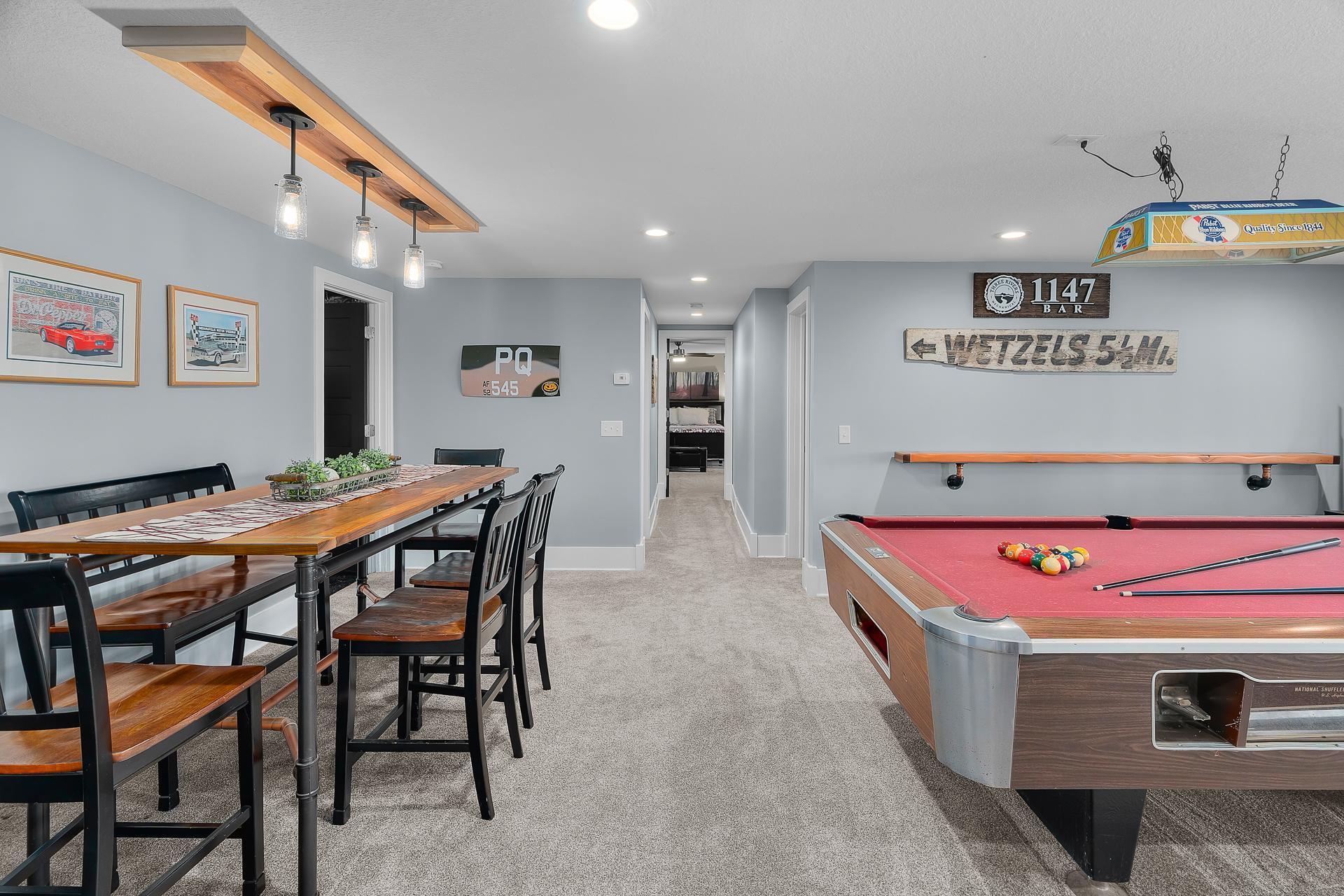 Welcome to Lang Builders Newest Masterpiece in Swedish Chapel Estates! Situated on a stunning 2.2-acre lot with serene pond views, this exceptional model home blends luxury design with functional living across two spacious levels. The main floor spans 2,044 square feet and showcases a thoughtfully designed layout perfect for both relaxing and entertaining. At the heart of the home, a gourmet chefs kitchen shines with custom white oak cabinetry, granite countertops, a stylish backsplash, and a generous island overlooking the vaulted living room. Enjoy added convenience and storage with a walk in butlers pantry featuring a prep sink, open shelving, and additional cabinetry. A striking stone fireplace flanked by built-ins adds warmth and charm to the living space. The luxurious primary suite is a true retreat, featuring a spa-inspired private bathroom, a spacious walk-in closet with a built-in organization system, and its own private laundry area designed for ultimate ease and privacy. Additional main-level highlights include a formal dining room with angled patio doors leading to a maintenance-free deck, a welcoming office with vaulted tongue-and-groove cedar ceilings just off the foyer, a spacious mudroom with a walk-in storage closet, and a stylish half bath for guests. Downstairs, the walkout lower level offers another 1,737 square feet of beautifully finished living space. Entertain effortlessly with a large wet bar and a bar height center island that opens to the expansive family room, complete with a second stone fireplace and built-in cabinetry. Three additional bedrooms, a 3/4 bath, a second laundry room, and ample storage make this level as practical as it is impressive.The oversized garage is a dream for hobbyists or storage needs42 feet wide and 28 feet deep on one side, fully insulated with floor drains for added utility. Crafted with premium materials throughout, this home includes Marvin windows, granite surfaces, custom soft-close cabinetry, high-grade flooring, LP Smart Siding, and moreshowcasing the attention to detail and quality Lang Builders is known for.