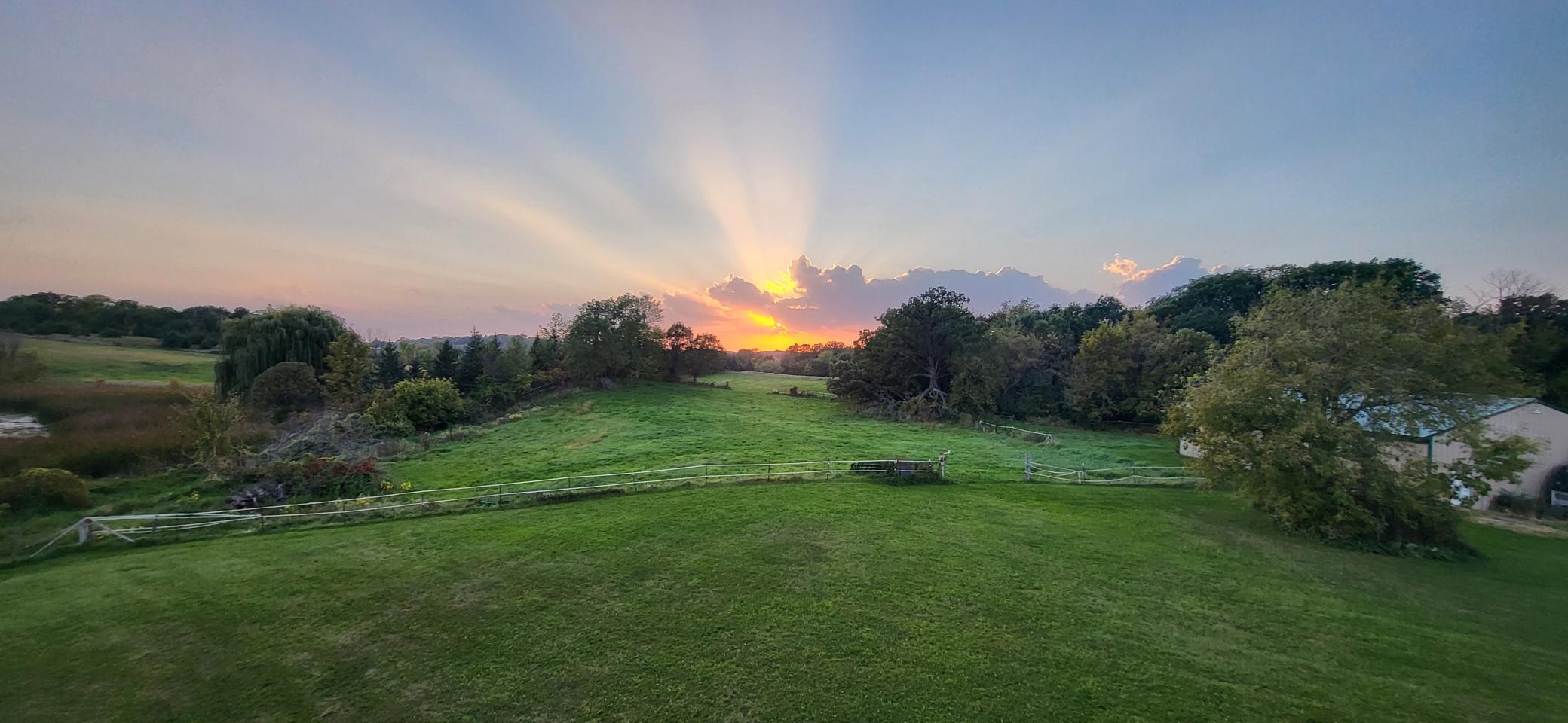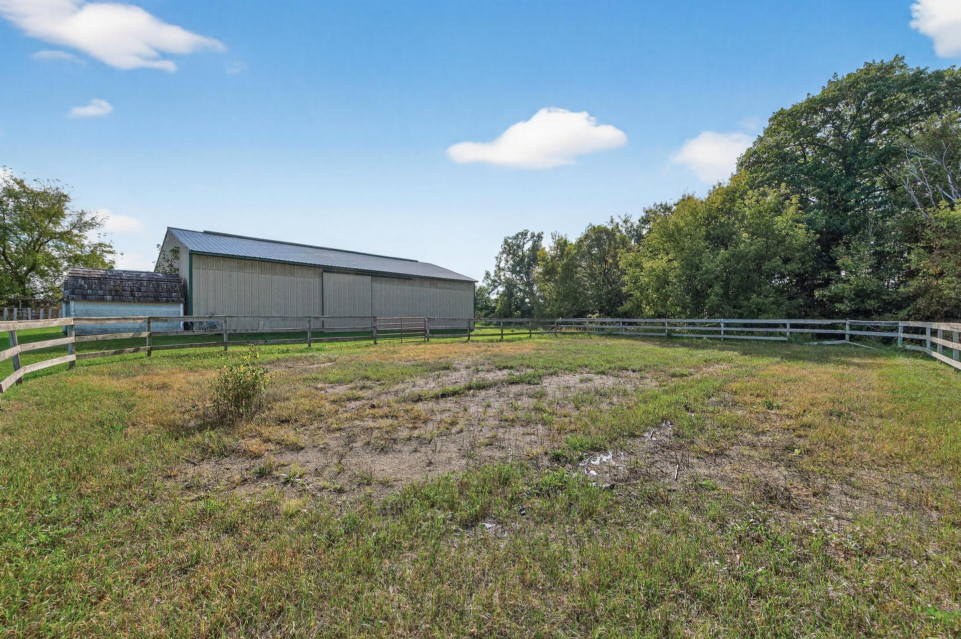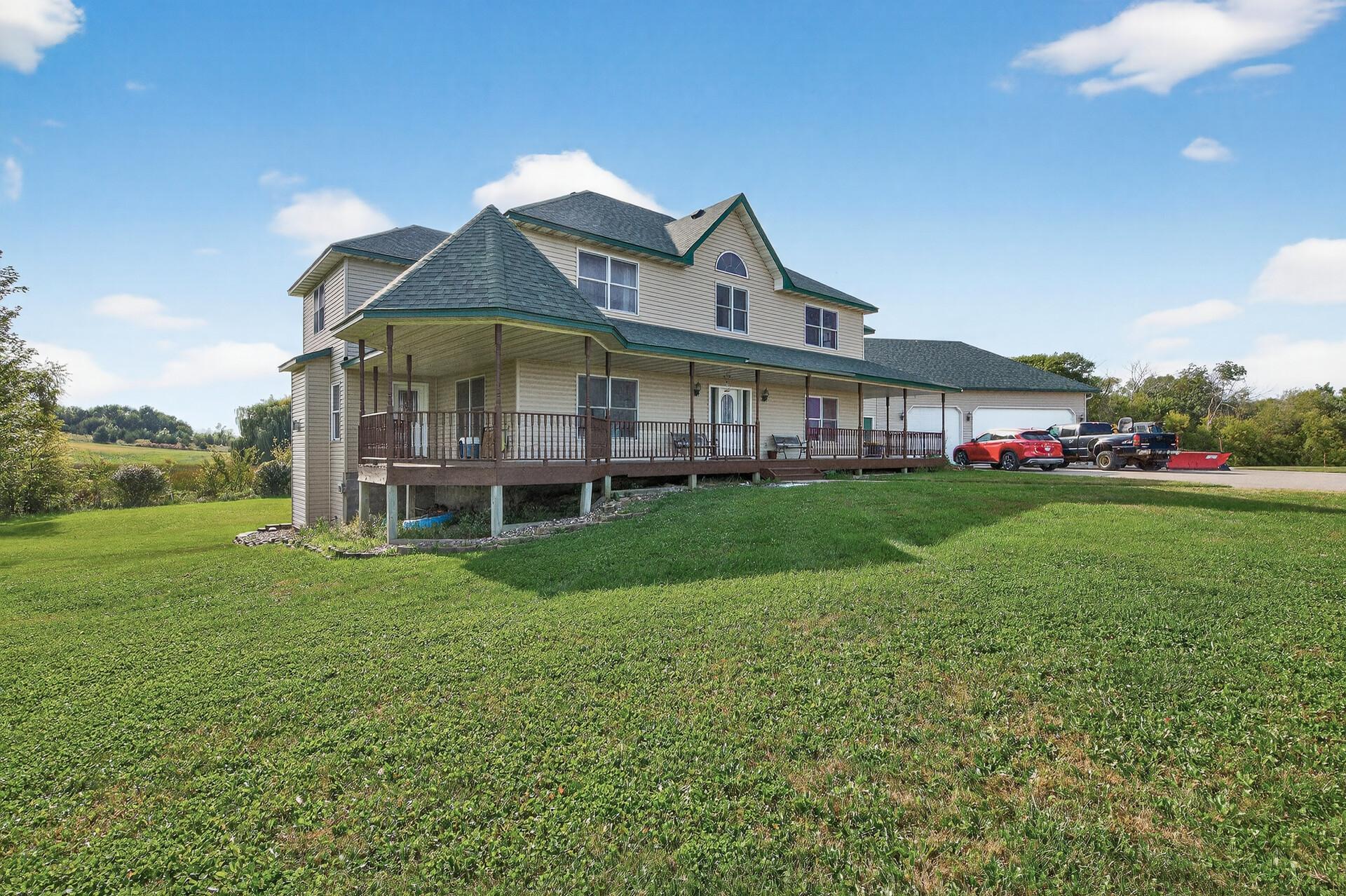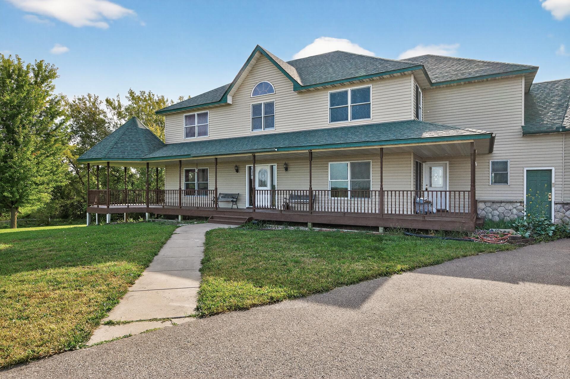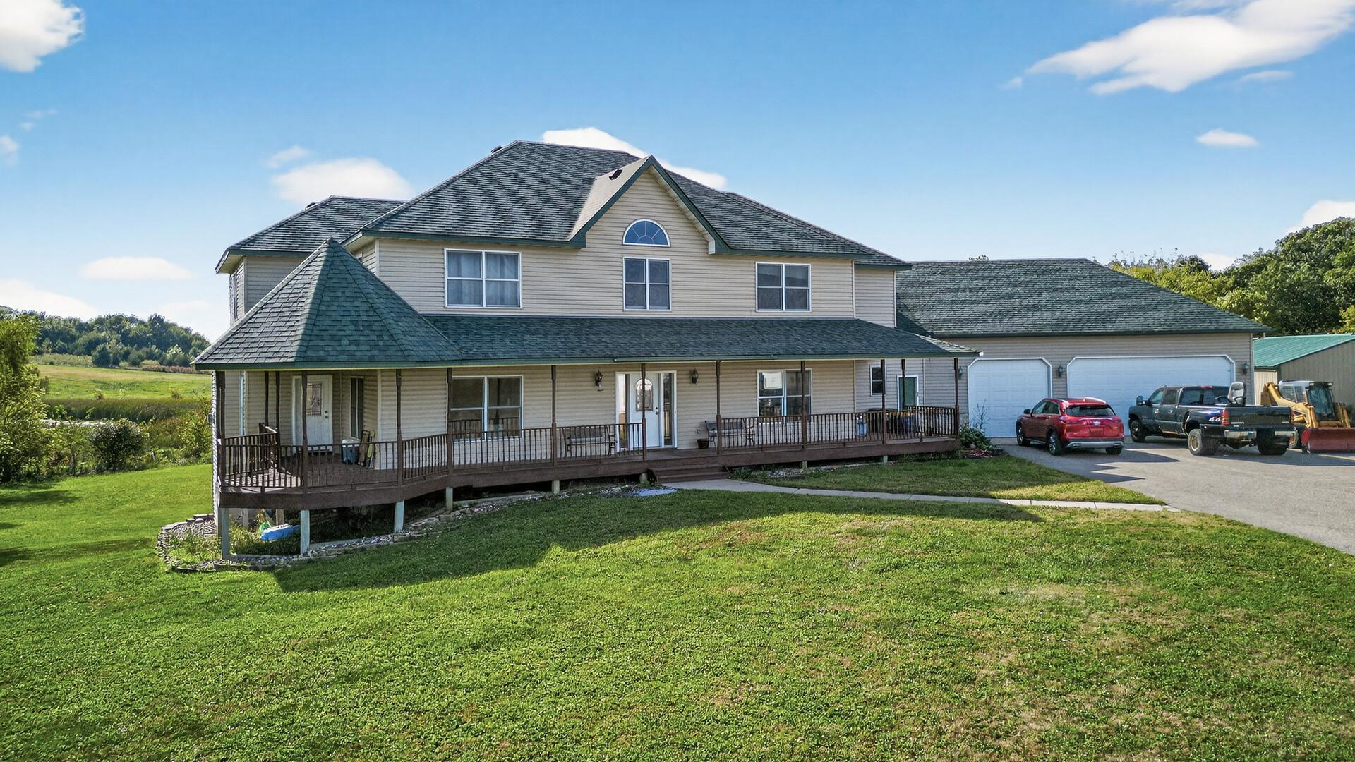 Welcome to 80 acres of peaceful country living, featuring over 60 acres of tillable farmland along with beautiful wooded areas. A long driveway leads you to this country dream, complete with a spacious home and a large wraparound front porch. Inside, the main level offers a wide-open layout with a huge kitchen, an oversized island, and plenty of room to entertain. Upstairs youll find five bedrooms along with a convenient laundry room. The large primary suite includes a generous private bath, while solar panels provide energy efficiency. Outside, a 40x60 outbuilding with horse stables offers endless opportunities for hobby farming or storage. This property does need some updating, but its the perfect place to create your country retreat.