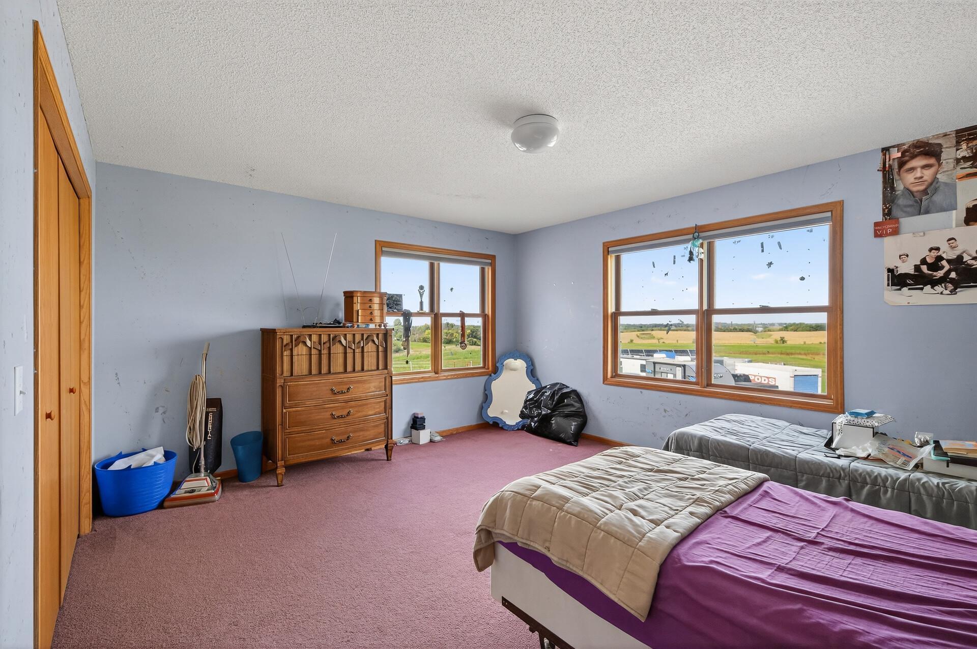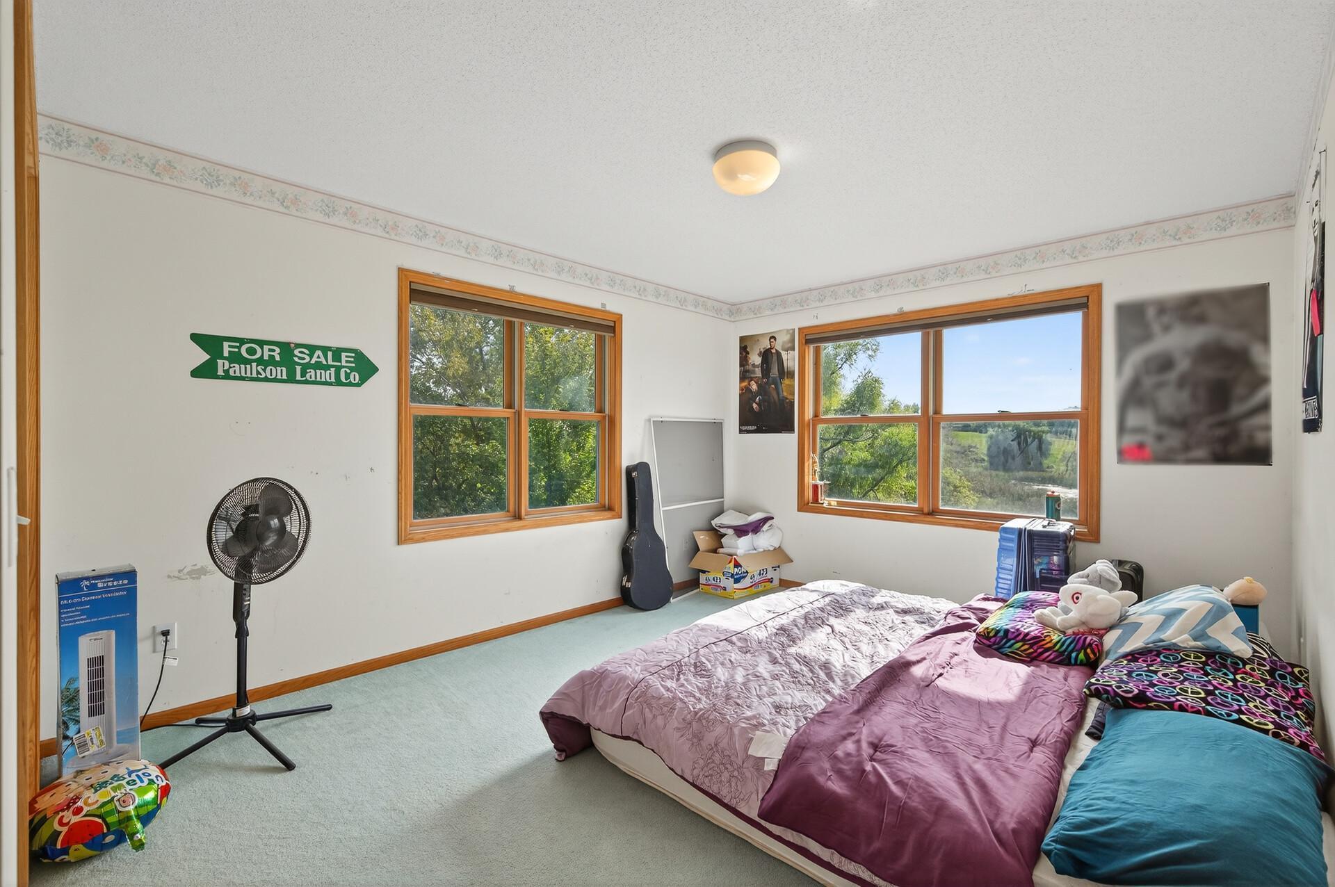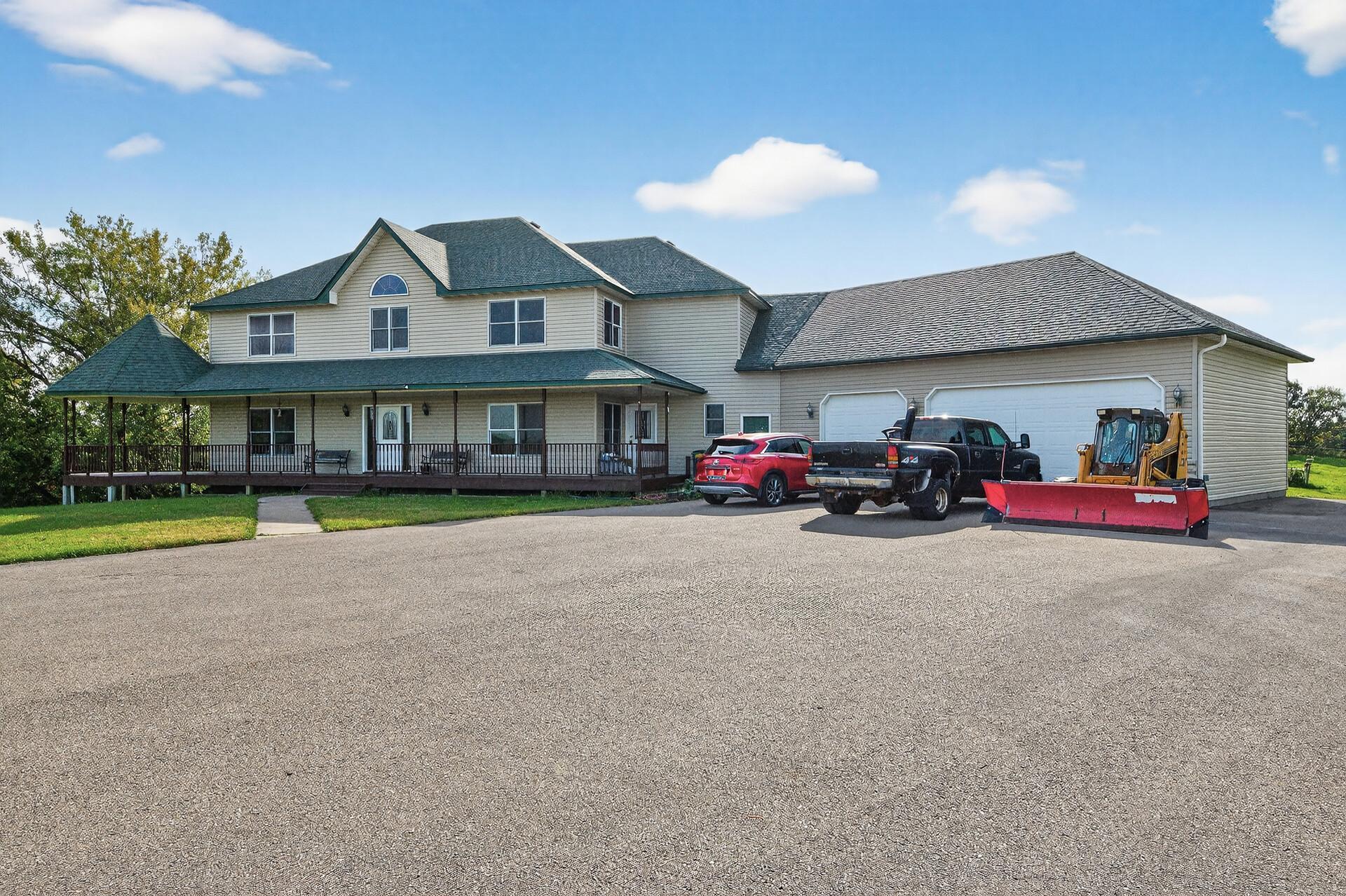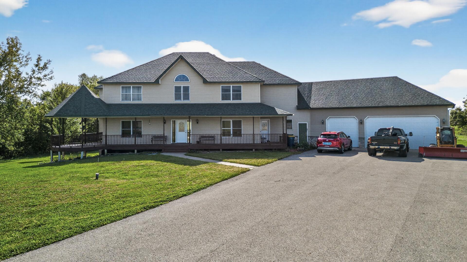 Welcome to 19155 263rd St, an exceptional custom-built home situated on 2.5 private acres along the St. Croix River in the prestigious St. Croix Bluffs neighborhood. This unique estate features a stunning floor-to-ceiling stone fireplace and impressive towering ceilings, along with cherrywood custom cabinets and tigerwood hardwood floors. The main level includes a spacious primary suite with an arched hallway entry and beautiful windows that flood the space with natural light. Upstairs, you will find two bedroomsone with an en-suite bathas well as a generous bonus room, ideal for a childrens play area, a flexible room, a movie room, or a creative space. The large open basement features a family room with a wood-burning fireplace and wet bar, a bathroom with a walk-in steam shower, and additional unfinished flex space currently used as a hobby shop. The home is equipped with in-floor heating throughout. The heated four-car garage even includes an elevator for easy transport of your belongings into the house! Outside, youll find ample deck and patio space, perfect for entertaining or simply enjoying the tranquility of the private wooded surroundings.