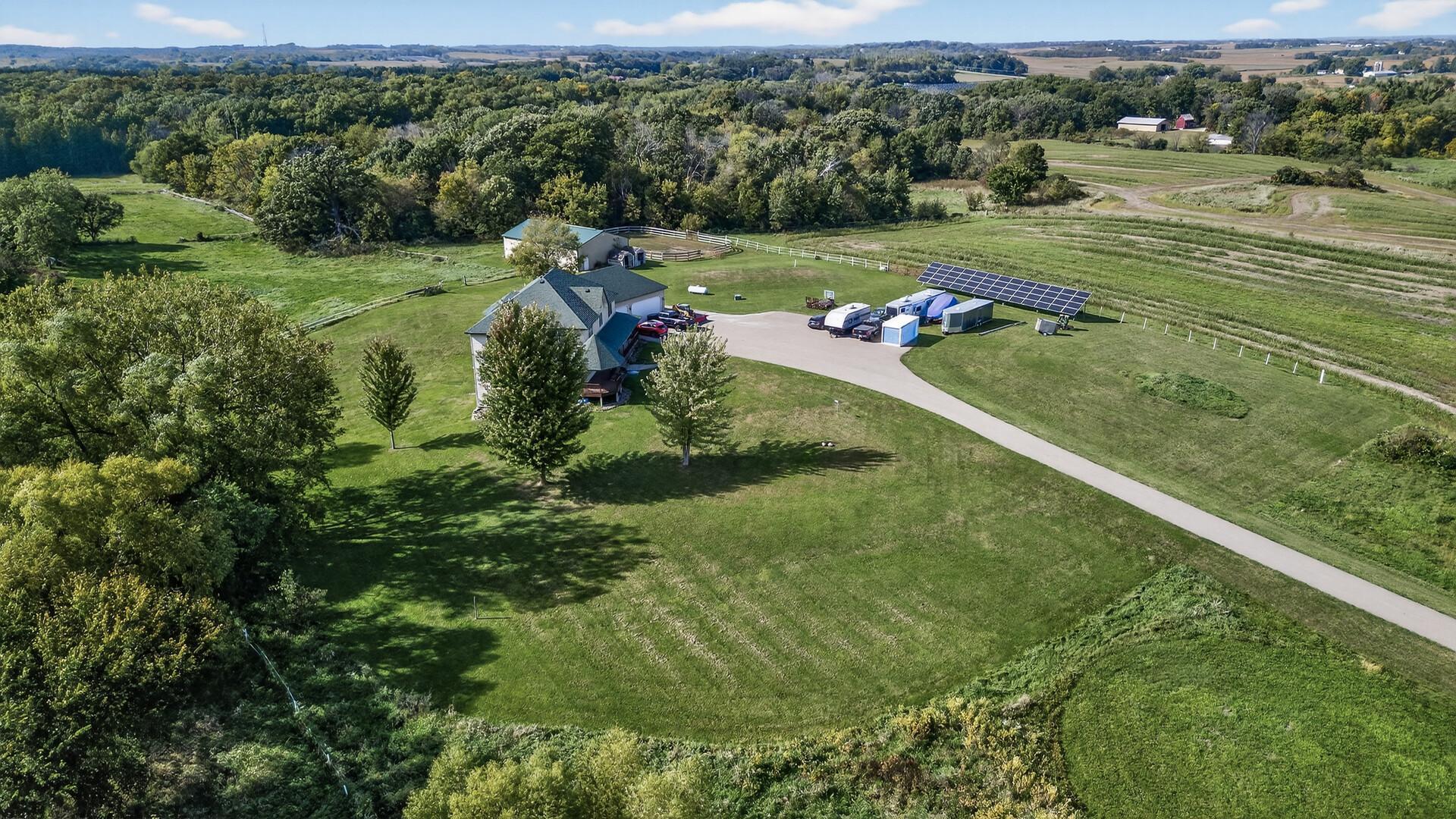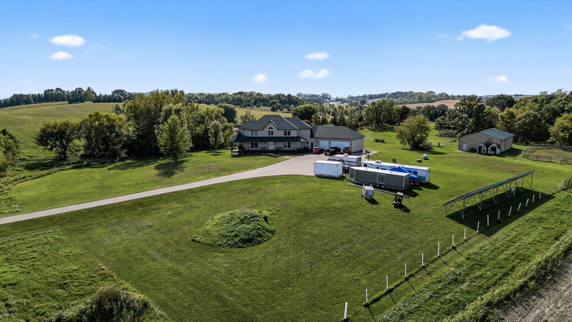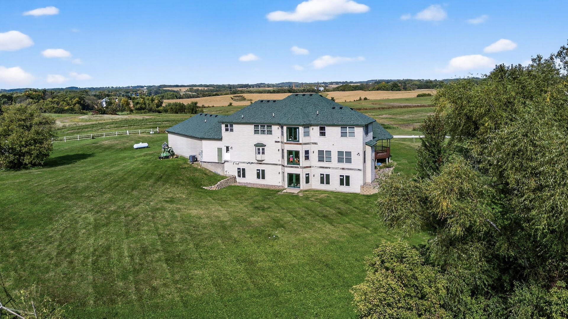 Incredible Secluded Estate. This one of a kind property features a custom 5 bedroom, 5 bath home, a guest home with 3 car garage, and a 50 x 80 heated shop all nestled on a heavily wooded 9.8-acre property. The stunning main house features all custom cherry cabinets and millwork, floor-to-ceiling transom windows, in-floor heat, and a gourmet kitchen. Truly exquisite, all of the dwellings feature the amazing artistry of a life long master masonry expert and owner, featuring plaster interior walls and stucco exteriors. Over built with the eye of perfection, this amazing property is conveniently located close to highway access and 40 minutes from the airport, and just 7 miles from historic Northfield. Don't miss out on your opportunity to own this rare property.