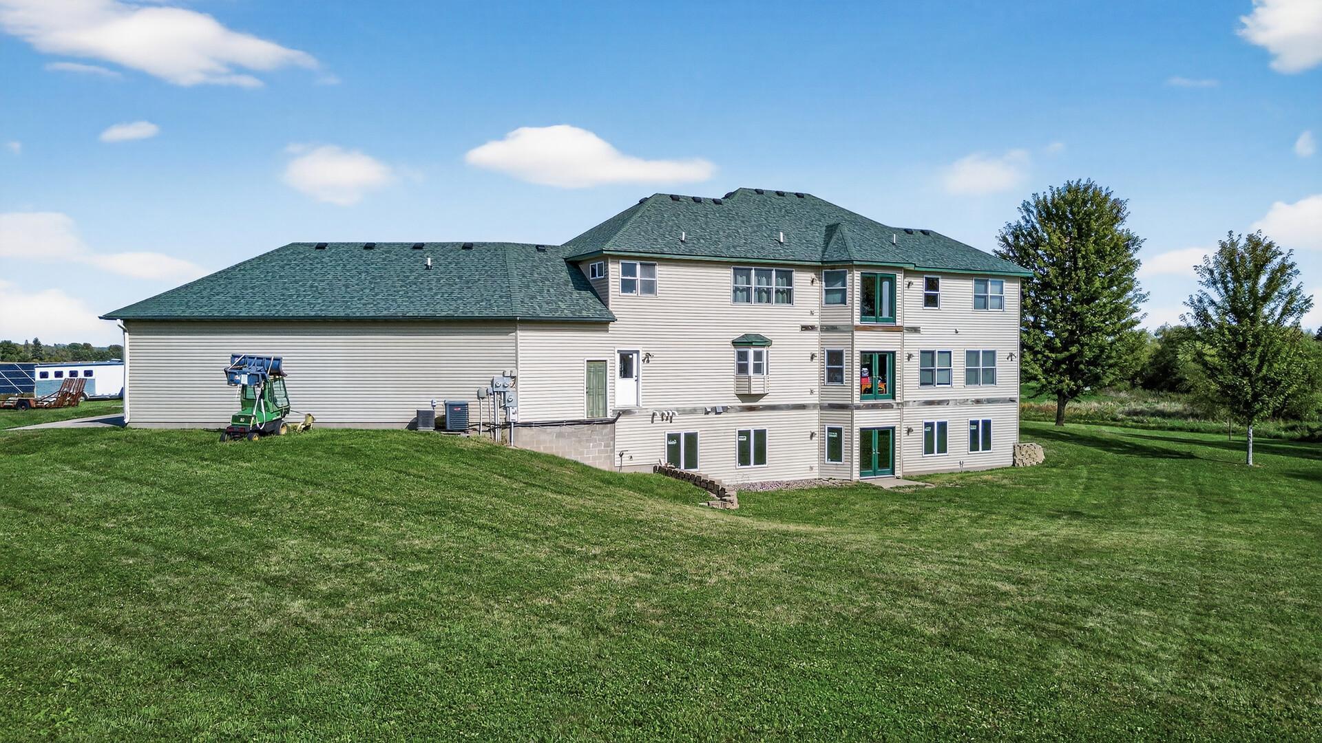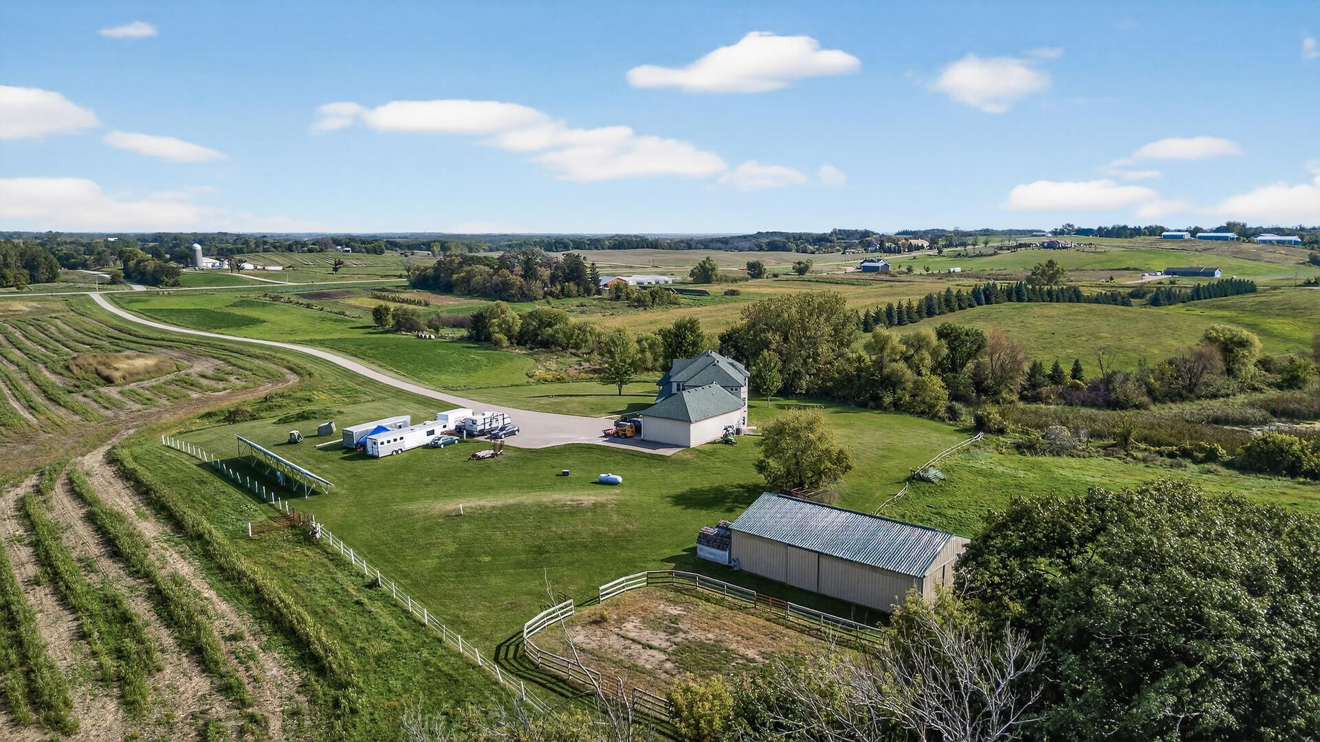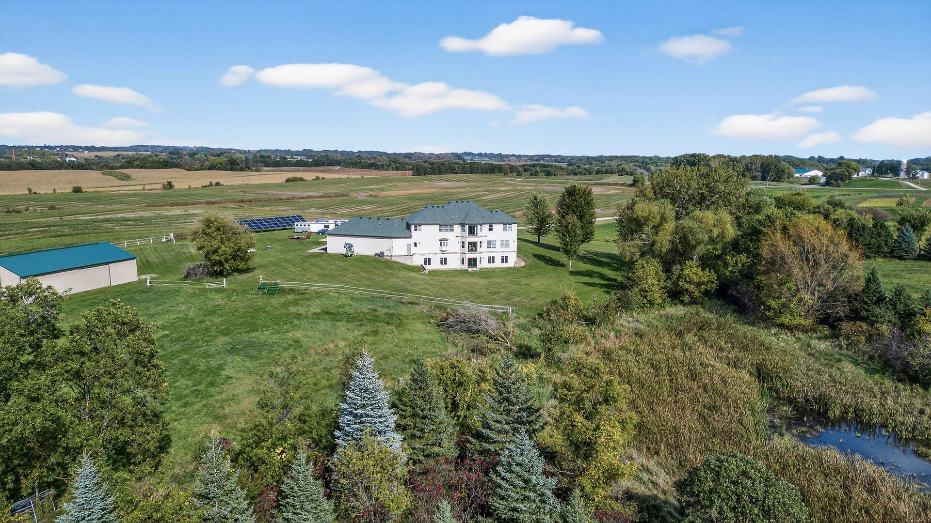 Incredible Secluded Estate. This one of a kind property features a custom 5 bedroom, 5 bath home, a guest home with 3 car garage, and a 50 x 80 heated shop all nestled on a heavily wooded 9.8-acre property. The stunning main house features all custom cherry cabinets and millwork, floor-to-ceiling transom windows, in-floor heat, and a gourmet kitchen. Truly exquisite, all of the dwellings feature the amazing artistry of a life long master masonry expert and owner, featuring plaster interior walls and stucco exteriors. Over built with the eye of perfection, this amazing property is conveniently located close to highway access and 40 minutes from the airport, and just 7 miles from historic Northfield. Don't miss out on your opportunity to own this rare property.