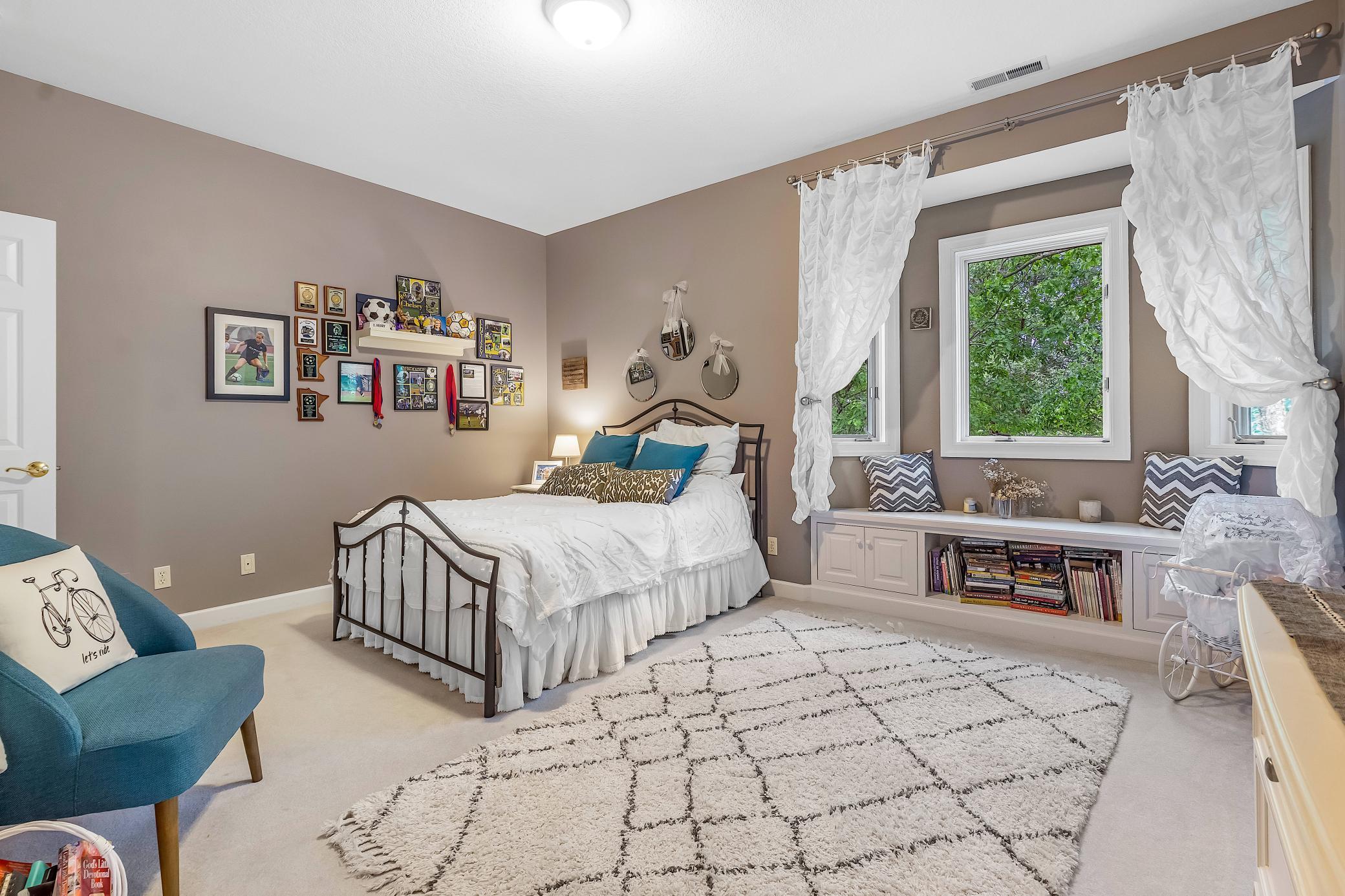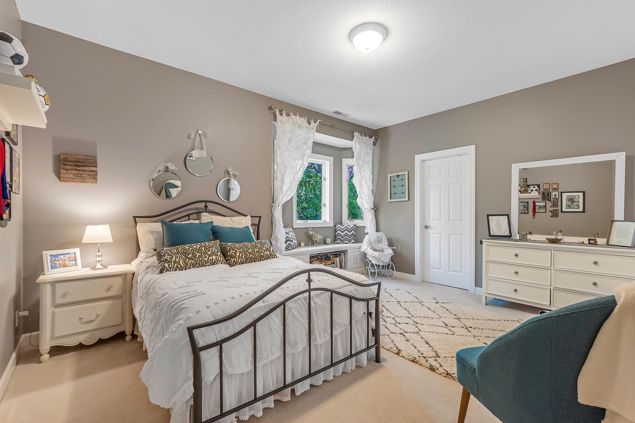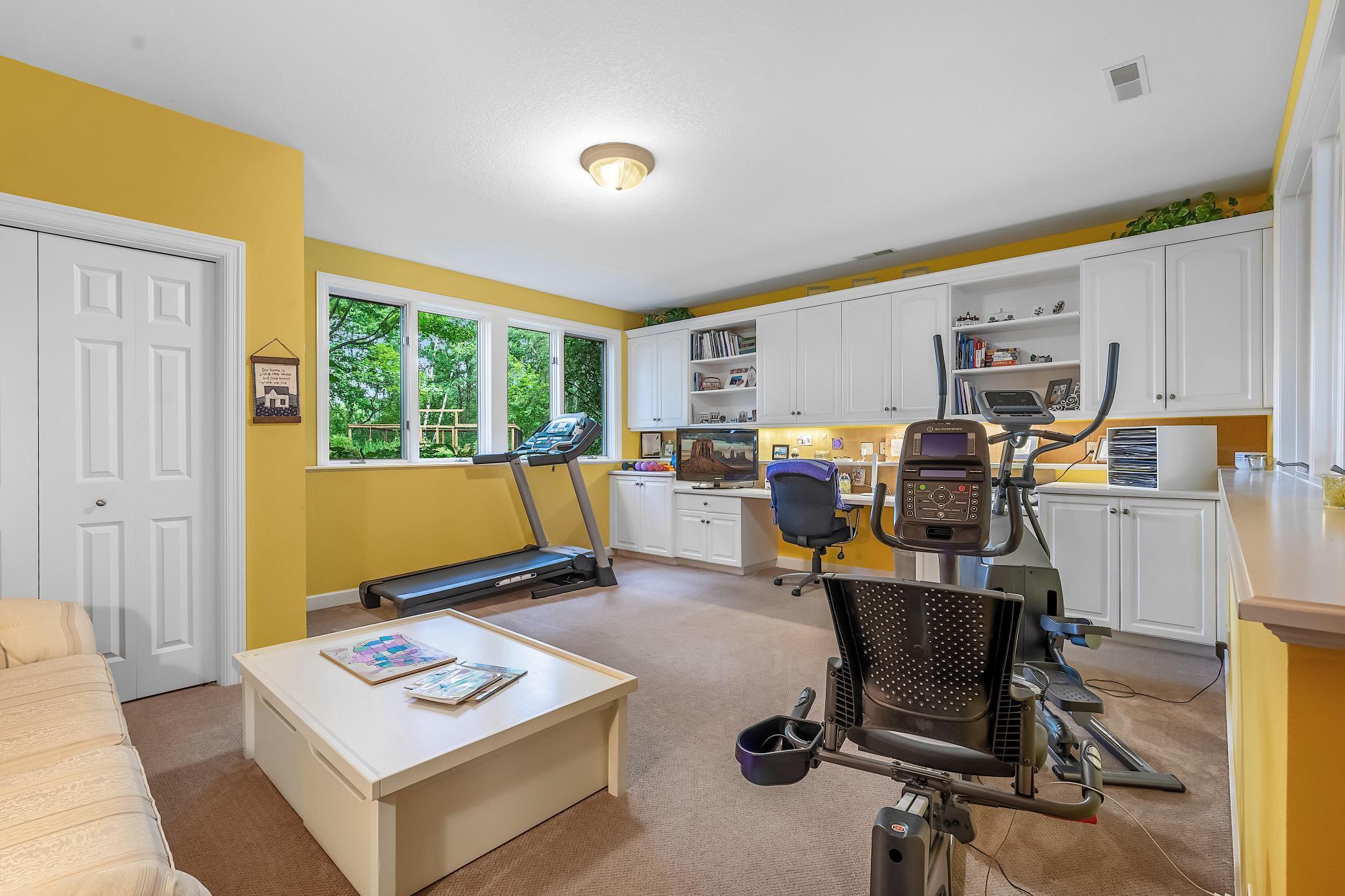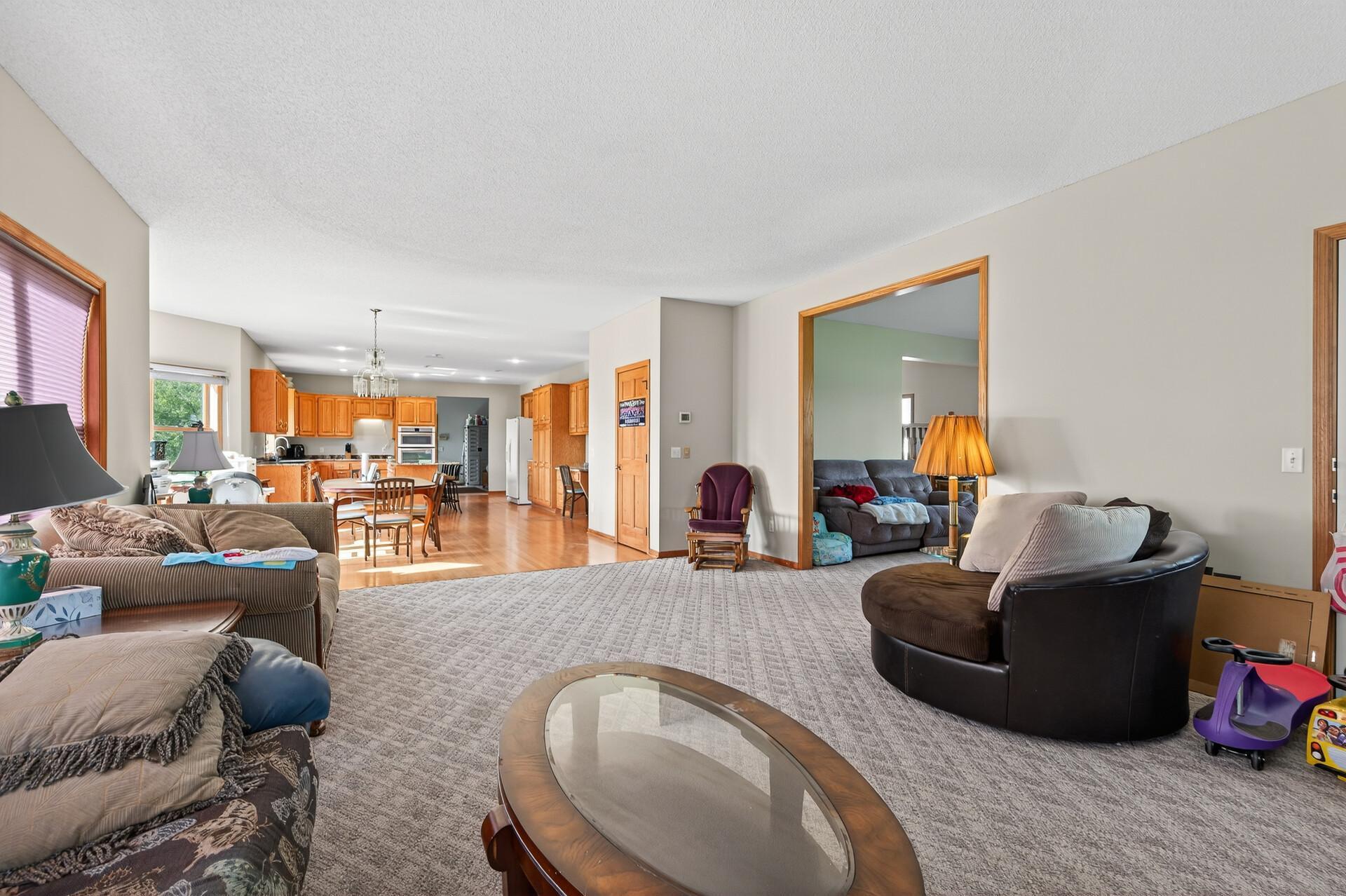 This meticulously maintained, stunning custom-built 5-bedroom, 4-bathroom home is nestled on a peaceful cul-de-sac in Dellwood, offering the perfect blend of modern convenience and tranquil, nature-filled surroundings. The kitchen is a chefs dream, featuring stunning wood flooring, abundant natural maple cabinetry, and granite countertops. A spacious center island boasts a built-in Wolf range cooktop and breakfast bar seating, ideal for casual dining or meal prep. Stainless steel appliances, including a double wall oven, reverse osmosis water system, and a spacious 5x4 pantry, are complemented by a stunning tile backsplash that adds the perfect finishing touch. Adjacent to the kitchen, the inviting informal dining room features elegant wood flooring, a stylish chandelier, and seamless access to the maintenance free 14x14 deck-perfect for effortless indoor-outdoor entertaining. Adjacent to the dining room is a spacious living room featuring soaring 18-foot ceilings and floor-to-ceiling windows that fill the space with natural light. The room is accented with plush carpeting and a double sided gas-burning fireplace with a tile surround, complemented by custom maple built-ins for added storage and stylish display. The main-level den features glass French doors at its entrance, plush carpeting, wet bar and a double-sided gas fireplace shared with the living room. Large windows on both ends of the room allow natural light to pour in, creating a bright and inviting space. The formal dining room features wood flooring, a chandelier, and a large built-in buffet with counter space and cabinetry, all made of natural maple. Large windows provide ample natural light. The main-floor laundry room, located off the kitchen, features a utility sink, ample counter space, and plenty of cabinetry, making laundry day a breeze. On the upper level, the spacious primary suite boasts tray ceilings, a ceiling fan, large windows, and plush carpeting. The suite includes an expansive 21x10 walk-in closet, with built-ins providing ample space for all your wardrobe needs. This luxurious bathroom features a jetted bathtub for a relaxing soak, a large tiled walk-in shower, and a double vanity with generous storage. Bedroom two on the upper level is carpeted and includes a 6x5 walk-in closet. It shares a Jack and Jill bathroom with bedroom three, each featuring its own private vanity. The shared full bathroom is separated by pocket doors, offering privacy for each bedrooms vanity area while providing access to the shared area with tub/ shower combo. Bedroom three is spacious, featuring dual closets, along with a cozy nook area thats ideal for a sitting space, complete with a window that overlooks the side of the home. The lower level, featuring carpeting throughout, offers a spacious recreation area with large windows and walk-out access to the backyard patio. Adjacent to this space is a wet bar area, ideal for entertaining, complete with silestone countertops, a two-tiered bar with high-top seating, ample cabinet space, a sink, and a small fridge. The lower level also includes a versatile exercise room or flex space, complete with French doors and a mirrored wall. Bedrooms four and five on the lower level both feature 5x5 walk-in closets and windows with views of the backyard, just steps away from the shared 3/4 bathroom. The lower level bathroom features tiled floors, a single vanity with ample storage, and a walk-in shower. The attached, heated, finished, and insulated three-car garage boasts epoxy flooring and hot and cold running water, ensuring your vehicles are well-protected year-round. The garage entrance opens into a tiled mudroom with built-in cabinetry, a walk-in closet with shelving, and coat racks, along with a conveniently located bathroom nearby. Additional features of the home include a security system, a brand-new furnace air exchanger (2025), Anderson windows, an added Kinetico water system (2024), and a new water pump (2024). It is also equipped with a three zone heating and cooling, central vacuum system and stereo surround sound speakers installed in the ceilings throughout the home. Located in the highly sought-after Mahtomedi School District, this home is just a short drive from a variety of shopping and dining options, as well as Dellwood Country Club, Oneka Ridge Golf Course, White Bear Lake, and several parks.