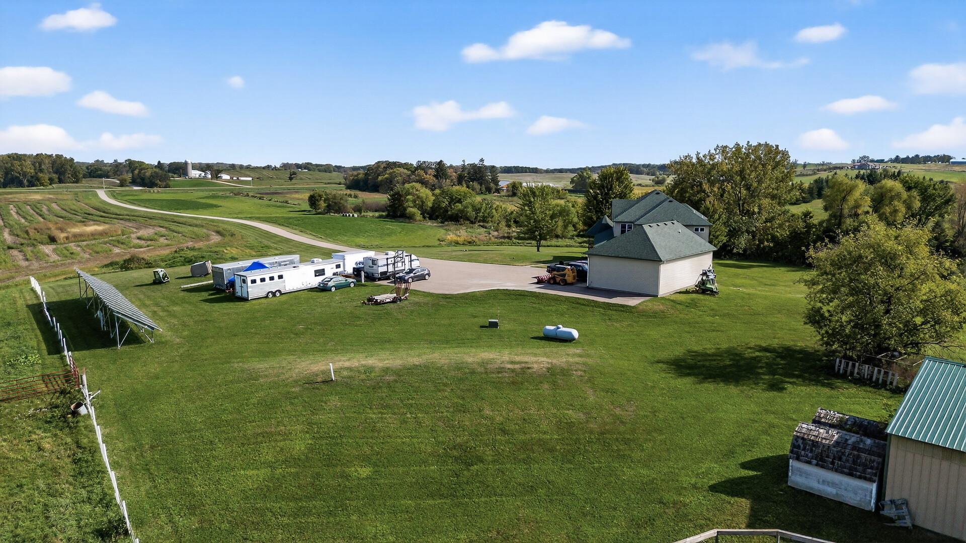 Amazing property located just 3 miles from town situated on 8.36 acres in an ideal setting. This custombuilt one level home has upgraded features throughout, spacious private primary suite, 2 walk in closetsand full bath. Additional 2 bedrooms and fully finished lower level with tons of storage, space for afuture wine cellar and pet bath. Home features updated windows, geothermal heating and screen porch justto name a few upgrades. Property includes a wood shed, steel utility building and barn. Barn is justunder 2000 sq.ft. Main level features wood shop area, tons of space for mechanics, office with bathroom.Upper level has kitchenette, 3/4 bath and spacious rooms for arts and crafts. A must see!