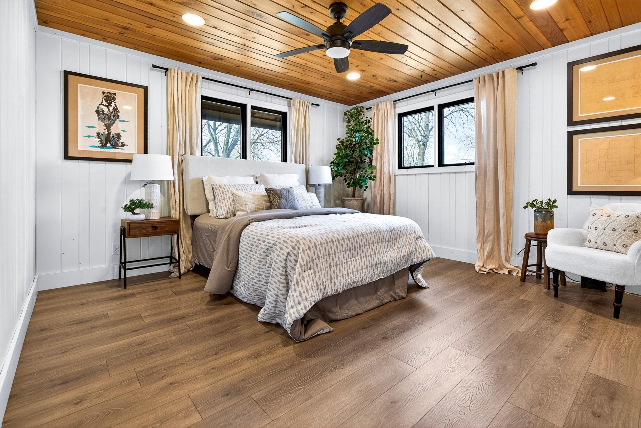 Stunning Spanish Mediterranean 5 bdrm w/o brick ranch featuring panoramic river views (140 frontage/1 acre) & smart functional floor plan. Completely renovated (Designs of the Interior) w/ all new Anderson windows, gorgeous new kitchen w/ Taj Mahal counters/huge walk-in pantry/expansive river views, updated baths, white oak real HW flooring from Ralphs HW Flooring, relaxing primary suite w/ private balcony, full interior painted, fantastic back hall, radiant heat in all new interior 3 stall garage, hvac updated 18. Exterior upgrades include all new cement flatwork, new aluminum upper deck, epoxy patio, refurbished rip-rap, new composite dock w/ boat lift, new soffits/downspouts, new landscaping/uplighting. Refurbished indoor pool area w/ sauna. Offers due 12/11 2pm/Reviewed that eve.