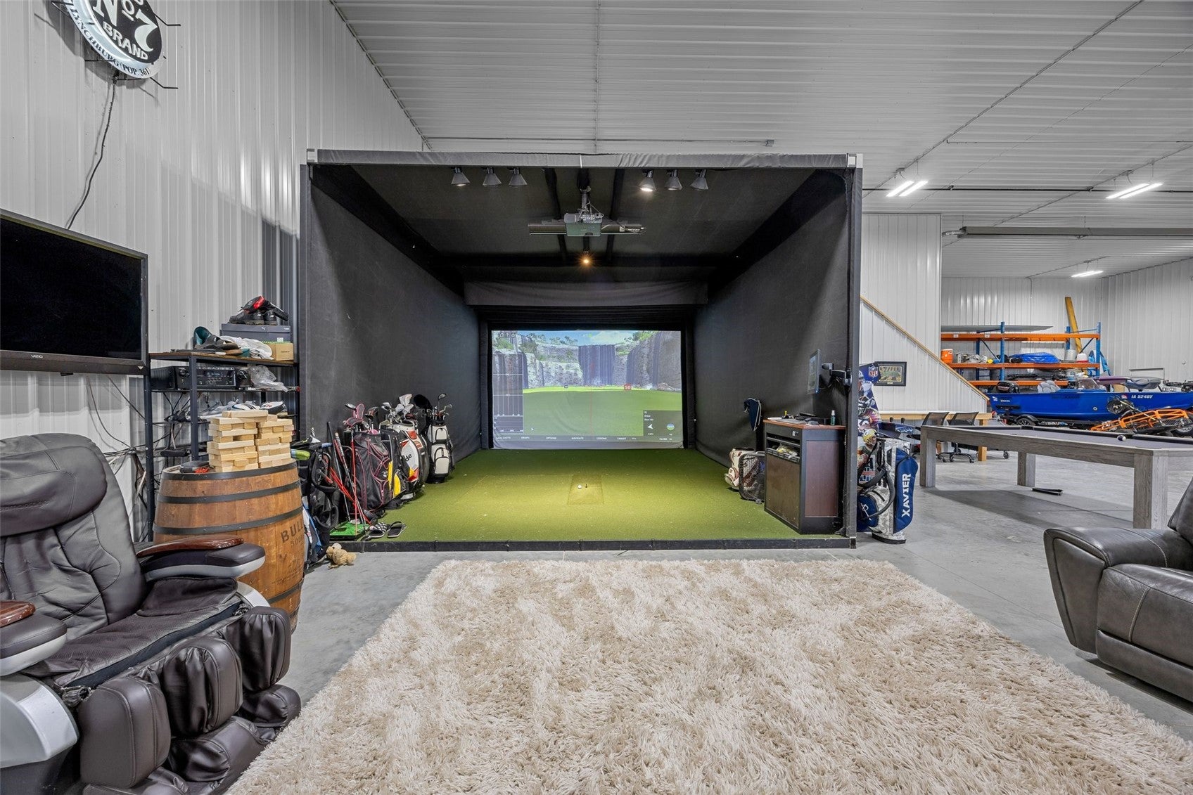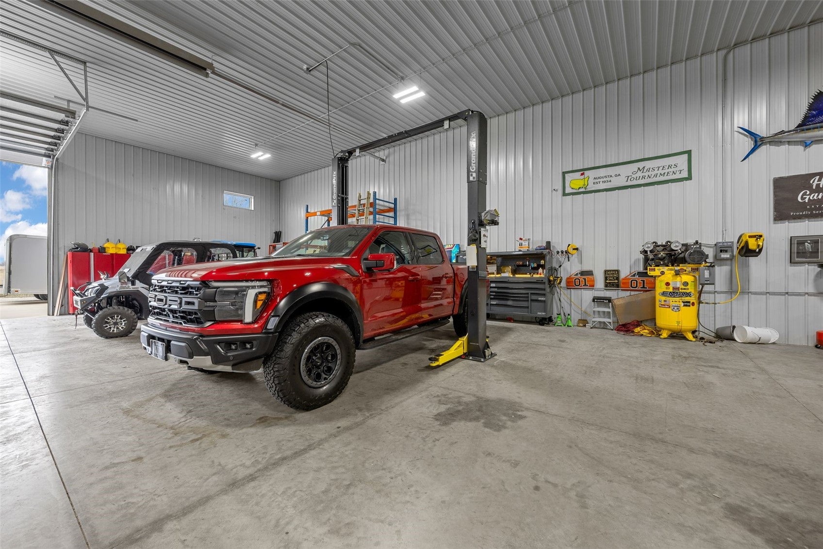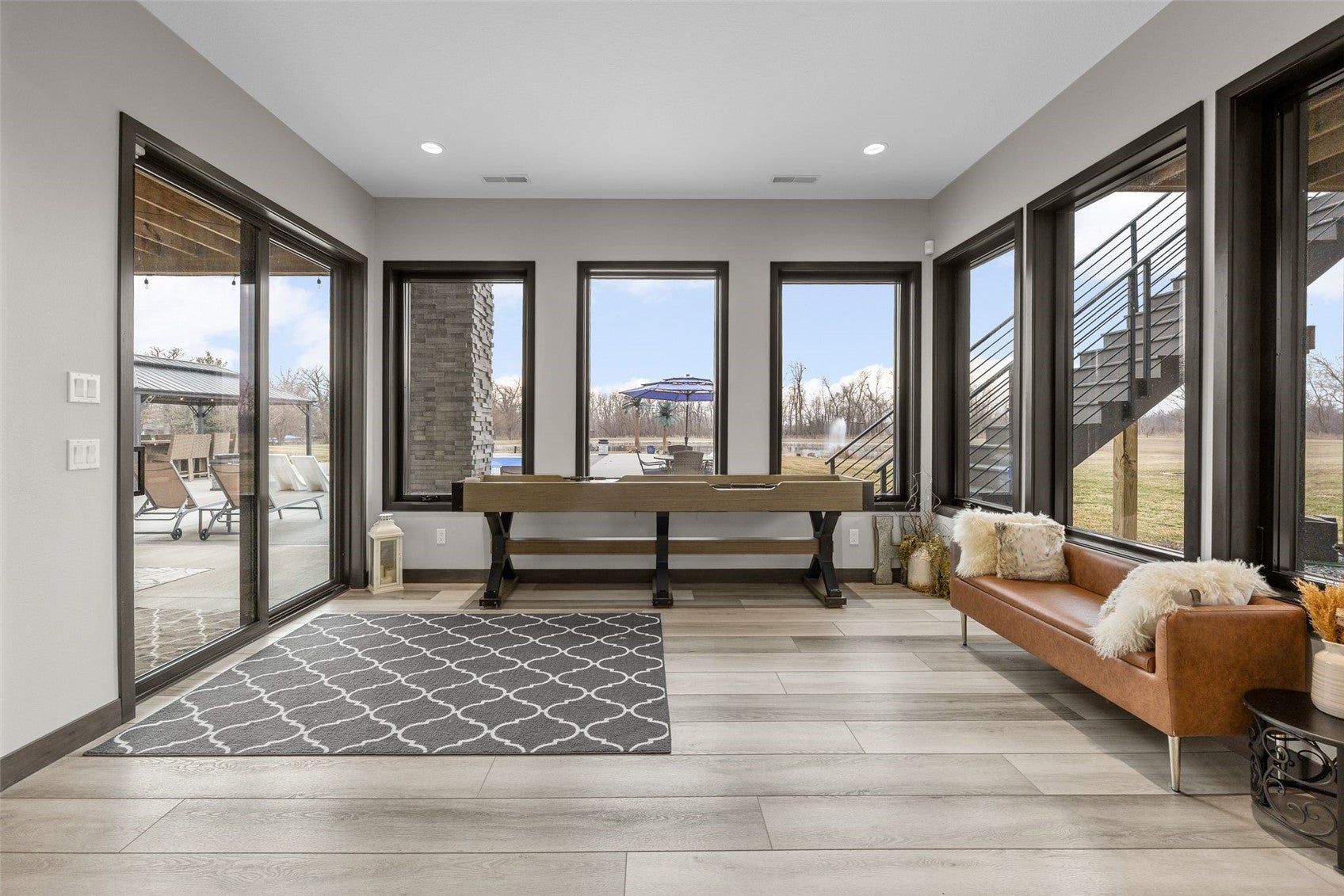 NOW THIS IS LIVING. Secluded. Scenic. Unforgettable. Welcome to 17 acres of pure privacy, where a wooded backdrop, a fully stocked pond, and jaw-dropping sunsets become your everyday view. This 4,587 finished square foot modern masterpiece was architecturally designed to bring the outdoors inevery line, every window, every finish intentionally crafted to showcase the beauty surrounding you. No shortcuts hereonly top-tier materials, elevated design, and undeniable pride of ownership throughout. Entertain like never before.The great room flows seamlessly onto a covered deck through massive floor-to-ceiling doors, creating a true indoor-outdoor experience. A remote-controlled phantom screen system transforms the space in seconds, while two separate staircases lead you down to your private backyard oasis. And what an oasis it is- a walkout lower level with a sleek wet bar, an in-ground pool built for summer, and beach-front access to your own stocked pond. No HOA. No restrictions. Just freedomminutes from city amenities. And then theres the shopA massive 72 x 120 commercial-grade building that takes this property to another level: Two 14X20 and one 14X24 overhead doors, Radiant heat & floor drains, second floor living space, and golf simulator setup. Whether its business, hobbies, or the ultimate hangoutthis space delivers. The 2.5-acre pond is the crown jewel25 feet deep with a polyvinyl liner, fully stocked, featuring a beach entry, rock surround, and a stunning LED-lit fountain that brings it to life at night. Private. Luxurious. One-of-a-kind. This isnt just a homeits a lifestyle.