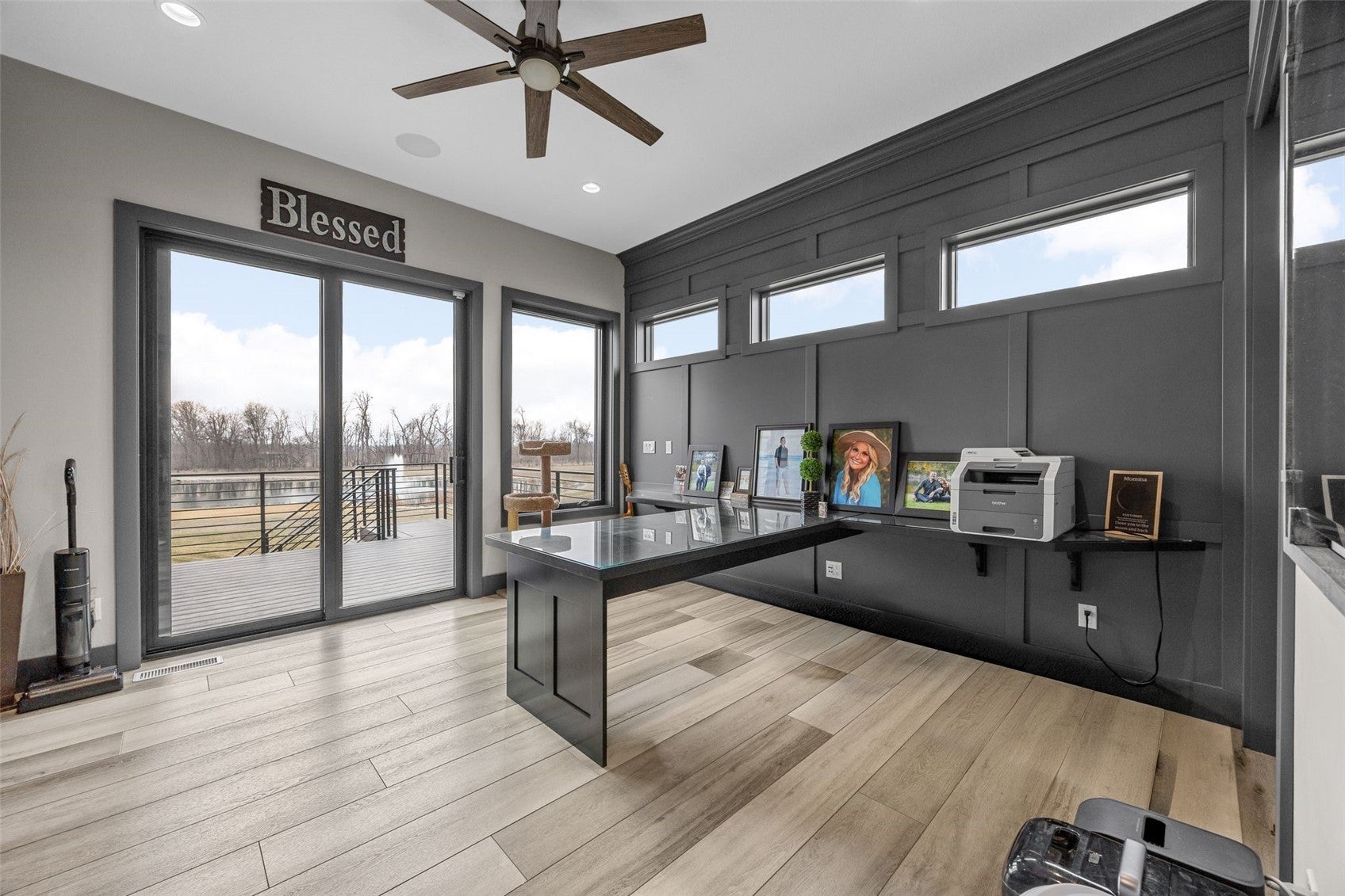 Experience refined living in this stunning contemporary modern, custom-built home where thoughtful design meets high-performance efficiency. Every detail has been carefully selected and impeccably maintained, creating a residence that is as functional as it is beautiful. Built for sustainability and comfort, the home features a horizontal geothermal system and extensive water management infrastructure, including full-property drainage tile that flows to a reservoir in the SE lawn with an overflow valve to maximize efficiency. All downspouts run through independent tile lines to a dedicated river outflow along the east bank. A Generac whole-property generator (installed in 2020) ensures uninterrupted power and peace of mind year-round. The exterior is equally impressive with premium insulated vinyl siding and a rubber-backed architectural 40-year asphalt shingle roof (2014). A 7-zone irrigation system, controlled conveniently from the garage, keeps the grounds pristine, while a built-in gas line on the patio makes outdoor entertaining effortless. Step inside to discover superior craftsmanship throughout. Every window is a top-of-the-line 3-pane Pella, with built-in shades, and bedroom windows include integrated blackout shades for ultimate comfort. All cabinetry throughout the home features soft-close functionality, and both the kitchen counters and fireplace surround are finished in elegant quartz. The chefs kitchen is fully updated with all appliances replaced since the original build in 2008, including a sleek induction cooktop. A reverse osmosis drinking water system with a chiller storage tank ensures perfectly chilled, purified water on demand. Dual water heaters including one newly installed in December 2025 provide near-endless hot water. Luxury extends to everyday living with heated ceramic tile floors in the laundry room and bathrooms as well as heated carpeted flooring in the basement. The home is exceptionally well-sealed and includes a post-construction air exchanger system for optimal air quality, along with both active and passive radon mitigation systems for added safety. The detached garage is a standout feature, the left walk-in bay is humidity and temperature-controlled, making it ideal for a hobby room, workshop, or specialty storage. The attached garage boasts floor heat, and large drains built into the floor in each bay. Modern connectivity is seamless with direct fiber optic lines to the home for both Hawkeye and Mediacom. This is a rare opportunity to own a meticulously engineered, energy-efficient contemporary home that blends modern luxury, advanced mechanical systems, and exceptional build quality at a fraction of the new construction costs. Every feature designed for comfort, resilience, and effortless living.