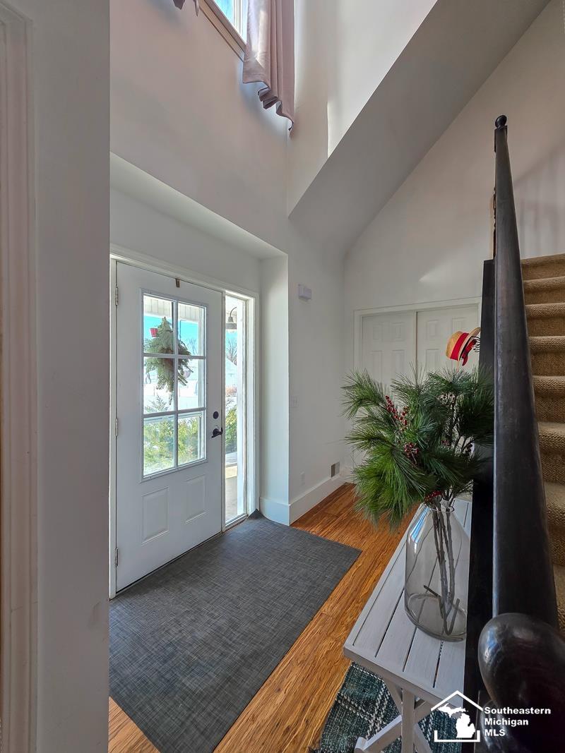 OPEN HOUSE this Sunday 3/29 from 1-3PM! A beautifully secluded 4 bedroom, 3.5 bath estate-style property offering abundant wildlife, including deer, blue herons, wood ducks, turtles, turkeys, and a wide variety of birds—creating an inviting setting for quiet mornings, scenic surroundings, and the enjoyment of changing seasons. The land is bordered by a 60-acre forest, farm fields, and additional wooded acreage, creating a peaceful, private environment perfect for families seeking simple living, homesteading, gardening, fishing, scenic walks, and year-round outdoor activities—while still offering the quiet and space ideal for remote work or a private home retreat. A first-floor primary suite designed for true first-level living, with a fully remodeled bath that includes a private, second laundry within the primary suite, a large walk-in closet, and scenic views. An additional first-floor bedroom can serve as a guest room, office, or flexible space to support changing needs over time. The updated farmhouse kitchen includes shiplap accents, quartz countertops, and open shelving. Hardwood flooring runs throughout the main level and second floor. Upstairs, two spacious bedroom suites (each with its own full bath) and a large loft provide flexible living space for family, guests, or additional work-from-home options while maintaining privacy between living areas. This 6.5 acre private estate includes two picturesque ponds—one fully stocked and suitable for kayaking—along with mature pine and willow trees. A thriving market-garden homestead has been cultivated with six years of organic practices. Additional features include a solar-powered greenhouse with rainwater drip irrigation (being installed Spring/Summer 2026), regenerative soil systems supported by free-range livestock, a large orchard and garden, and an underground well-water system supplying the garden and livestock areas for efficient, low-maintenance care. With low Monroe County taxes and convenient access to Flat Rock shopping, dining, and everyday services, this property blends modern comfort with true country living—ideal for families, remote professionals, retirees, nature lovers, and anyone seeking a peaceful lifestyle with the flexibility to enjoy main-floor living now and into the future. Added some summer photos to see how beautiful it is! Dont miss this opportunity!