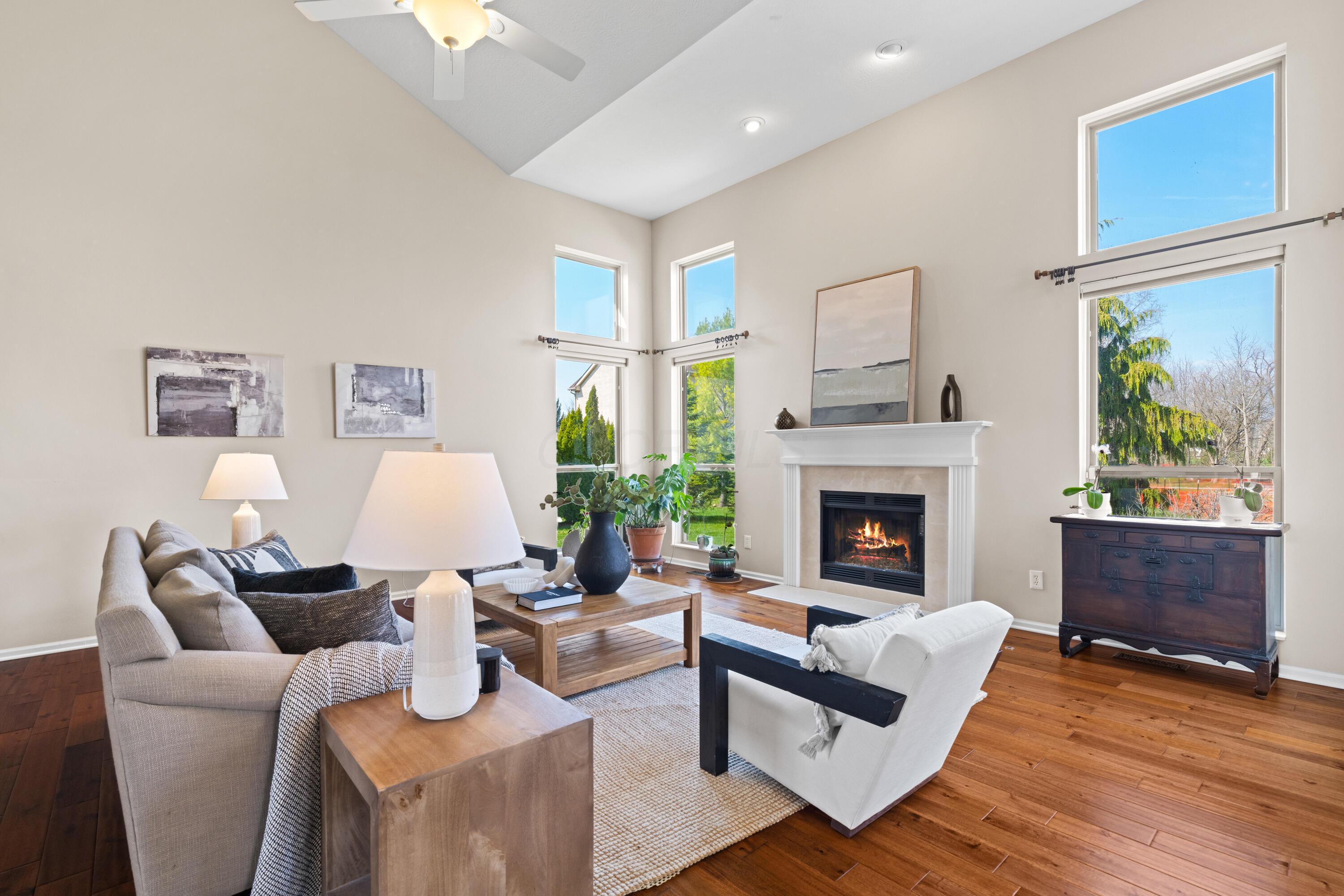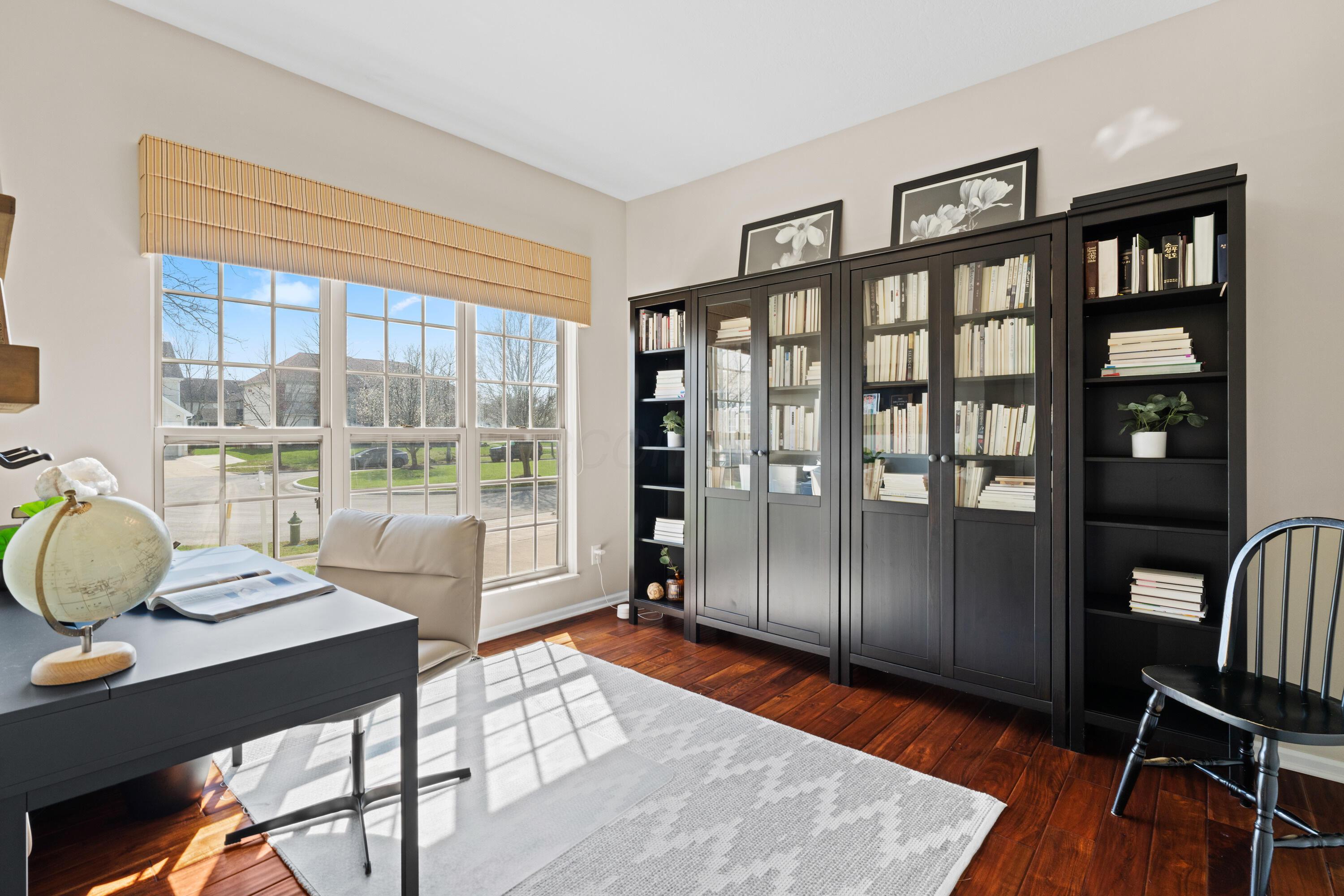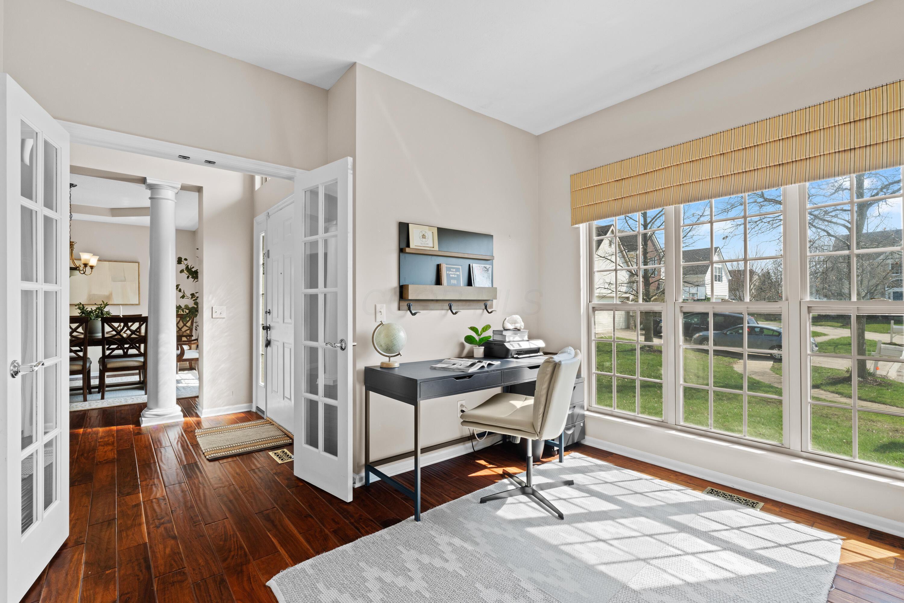Welcome to this spacious 5-level split in Dublins desirable Shannon Glen subdivision, set on a scenic 0.27-acre streamside lot. Filled with natural light, the home features a private office and elegant dining room with coffered ceiling off the entry. The vaulted main living room offers a cozy gas fireplace, while the renovated kitchen includes a bright eat-in area. A lower level provides a large second living space or potential 5th bedroom with full bath and laundry room. The upper levels include a luxurious primary suite with expansive en suite and flex room, plus three additional bedrooms. Enjoy a peaceful, park-like setting just minutes from all that Dublin has to offer.